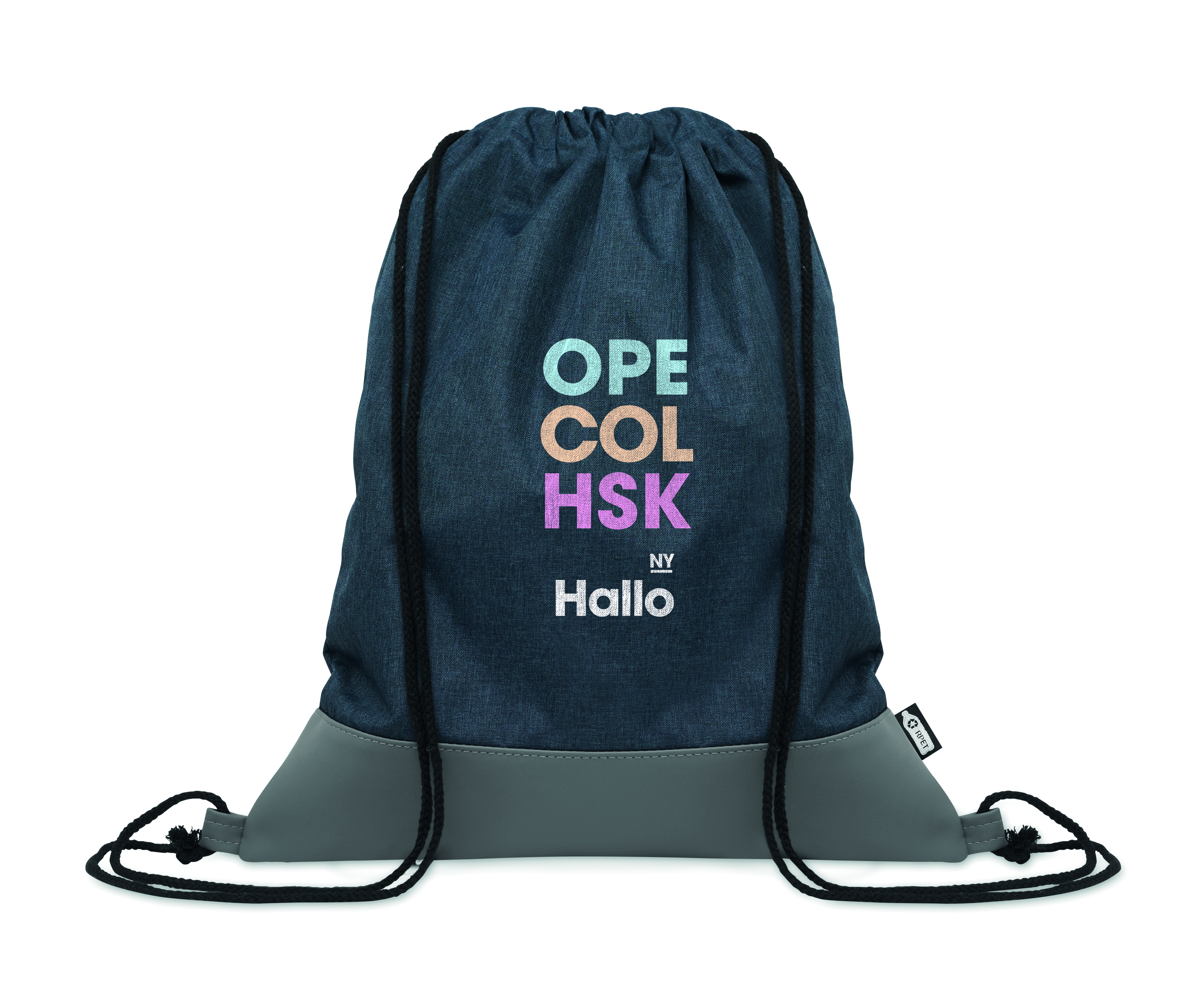 Worek ze sznurkiem workoplecak w 2 odcieniach z poliestru 300D RPET z miękkimi detalami z PU i sznurkiem z polibawełny.