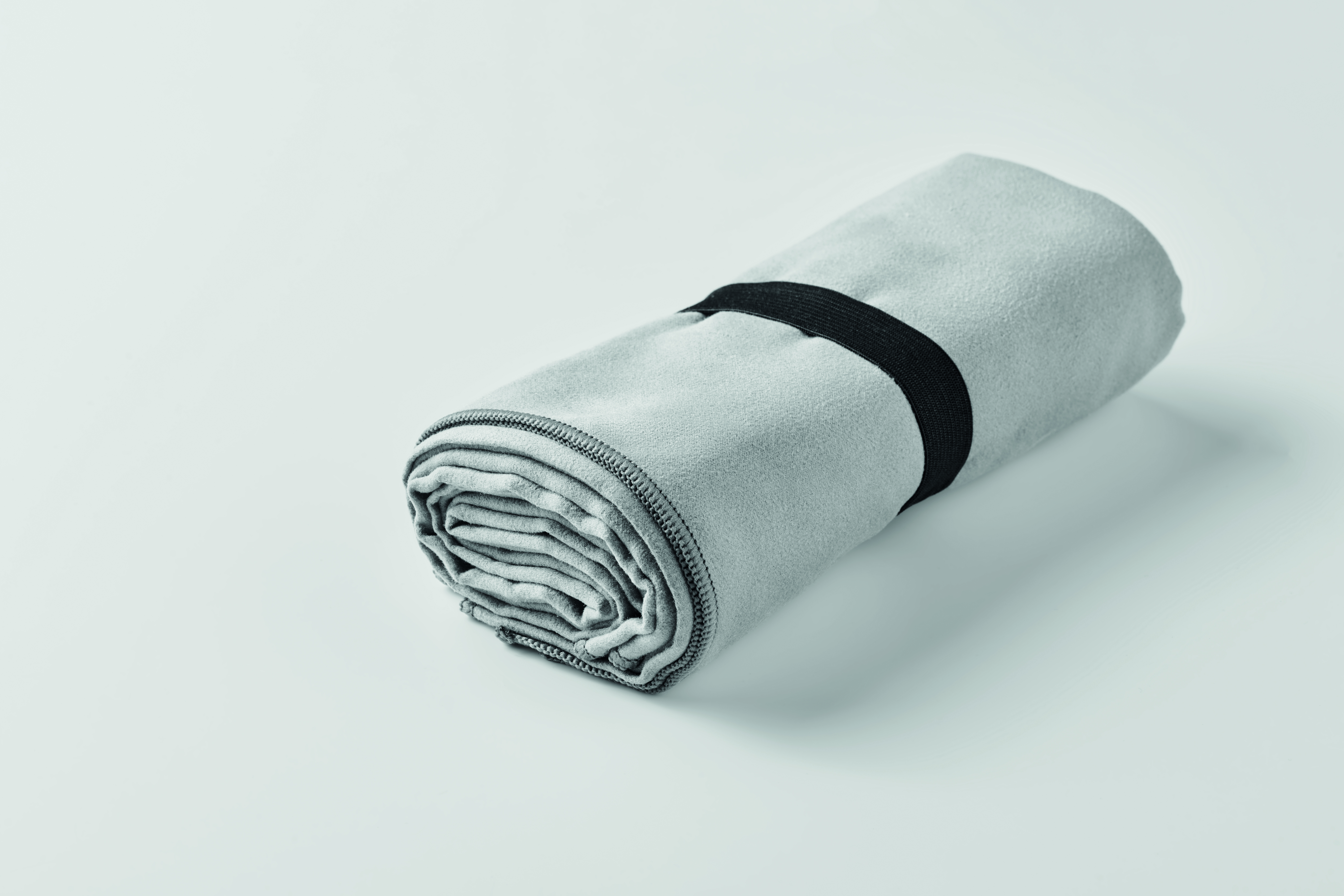 Dwustronny aksamitny ręcznik sportowy/plażowy z mikrofibry 200 gr/m² z zapięciem na zatrzask.