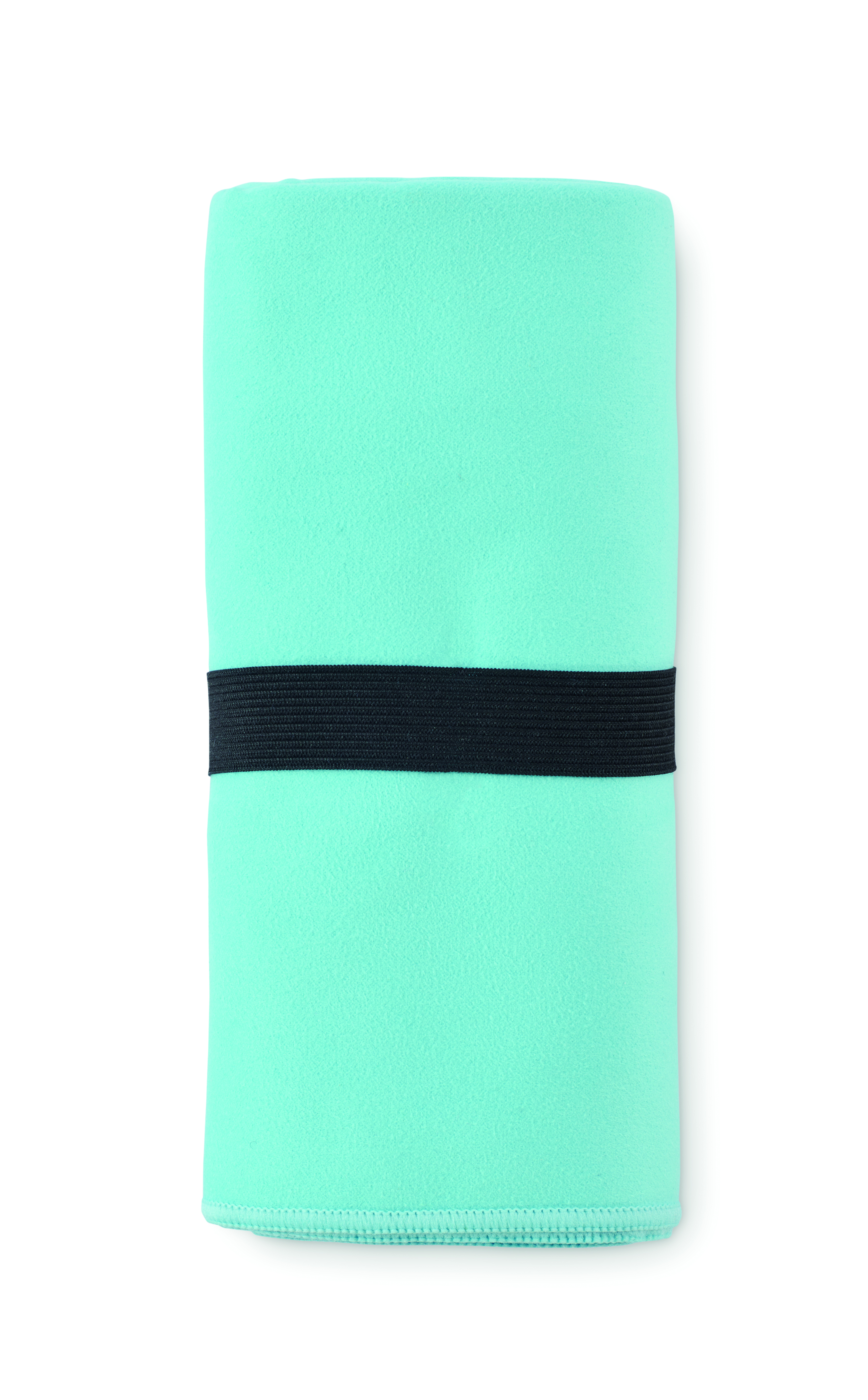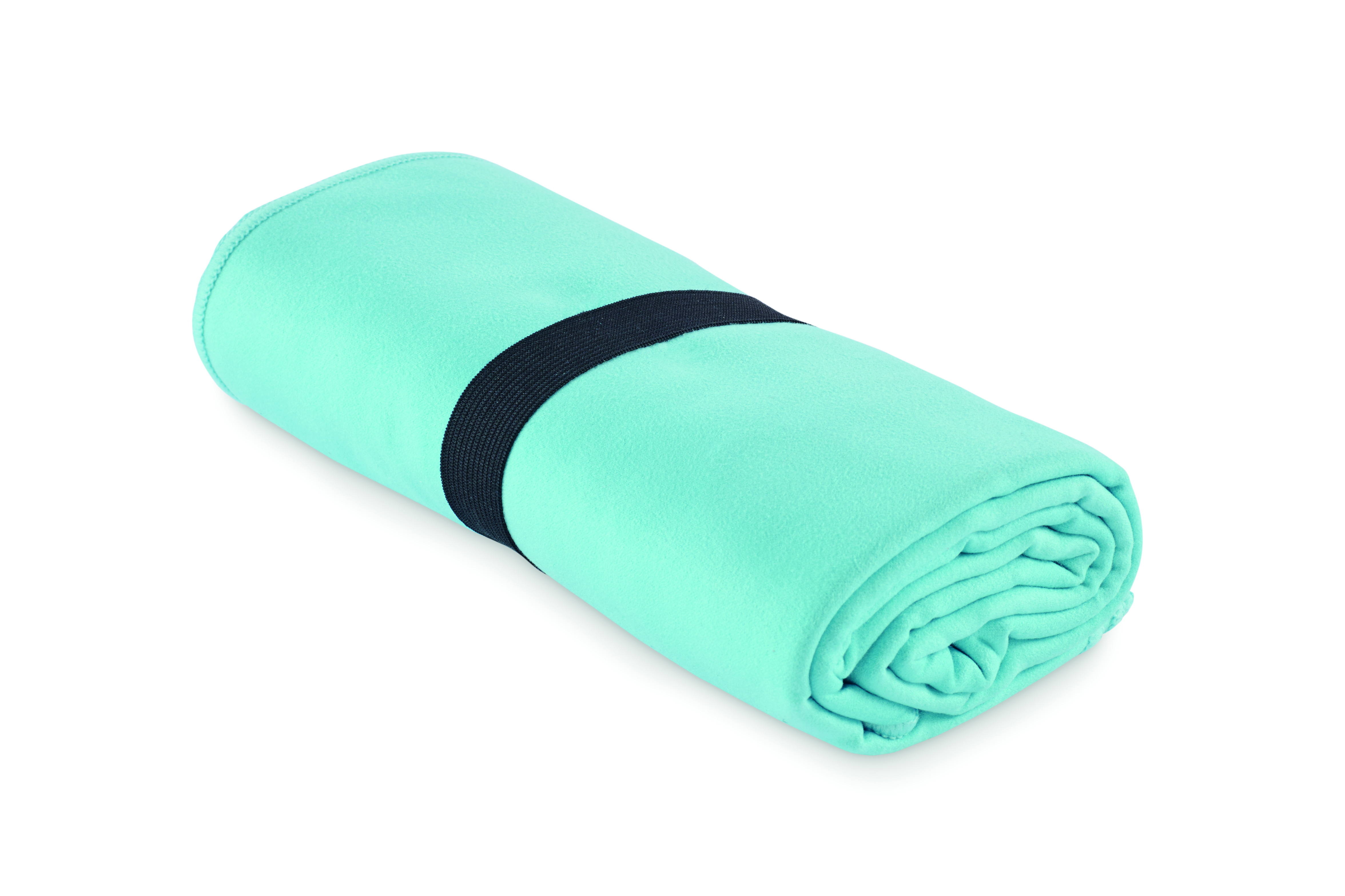 Dwustronny aksamitny ręcznik sportowy/plażowy z mikrofibry 200 gr/m² z zapięciem na zatrzask.