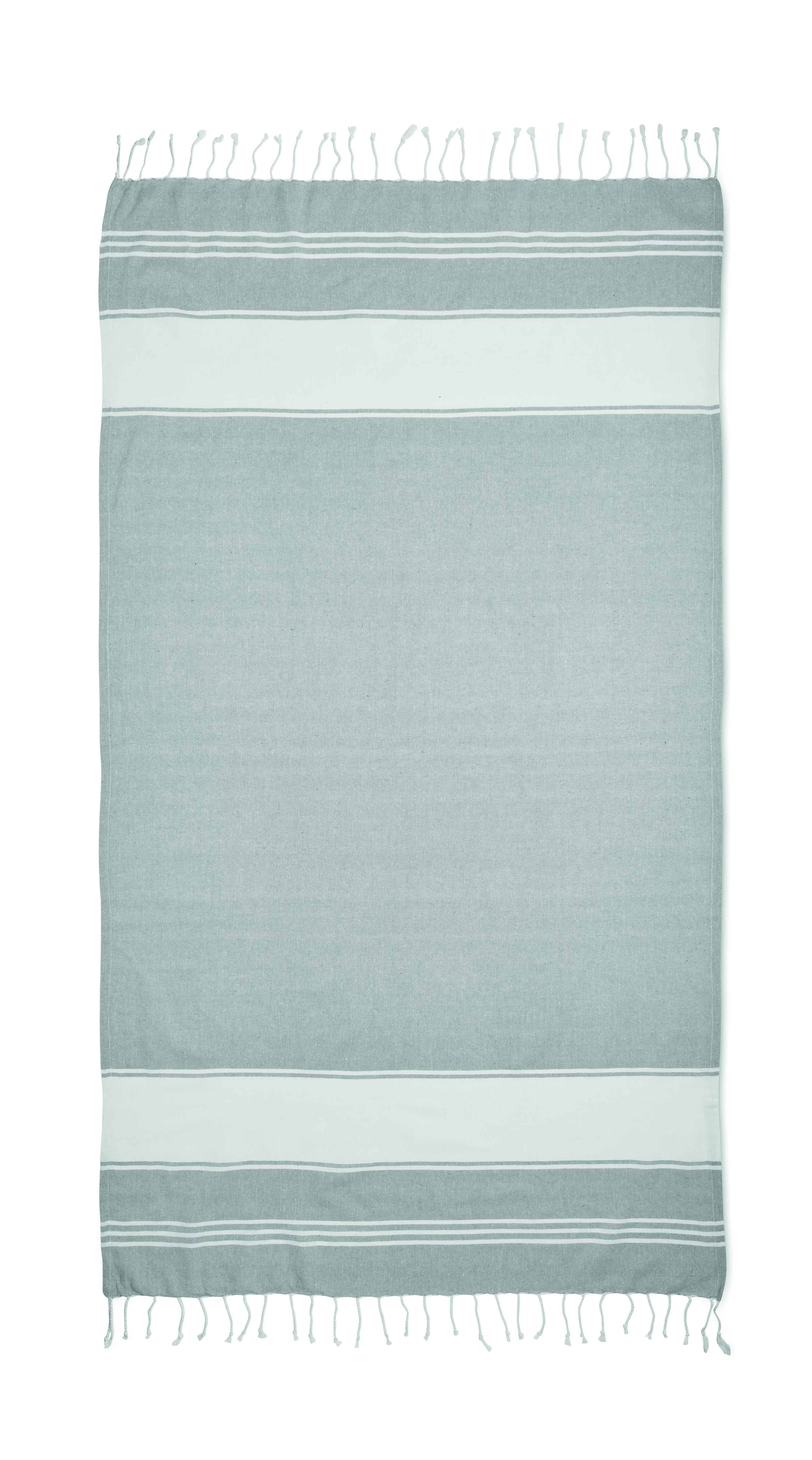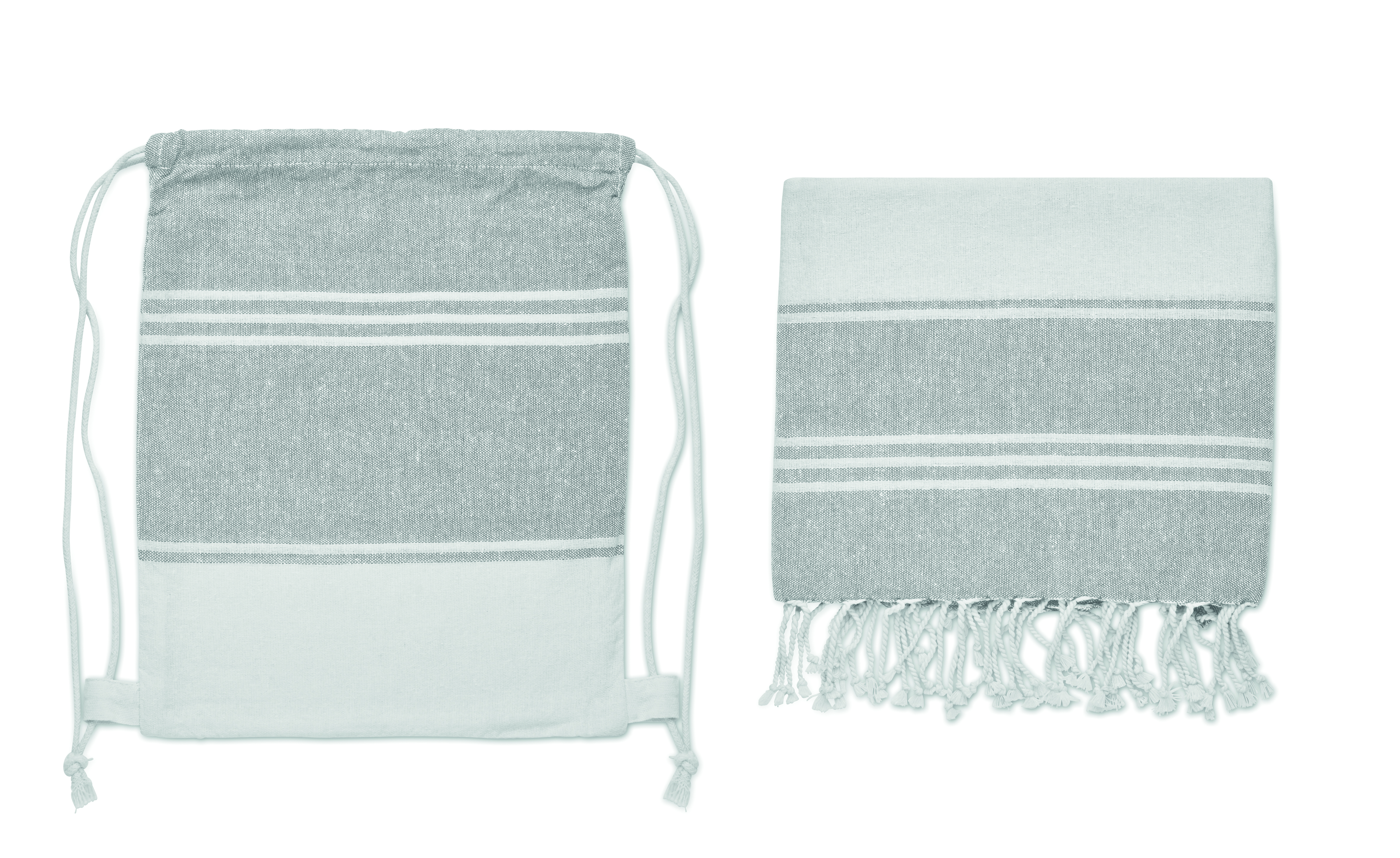 Zestaw z ręcznikiem plażowym hammam z workiem ze sznurkiem. 70% bawełna i 30% poliester 180 gr/m². 90x160 cm