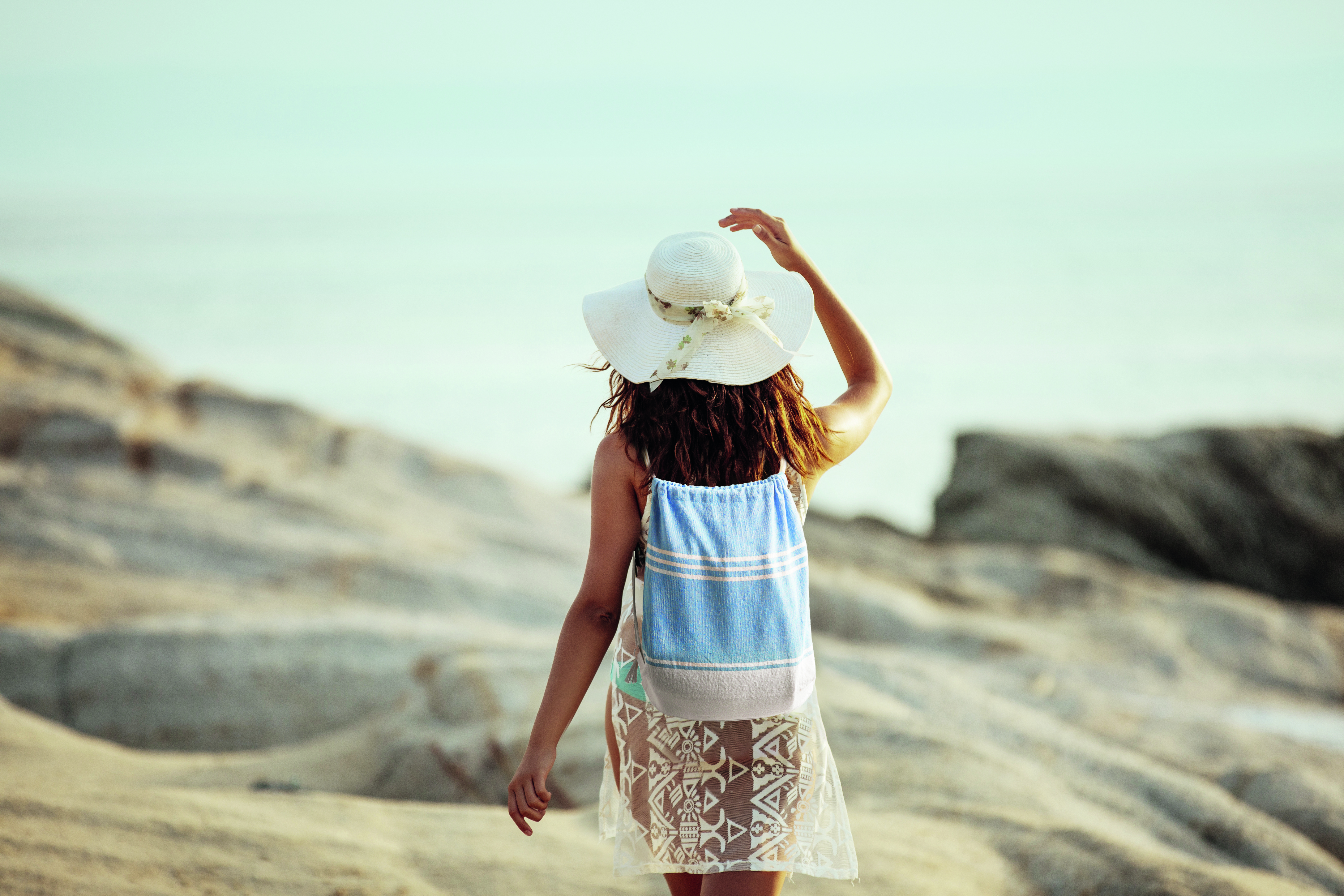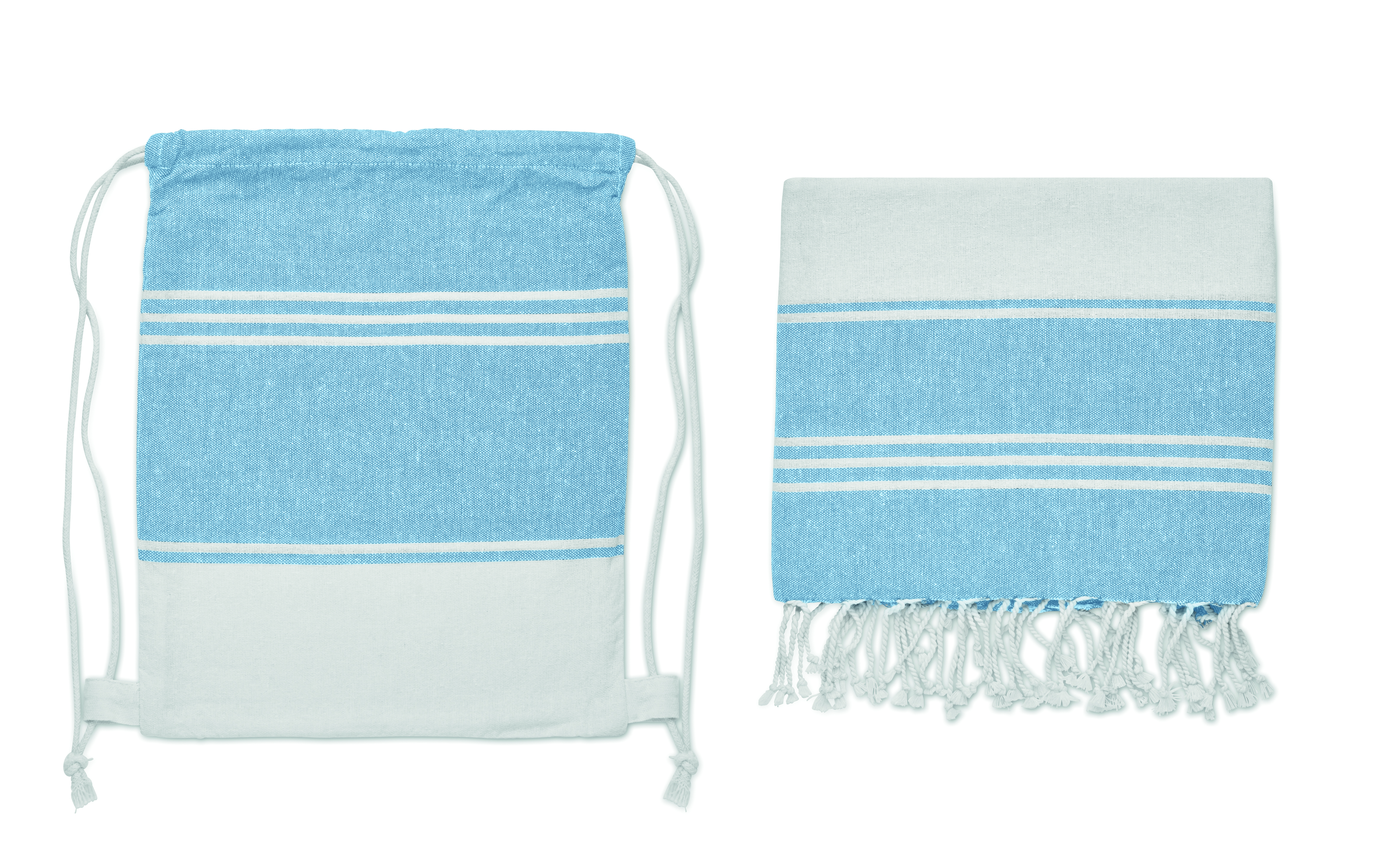 Zestaw z ręcznikiem plażowym hammam z workiem ze sznurkiem. 70% bawełna i 30% poliester 180 gr/m². 90x160 cm