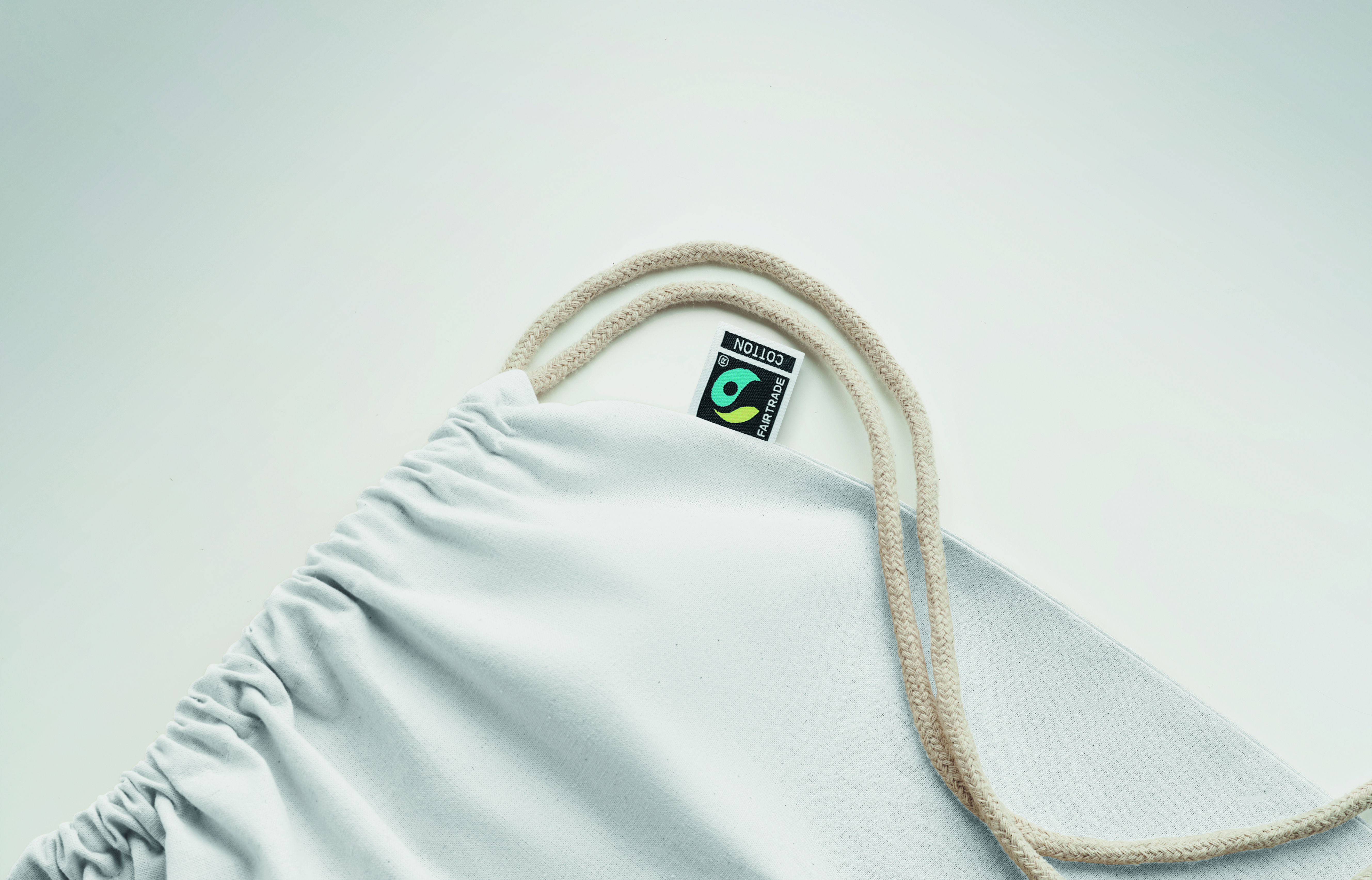 Worek ze sznurkiem wykonany z bawełny Fairtrade. 180 gr/m².