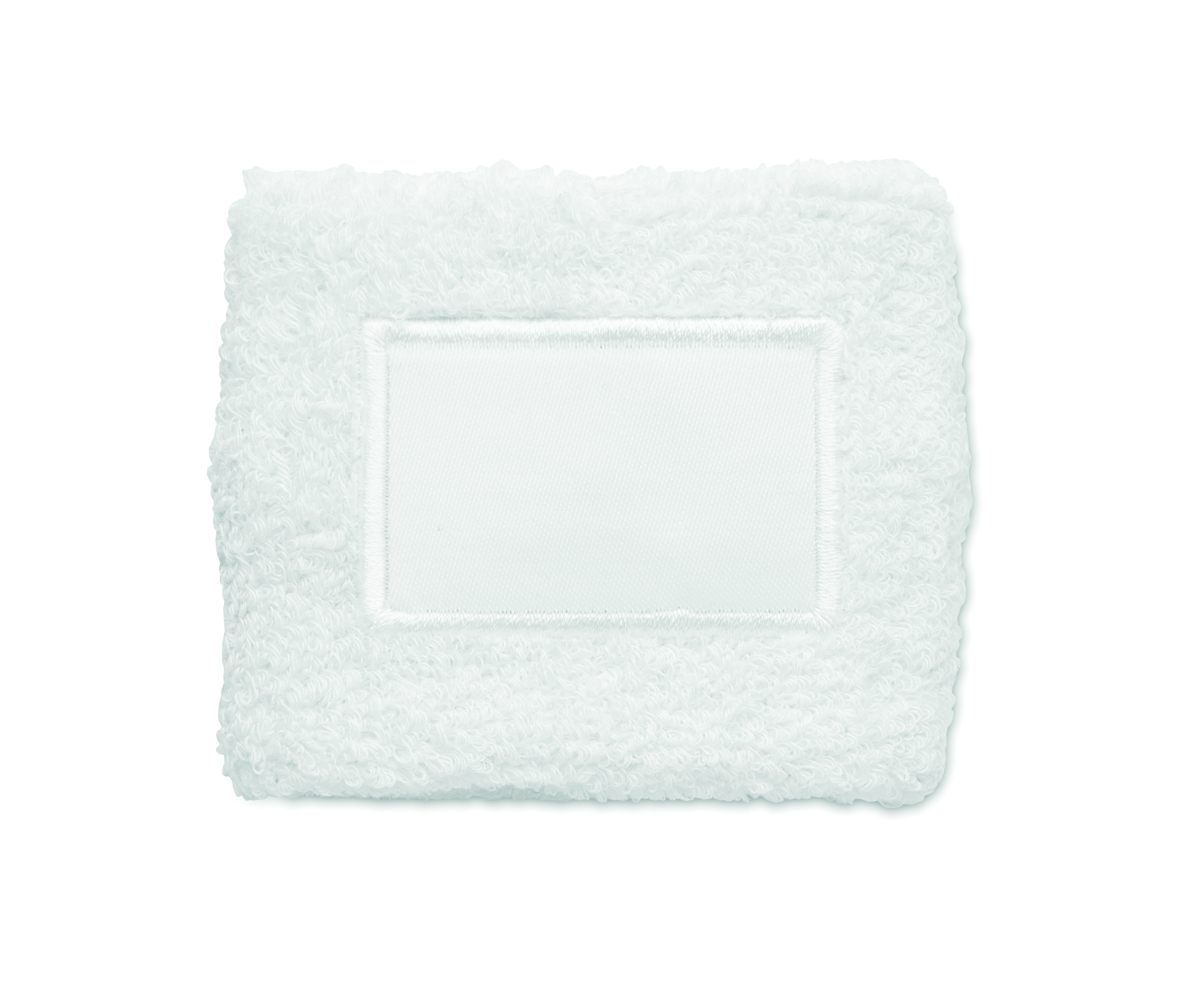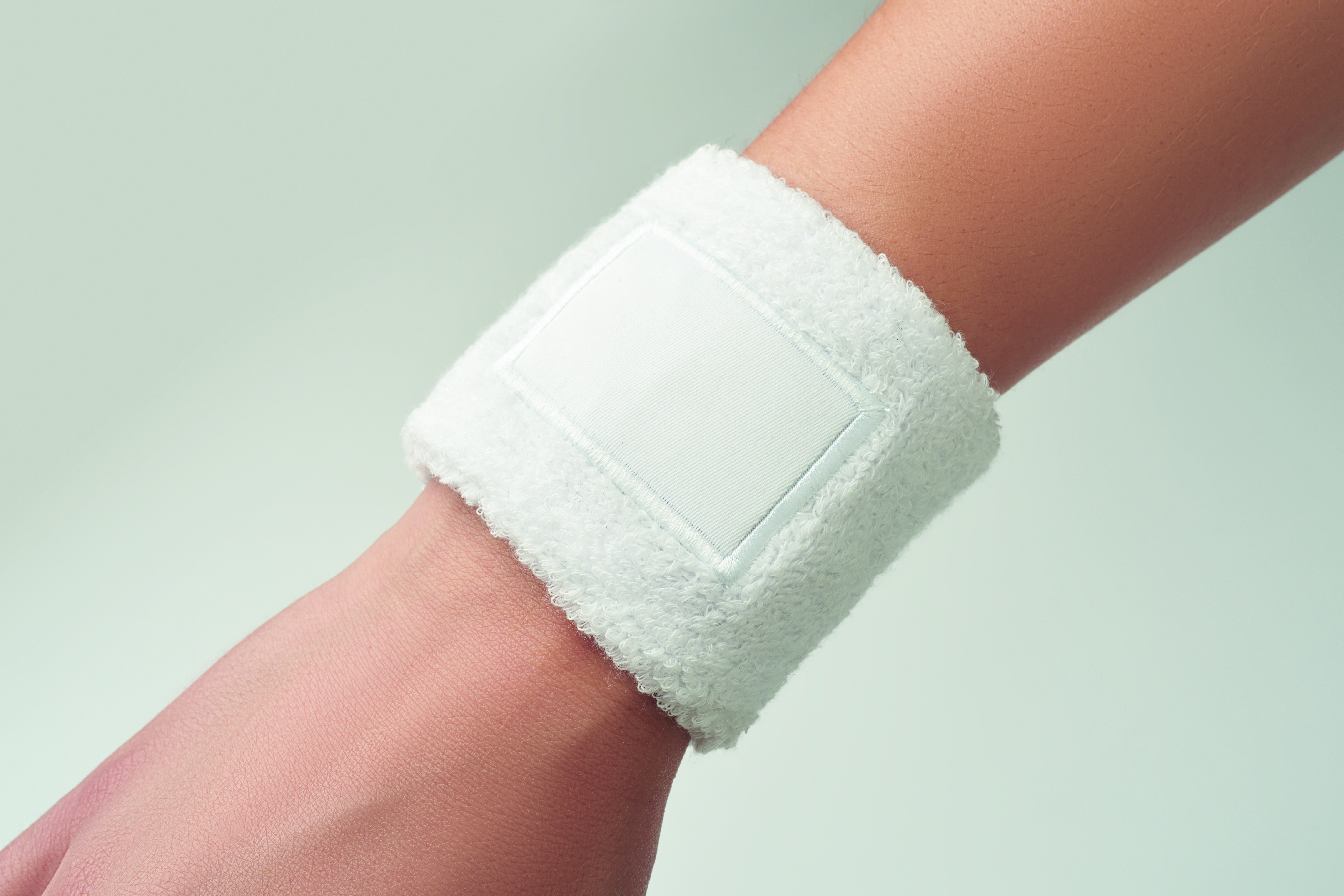 Opaska na nadgarstek z polibawełny (79%cotton/13%elastic/8% poliester) z bawełnianą naszywką w miejscu nadruku.