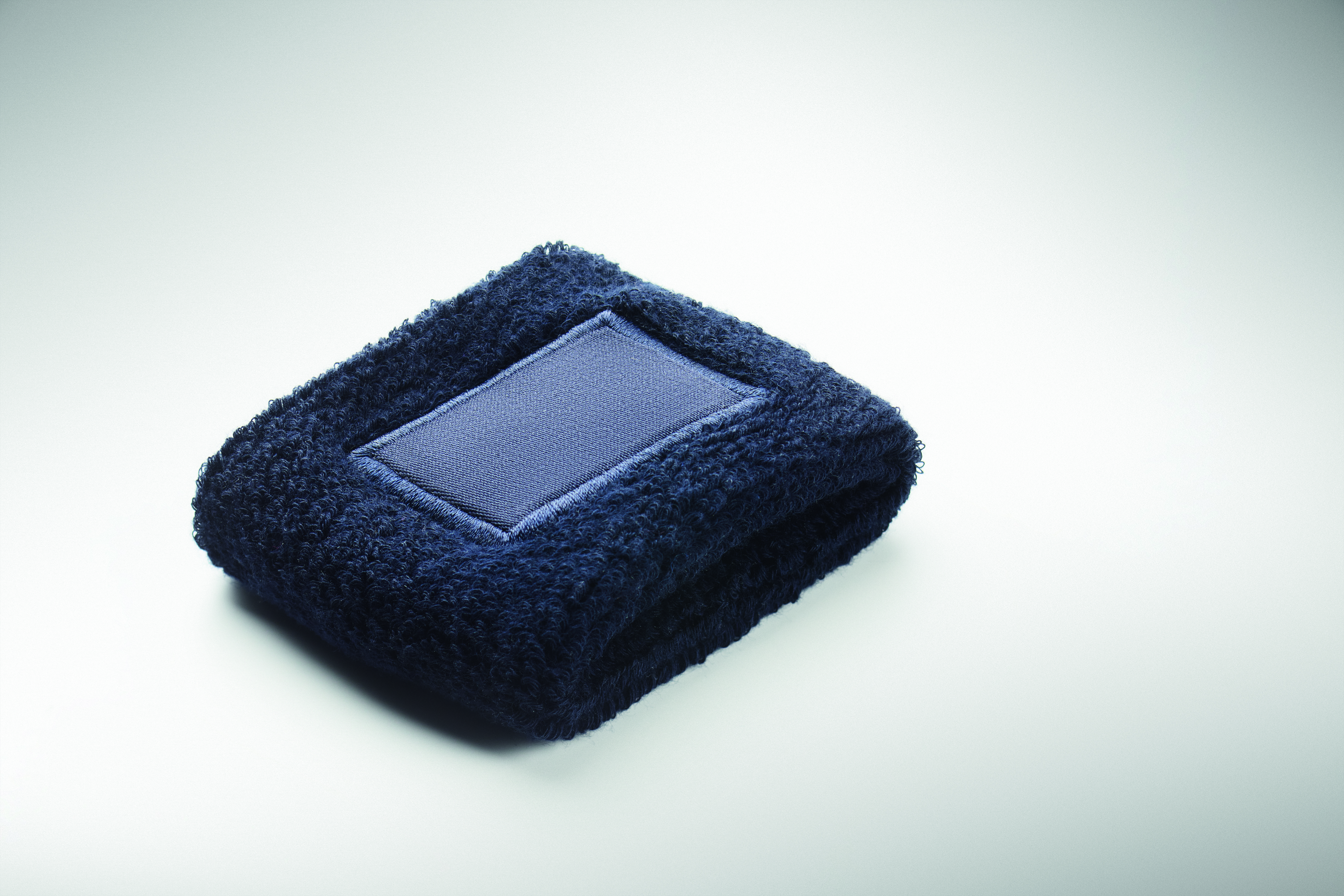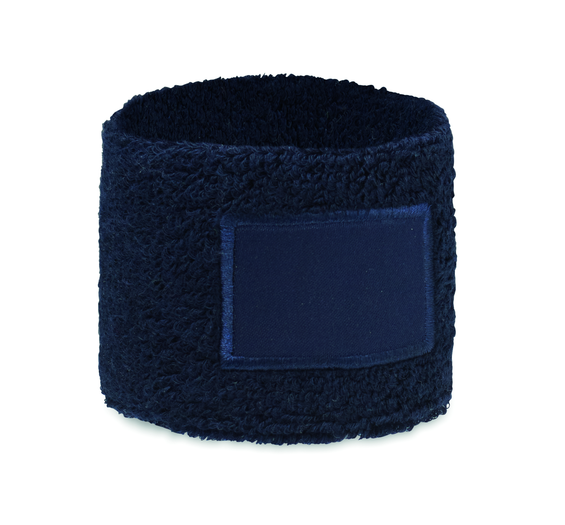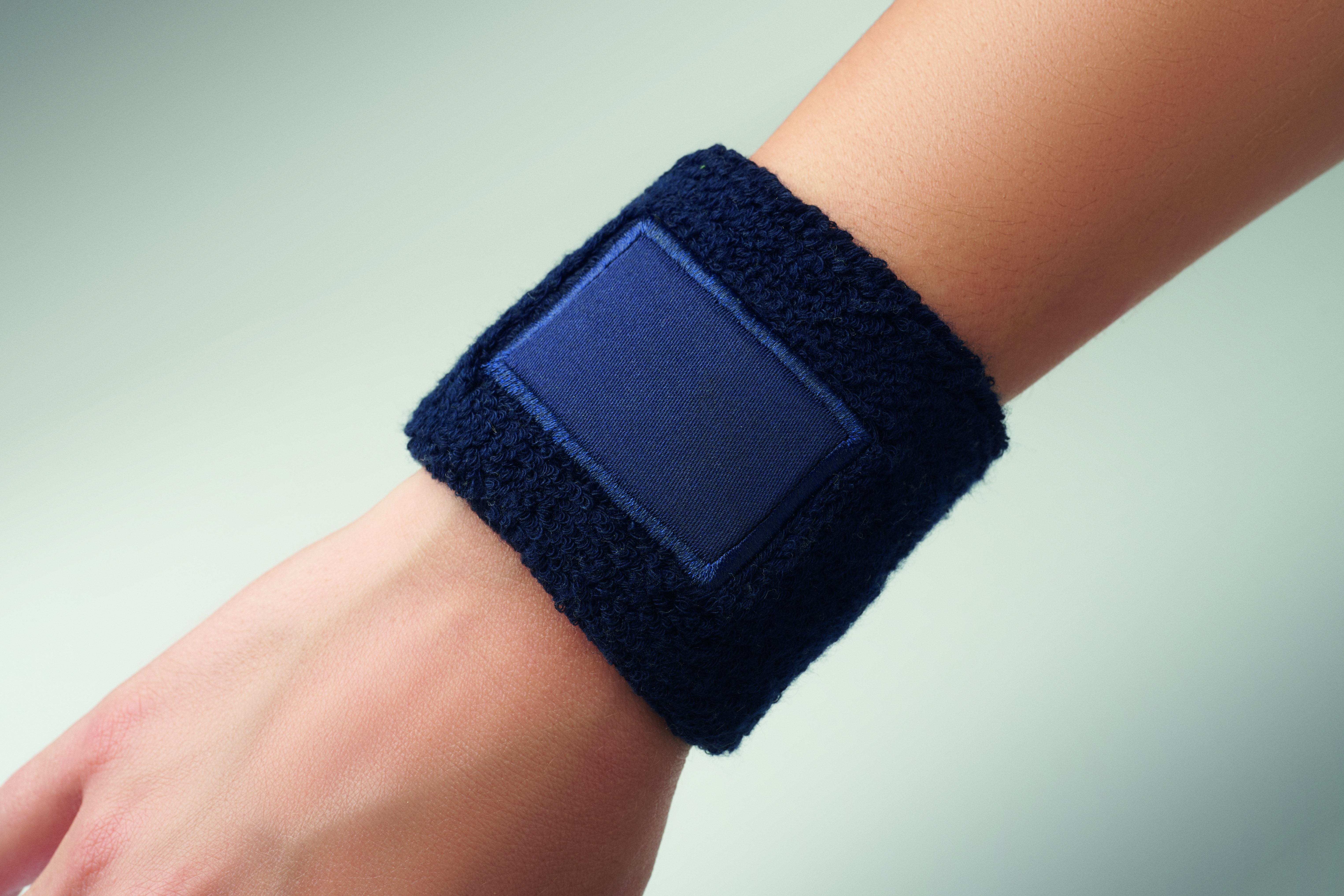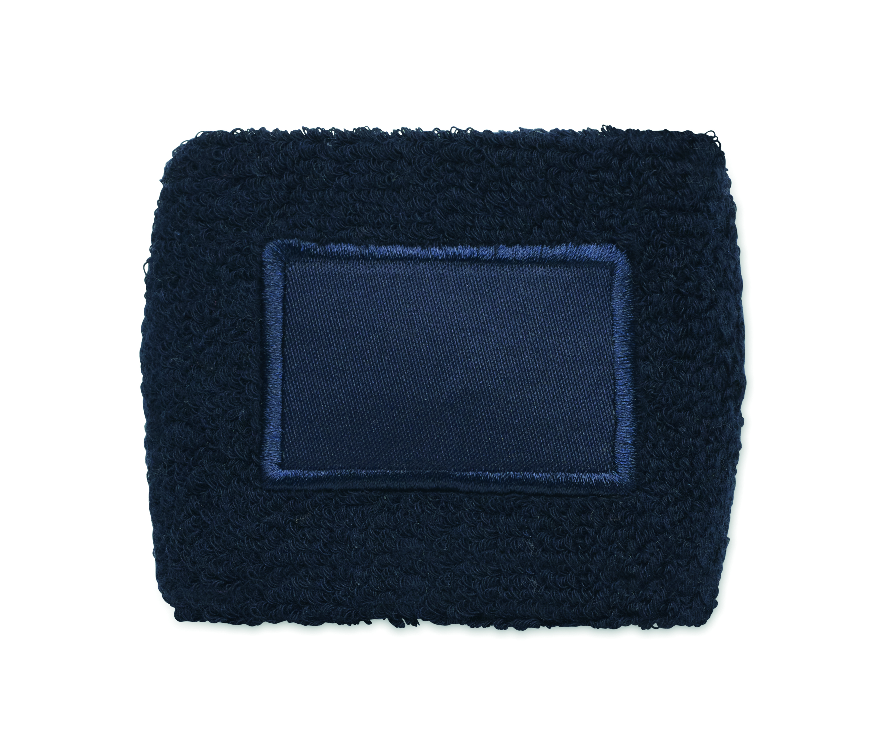 Opaska na nadgarstek z polibawełny (79%cotton/13%elastic/8% poliester) z bawełnianą naszywką w miejscu nadruku.