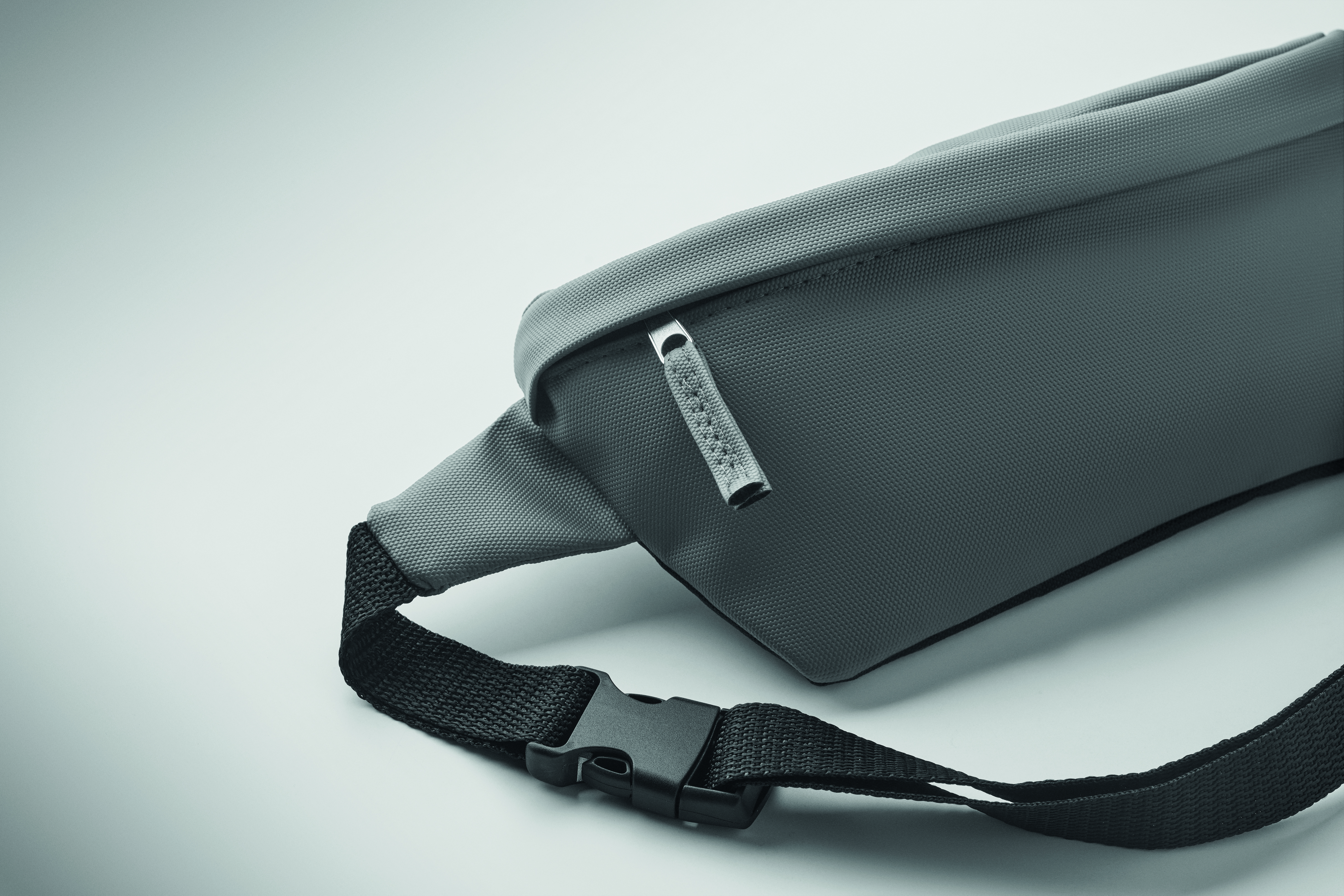 Saszetka z powłoką PU z poliestru 600D RPET, podszewką z poliestru 210D RPET i przednią kieszenią zapinaną na zamek.