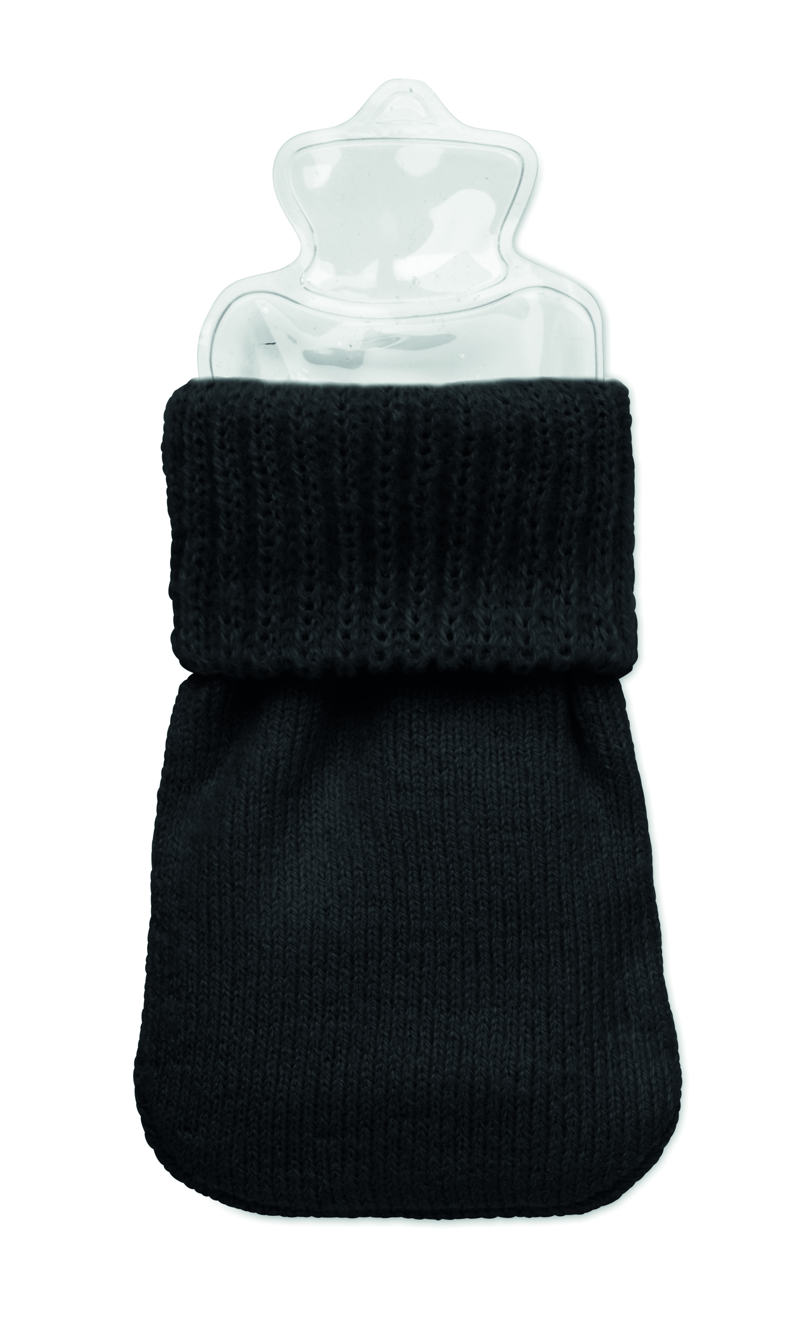 Ogrzewacz do rąk z dzianiny poliestrowej. Zawiera podkładkę termiczną z PVC aktywowaną przez naciśnięcie metalowej płytki wewnątrz. Wielokrotnego użytku poprzez umieszczenie podkładki w gorącej wodzie.