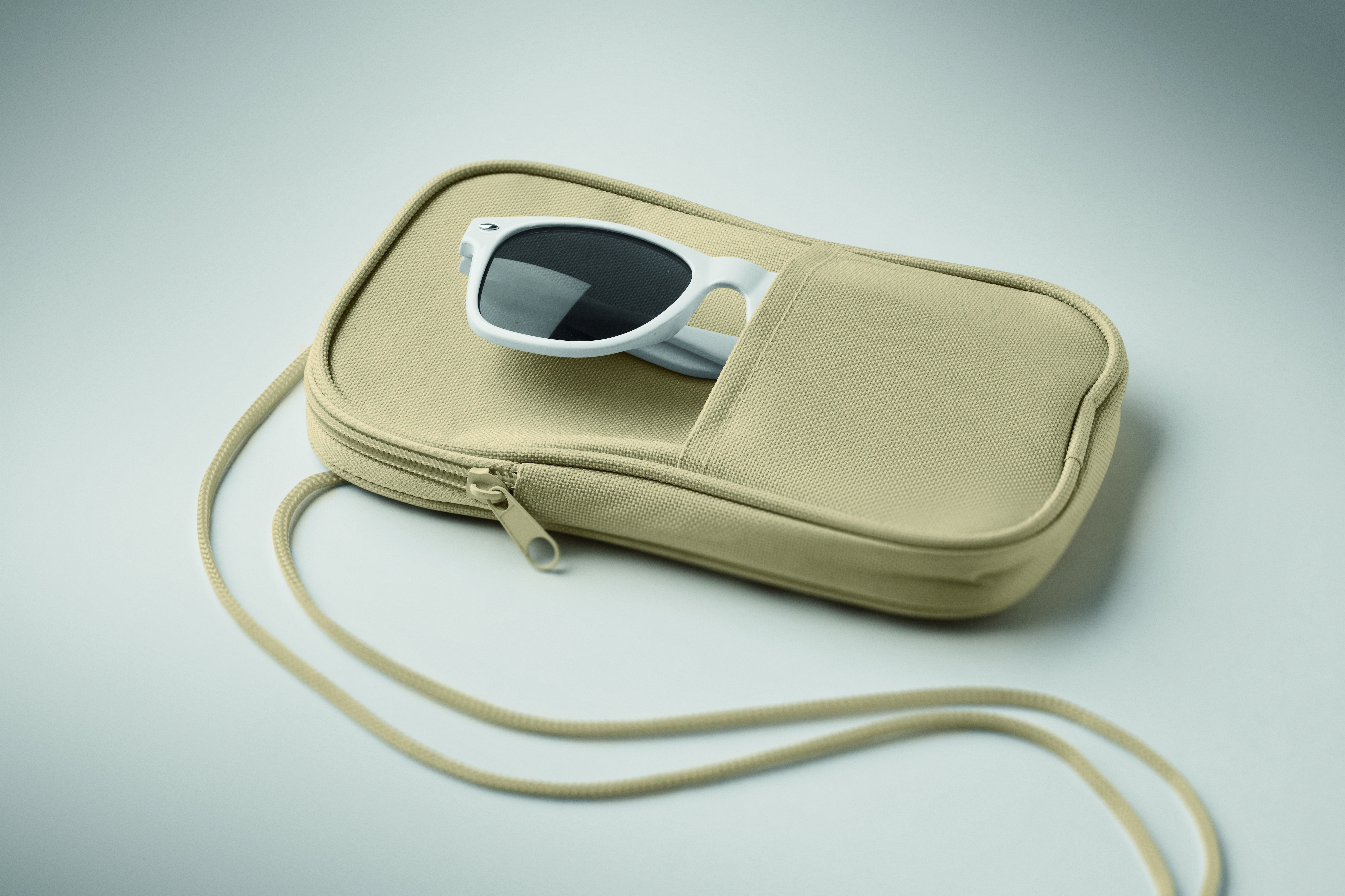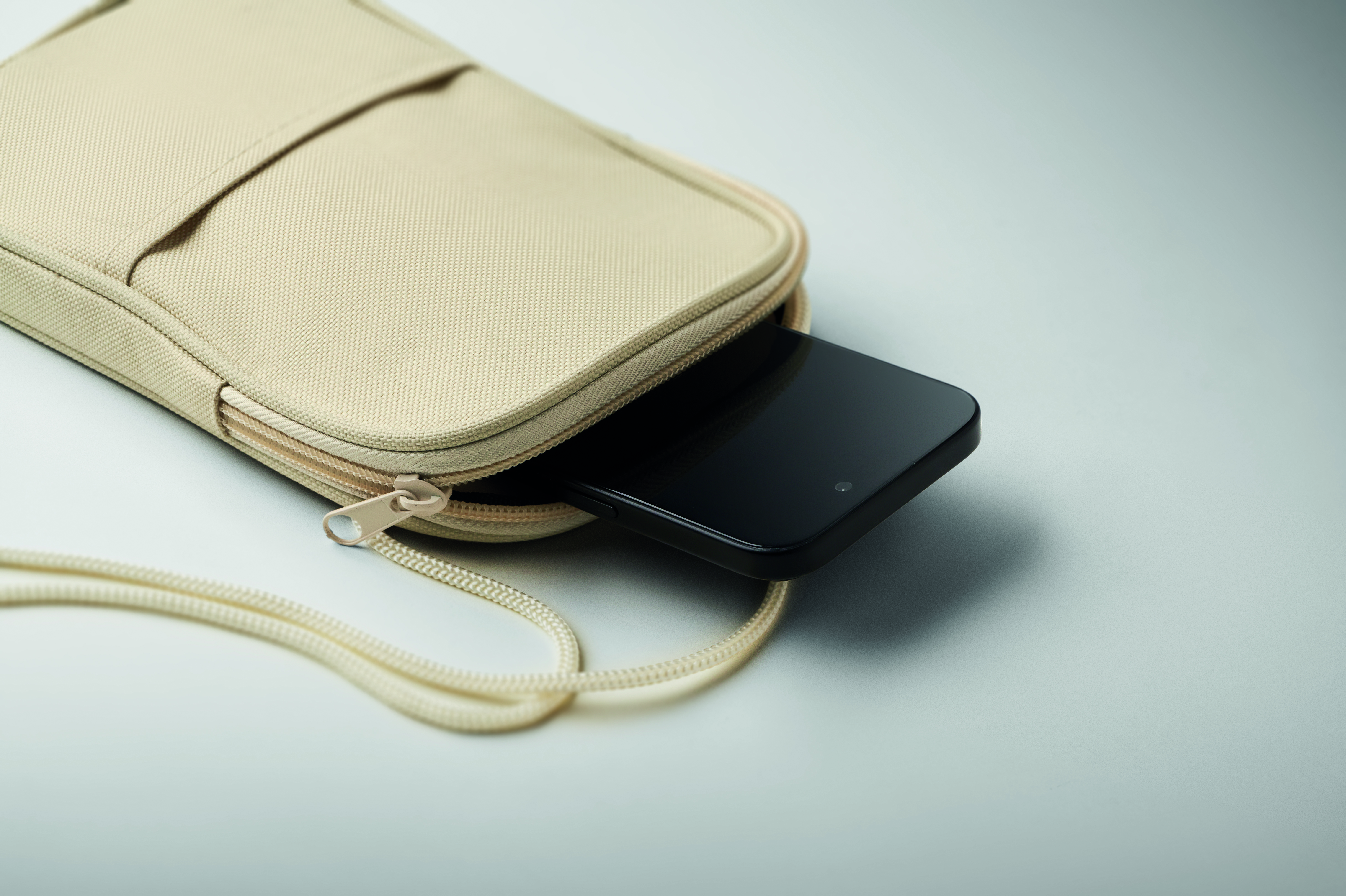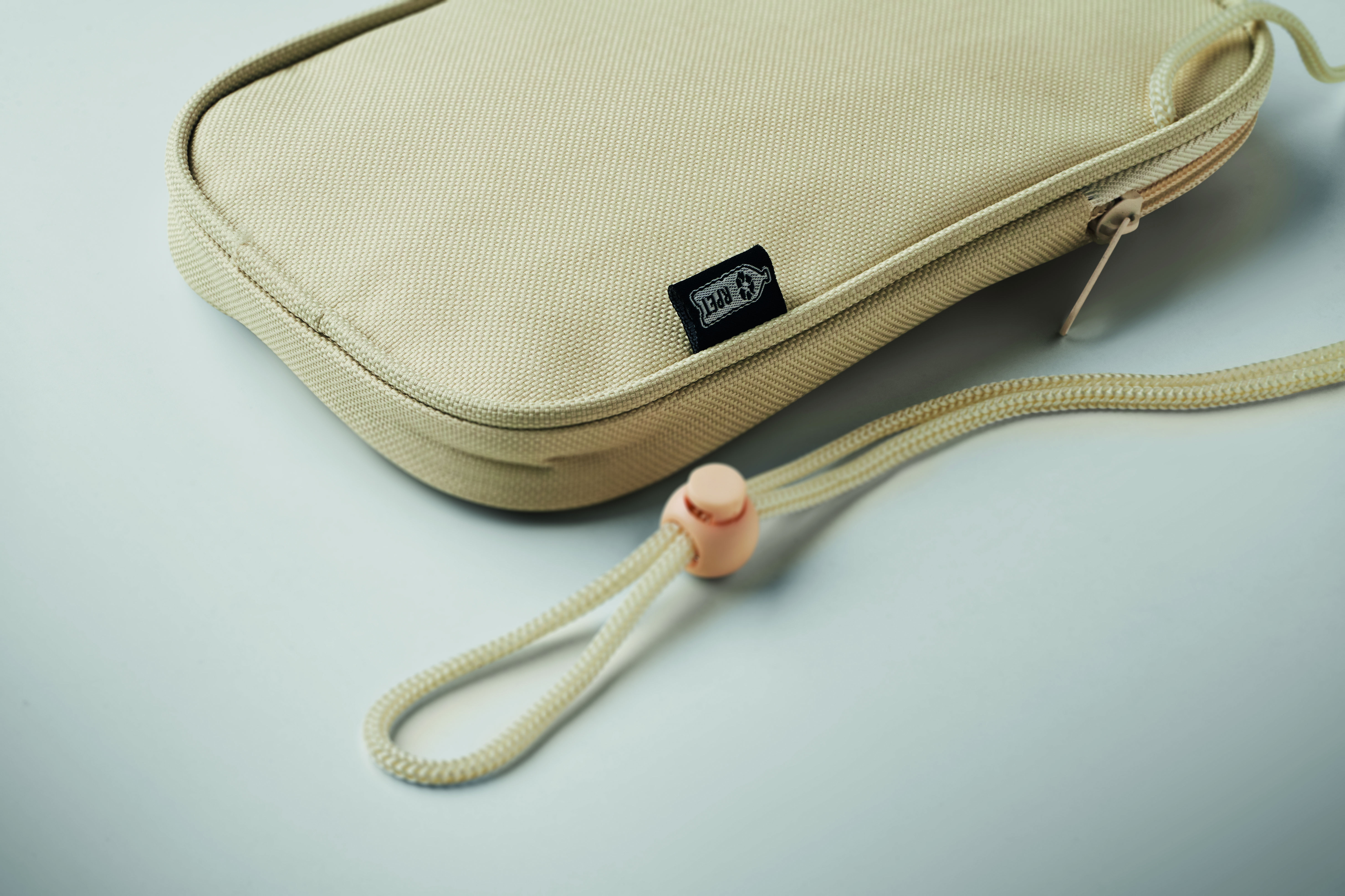 Saszetka podróżna wykonana z poliestru 600D RPET, podszewka 210D RPET z paskiem ze sznurka.