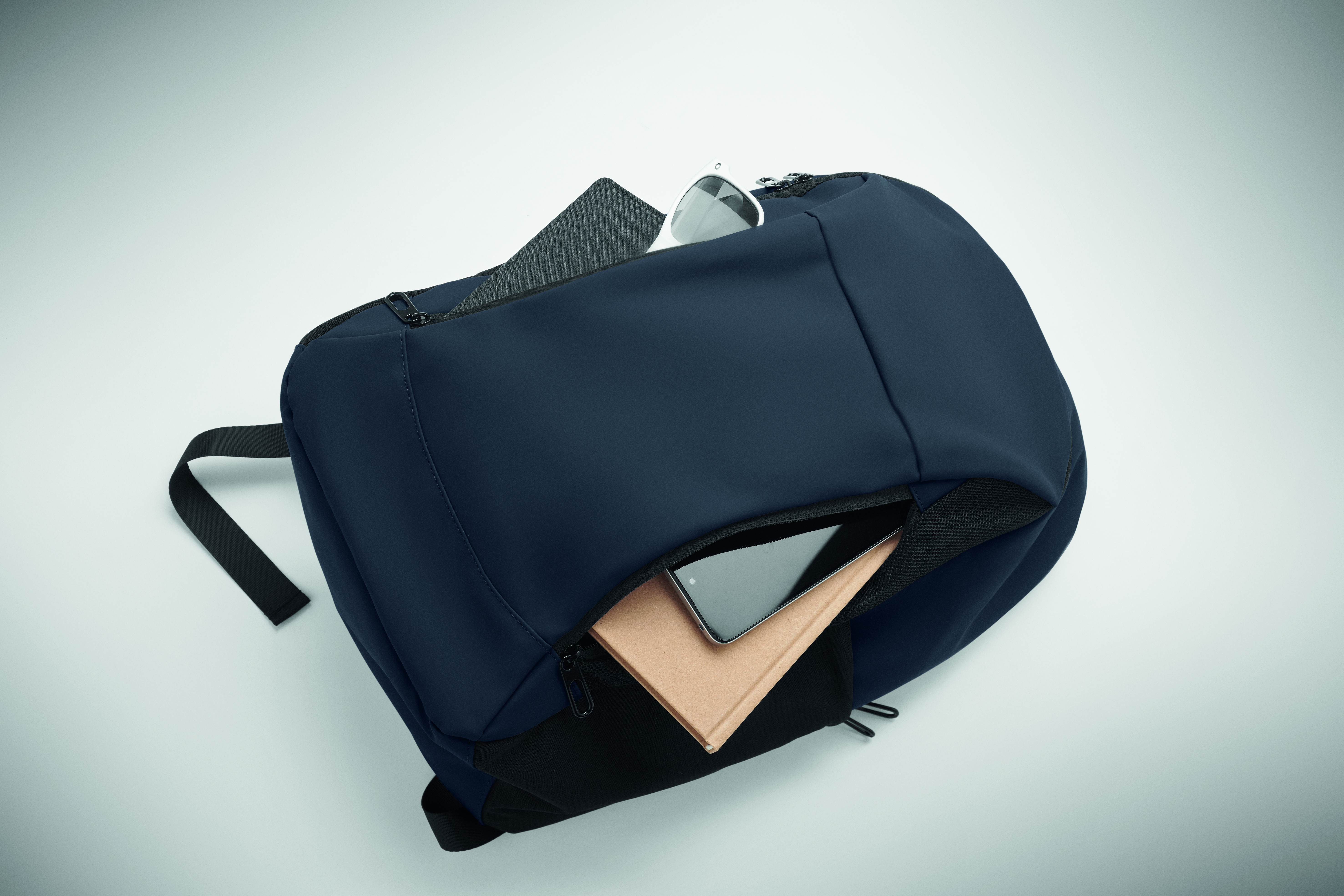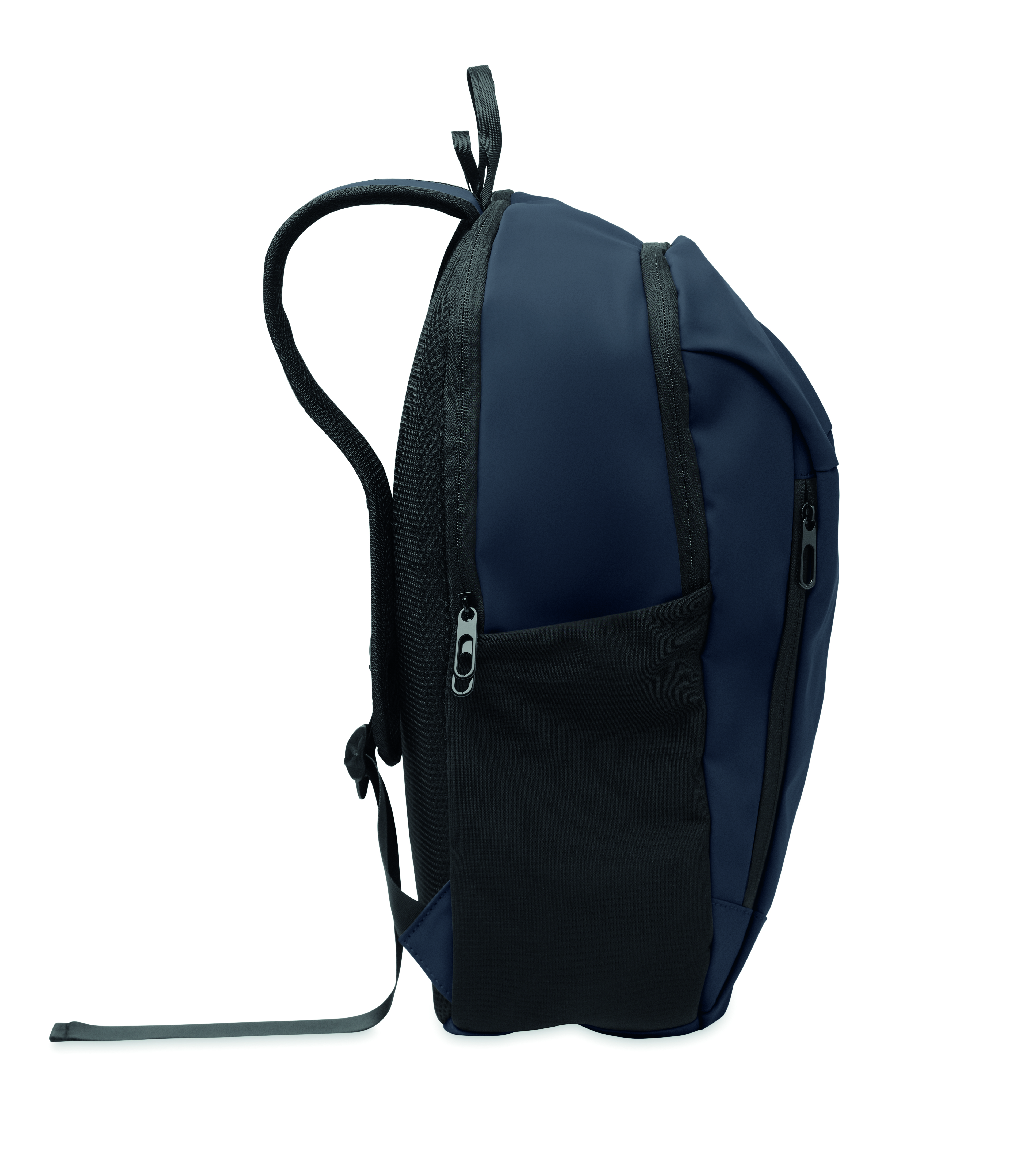 Plecak na laptopa 15 cali z miękkiego PU z wyściełanym tyłem i ukrytą komorą główną zapinaną na zamek. 1 przednia kieszeń zapinana na zamek, 2 przednie boczne kieszenie zapinane na zamek i 2 boczne kieszenie z elastycznej siatki. Podszewka z RPET 210D.