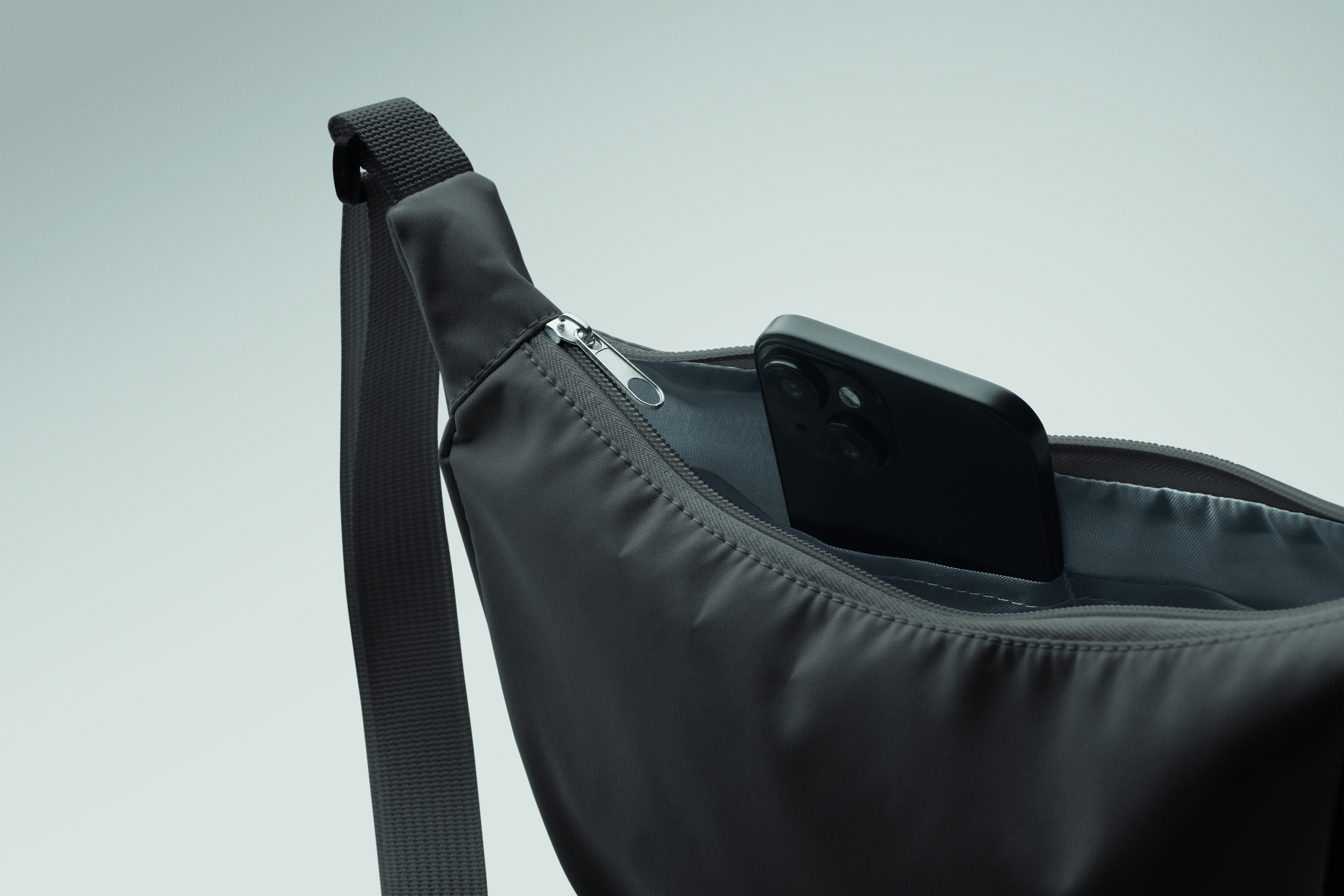 Torba typu sling lub cross body z materiału 400D oxford i podszewką 210D RPET. Jedna główna kieszeń zapinana na zamek i 2 kieszenie wewnętrzne.