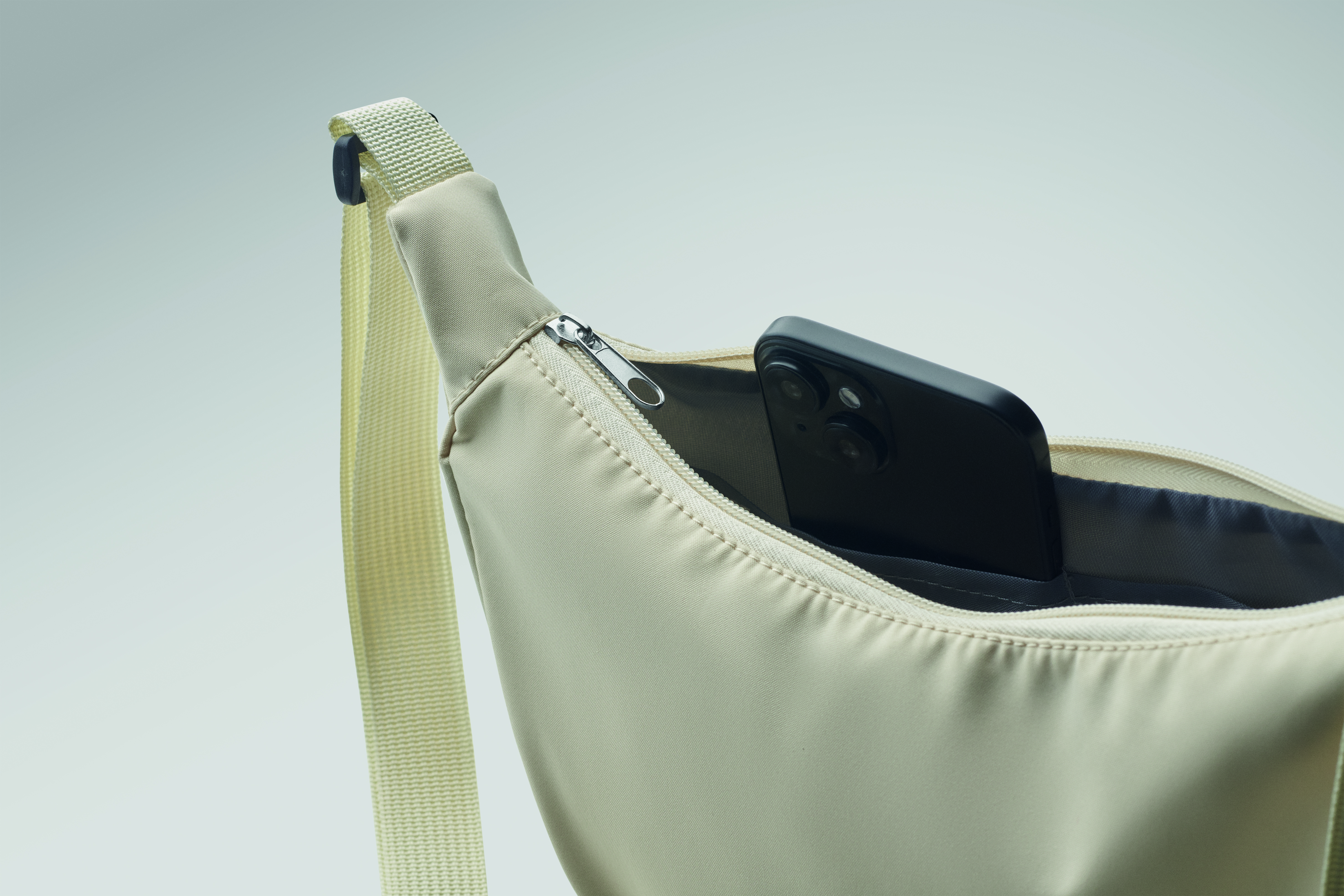 Torba typu sling lub cross body z materiału 400D oxford i podszewką 210D RPET. Jedna główna kieszeń zapinana na zamek i 2 kieszenie wewnętrzne.