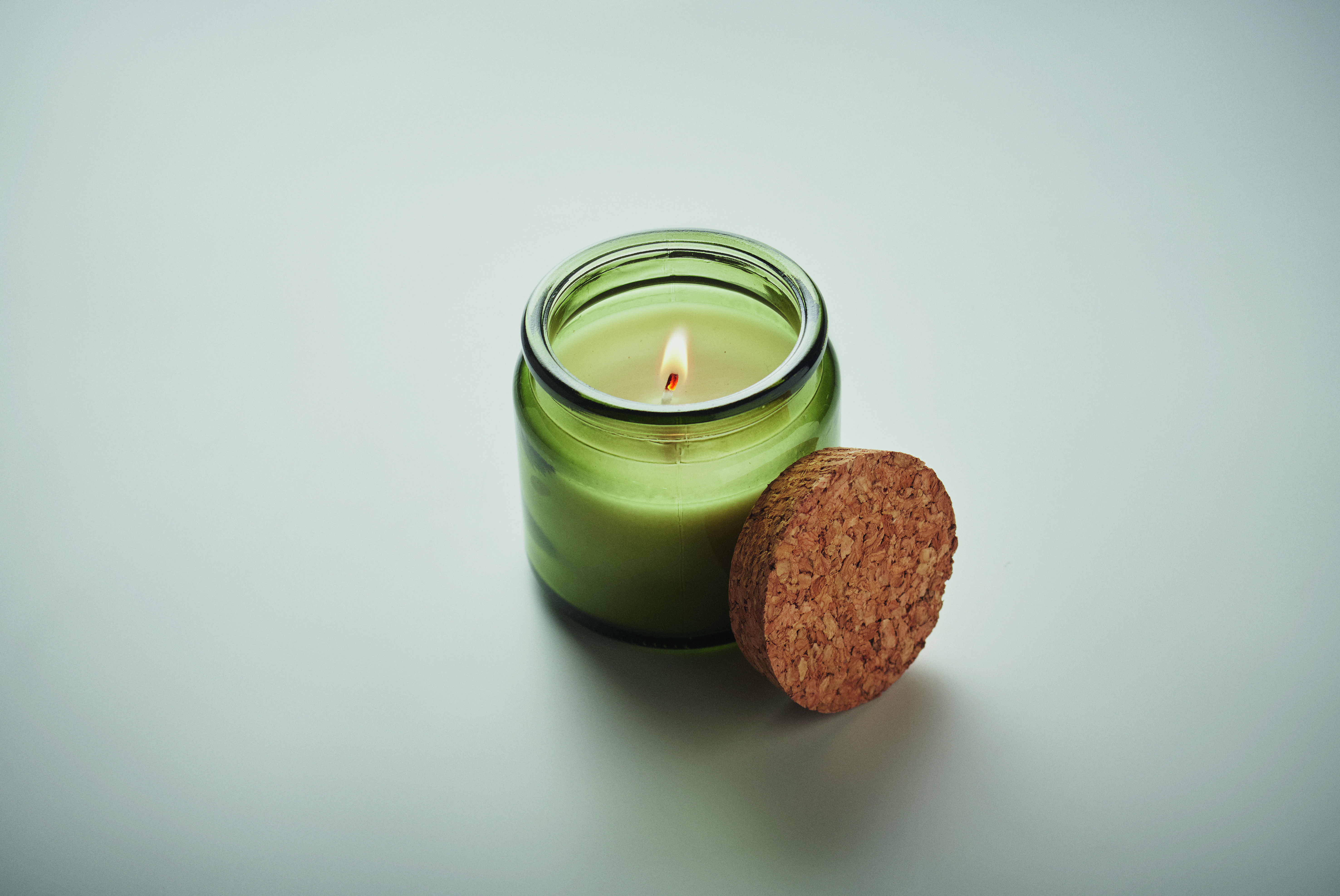 Roślinna świeca woskowa o zapachu wanilii w szklanym pojemniku z korkową pokrywką. 70 gr. Czas palenia 12 godzin