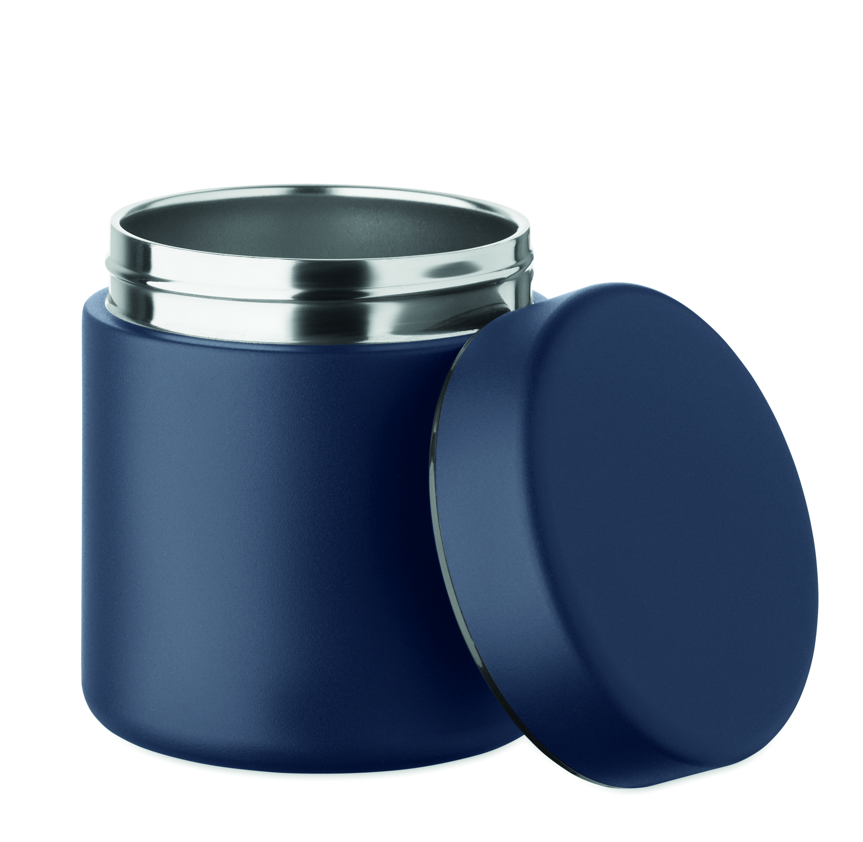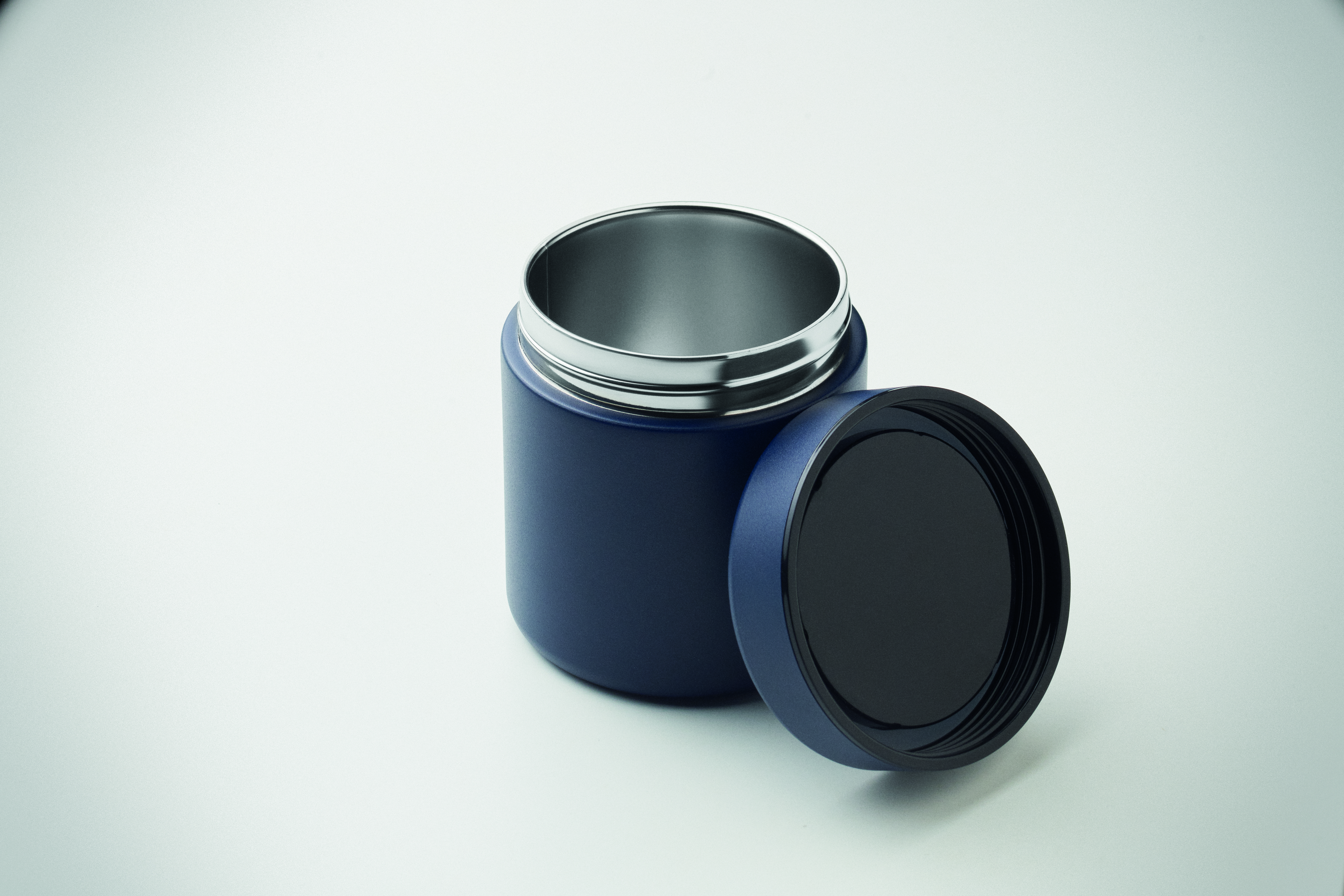 lunchbox z podwójnymi ściankami wykonany w 90% ze stali nierdzewnej pochodzącej z recyklingu i w 10% ze stali nierdzewnej z pokrywką z PP. Pojemność: 500 ml.