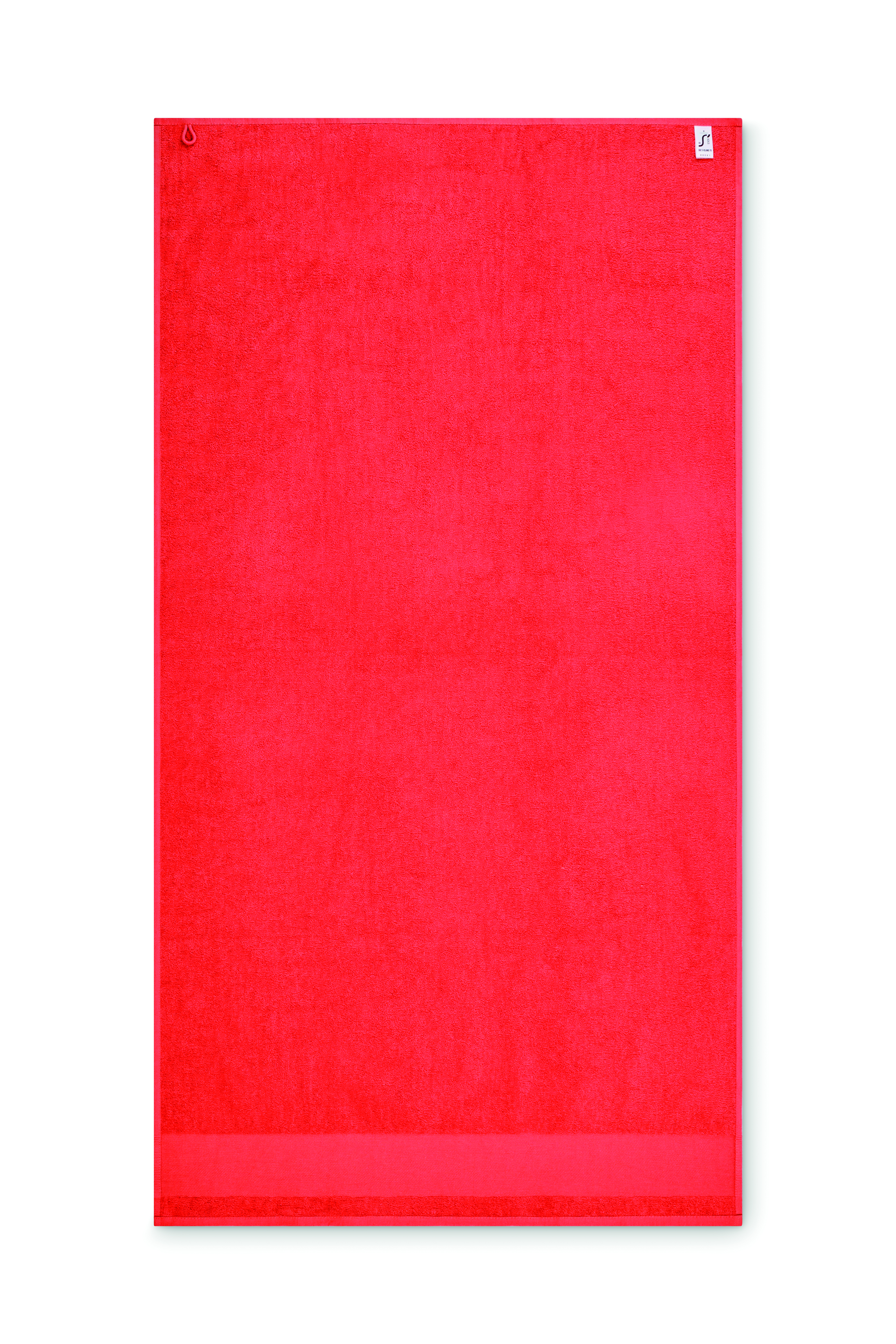 Ręcznik kąpielowy wykonany w 100% z bawełny o gramaturze 380 gr/m² z bawełnianą pętelką do zawieszenia. Miękka i chłonna konstrukcja.