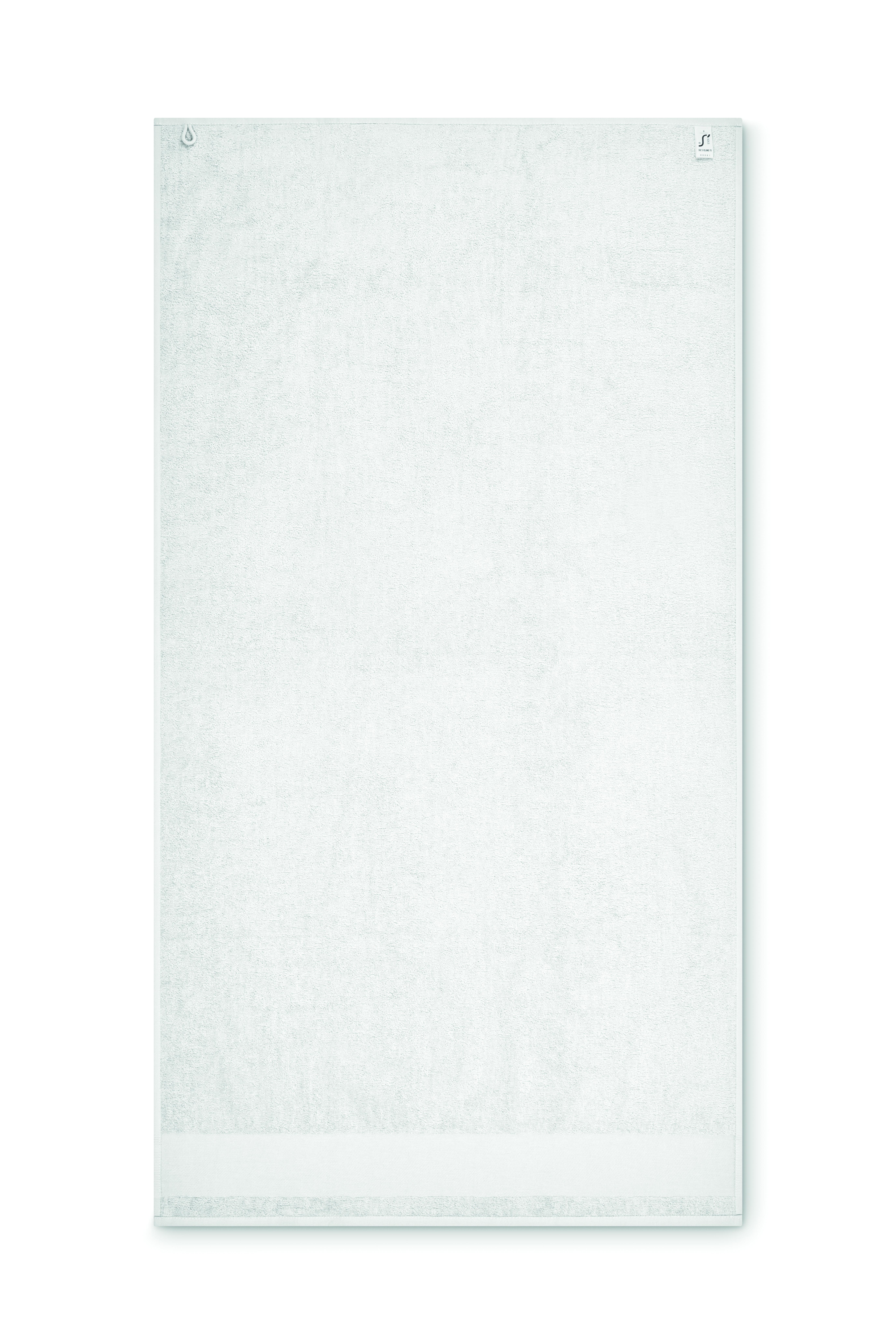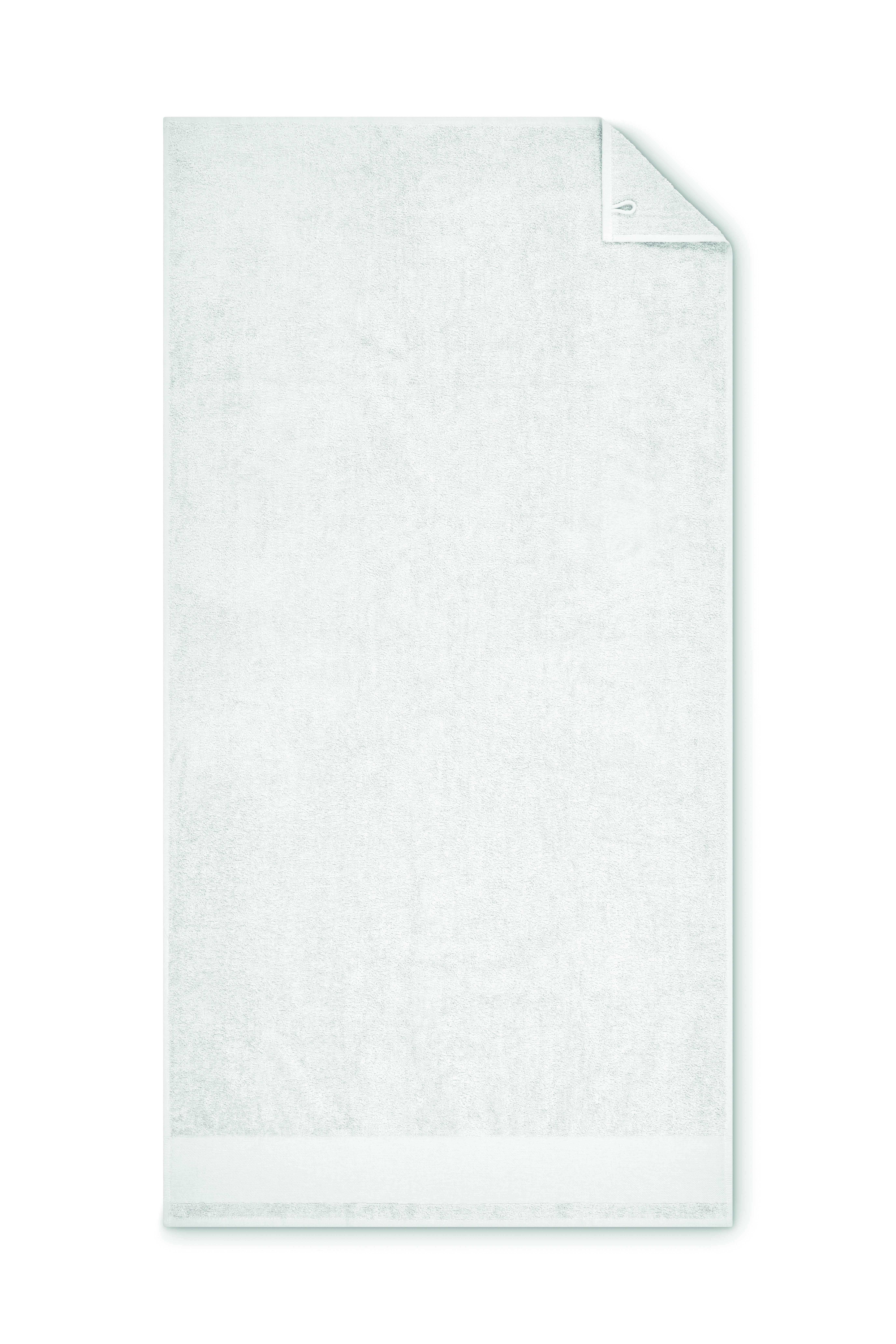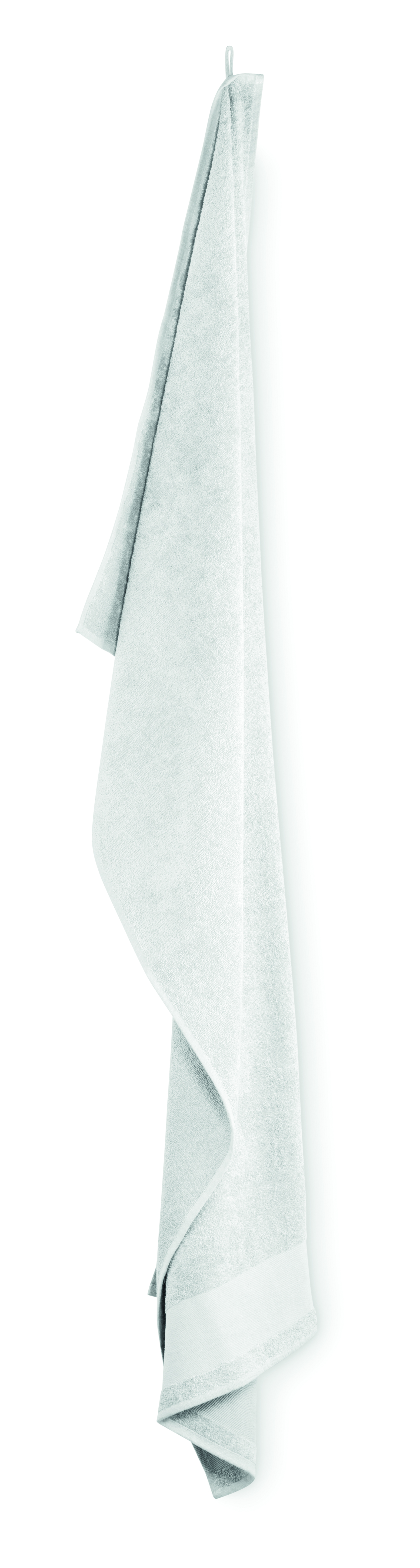 Ręcznik kąpielowy wykonany w 100% z bawełny o gramaturze 380 gr/m² z bawełnianą pętelką do zawieszenia. Miękka i chłonna konstrukcja.
