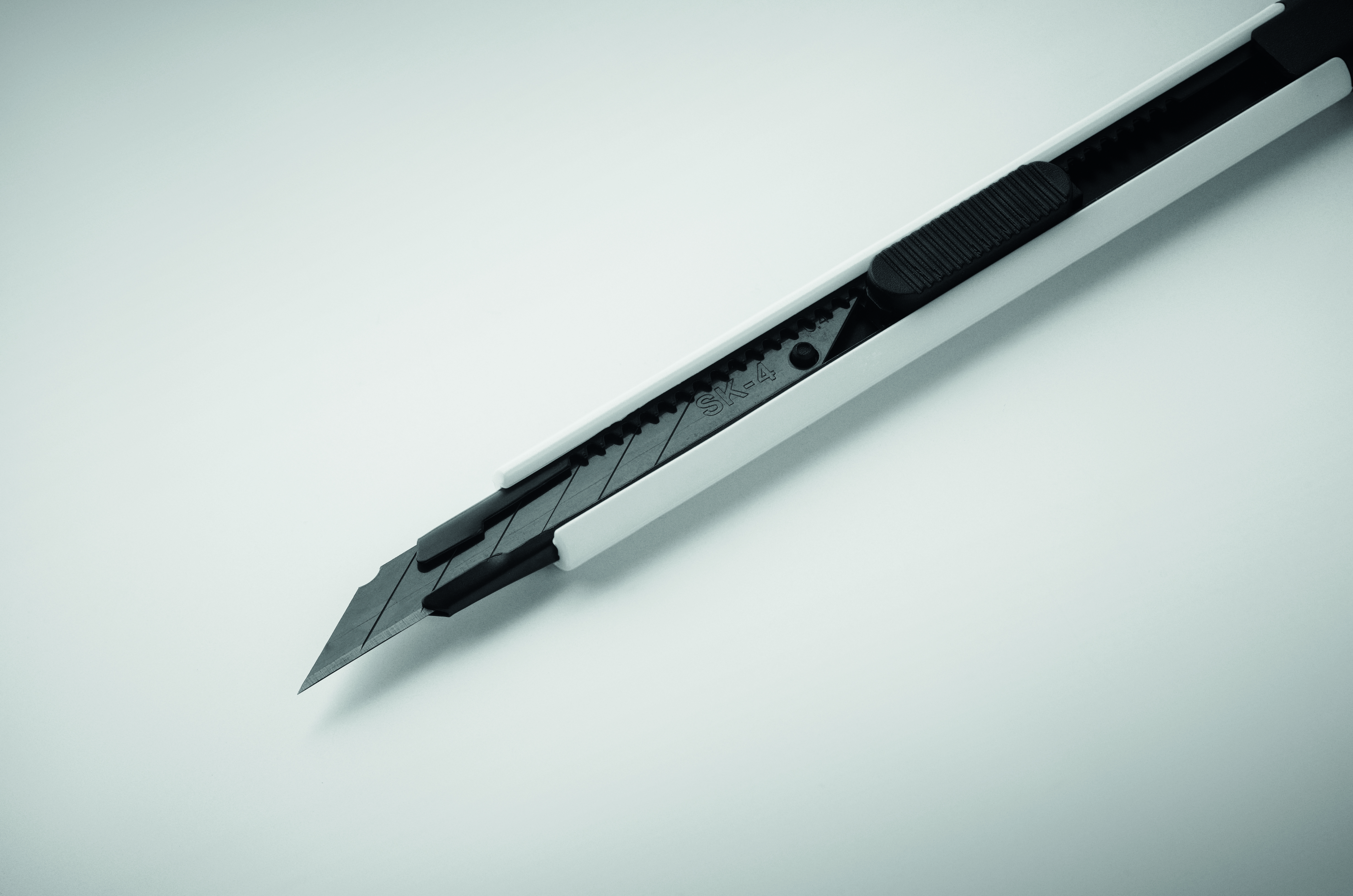 Wysuwany nóż z obudową ABS i ostrzem ze stali węglowej. Kompaktowa konstrukcja o długości 15 cm umożliwia precyzyjne cięcie.