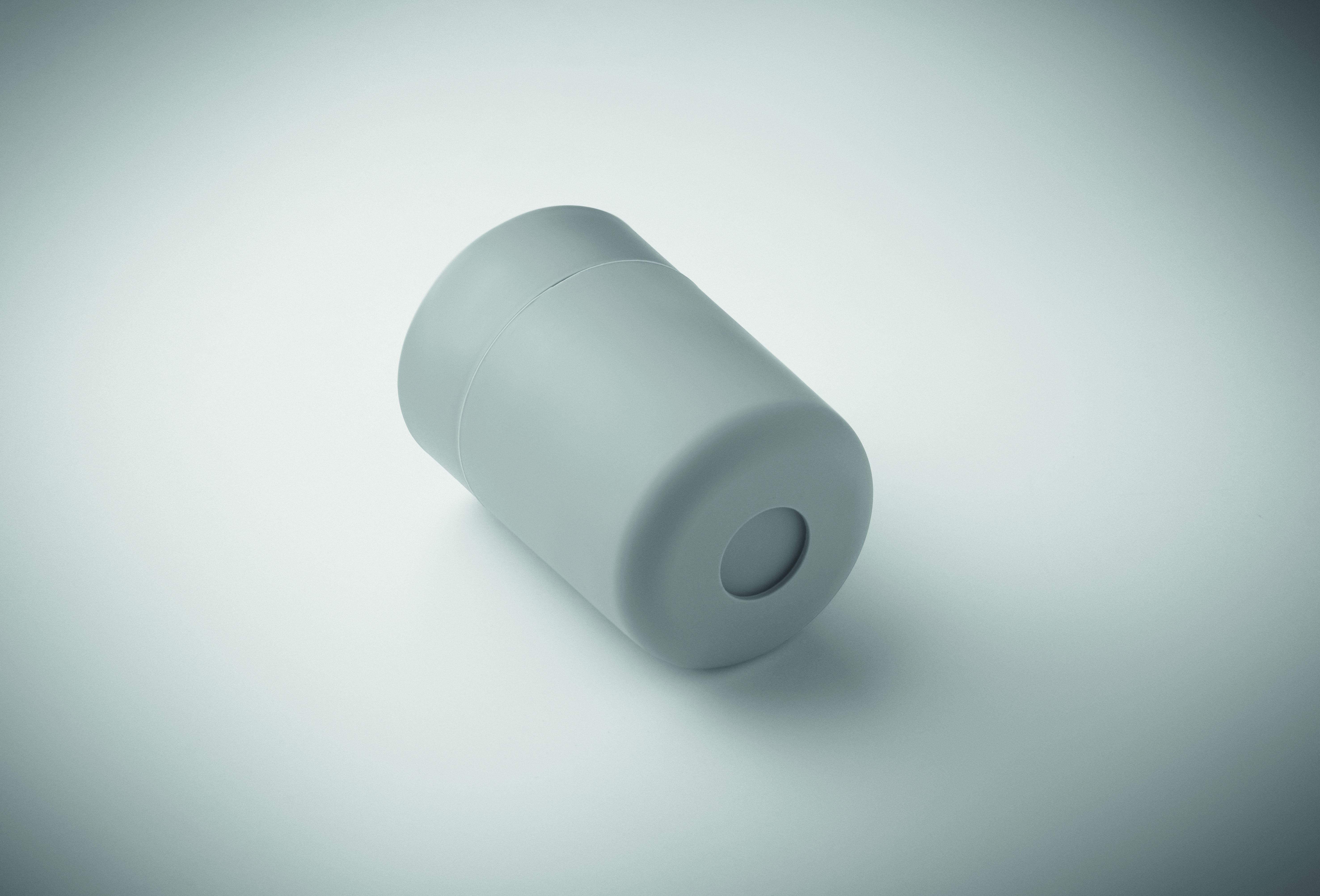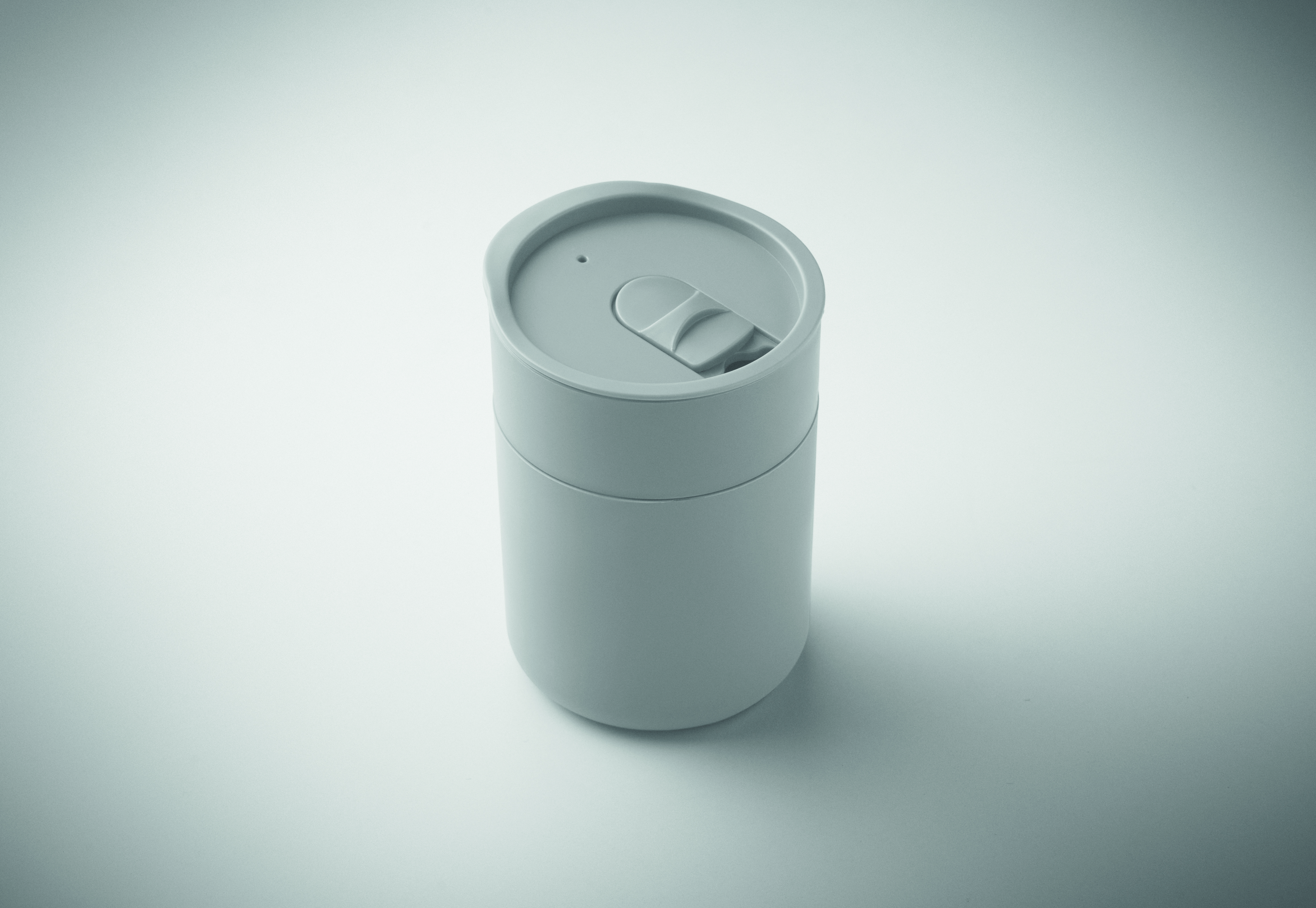 Kubek z PP z silikonową osłoną i przesuwaną pokrywką z PP. Pojemność: 330 ml. Ponieważ jest to kubek jednościenny, nadal może dochodzić do wymiany ciepła.