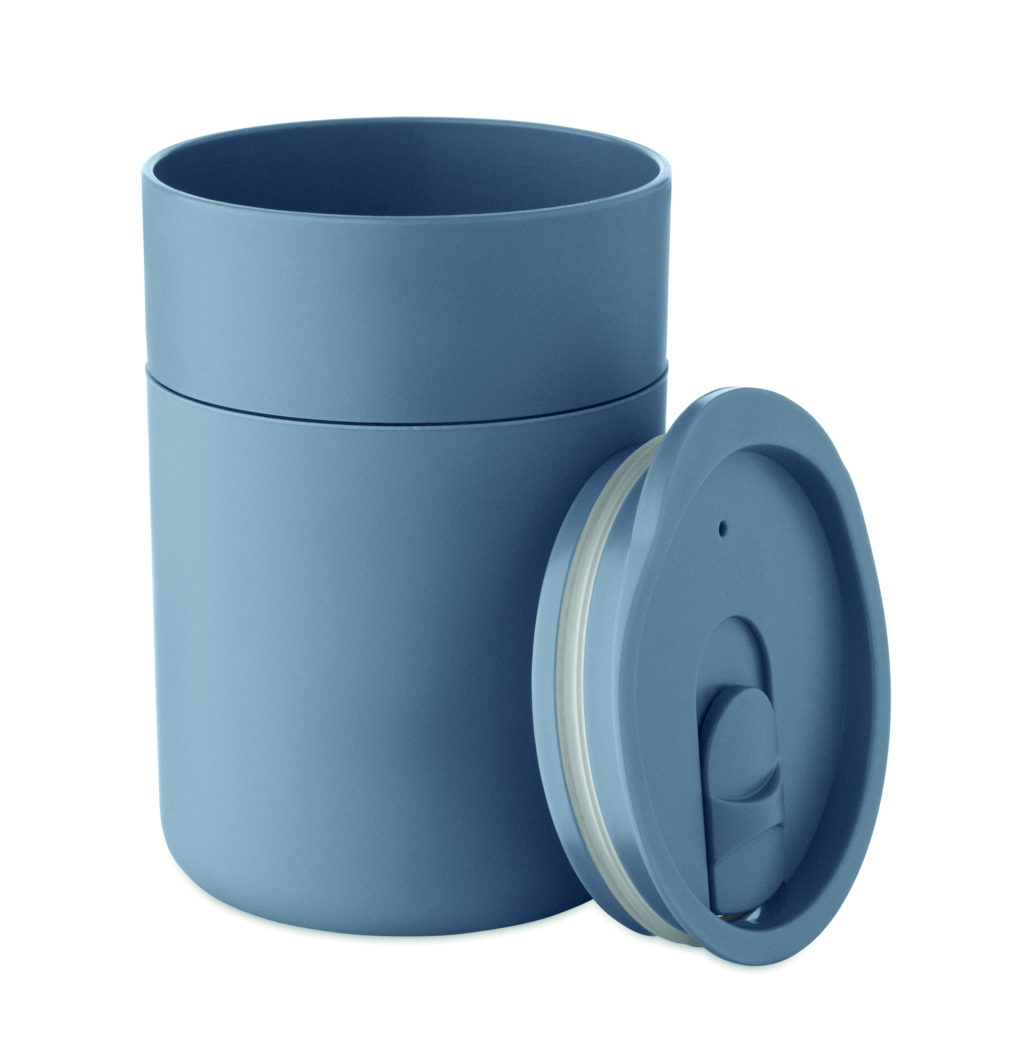 Kubek z PP z silikonową osłoną i przesuwaną pokrywką z PP. Pojemność: 330 ml. Ponieważ jest to kubek jednościenny, nadal może dochodzić do wymiany ciepła.