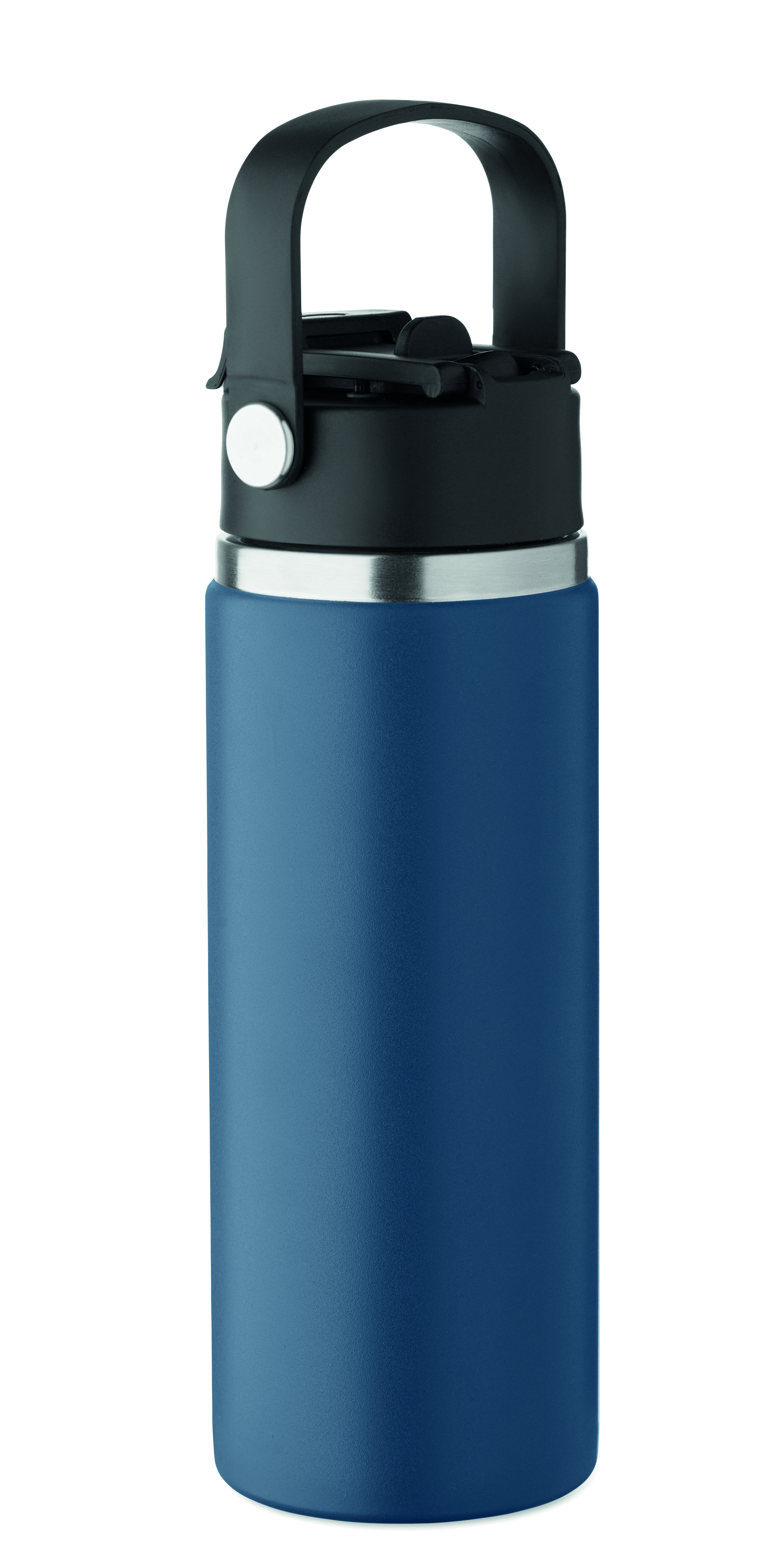 Butelka z podwójnymi ścianami z recyklingowanej stali nierdzewnej (90% z recyklingu stali nierdzewnej i 10% ze stali nierdzewnej) ze słomką i pokrywką z uchwytem. Nie przecieka. Pojemność: 500 ml.