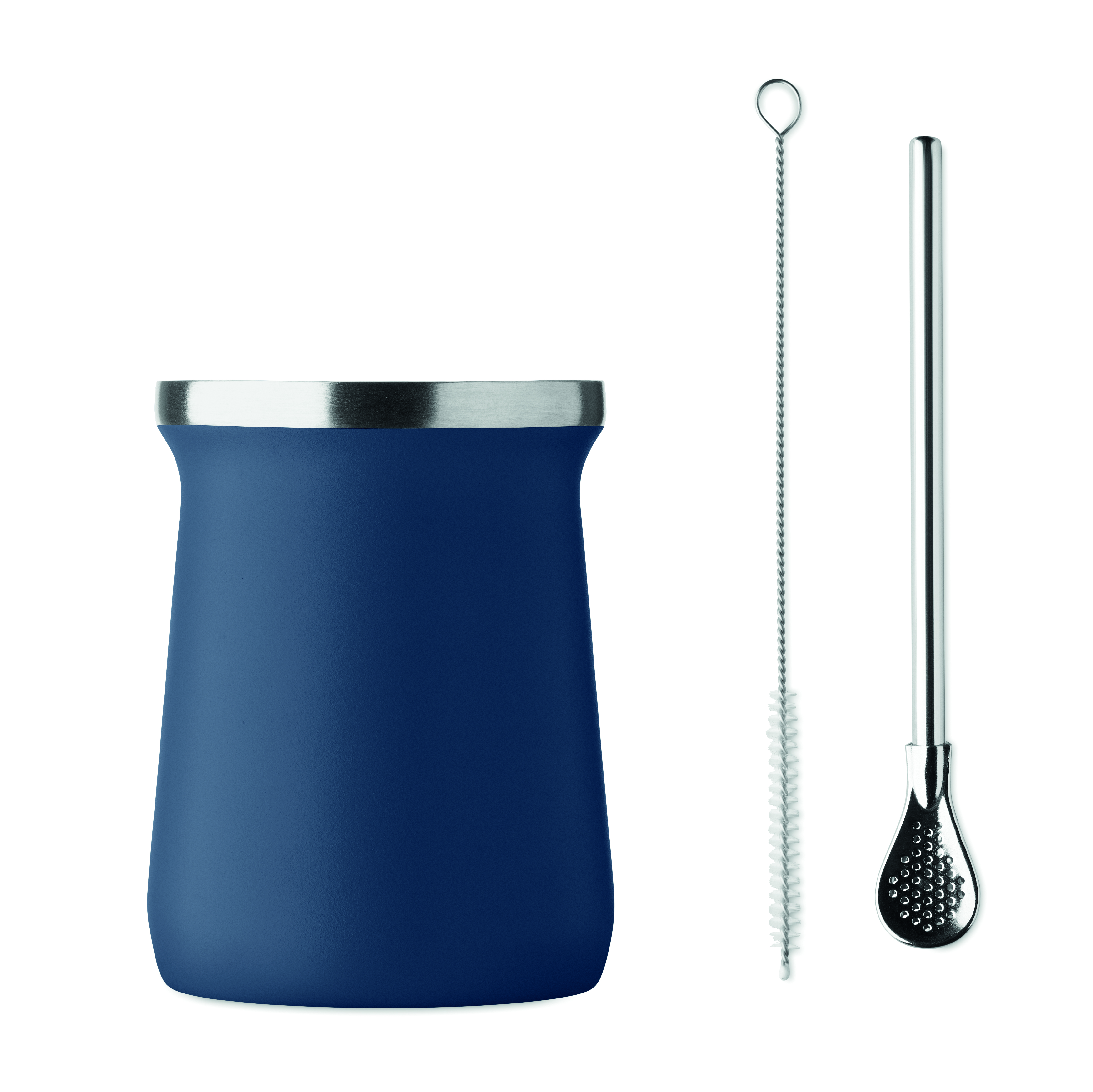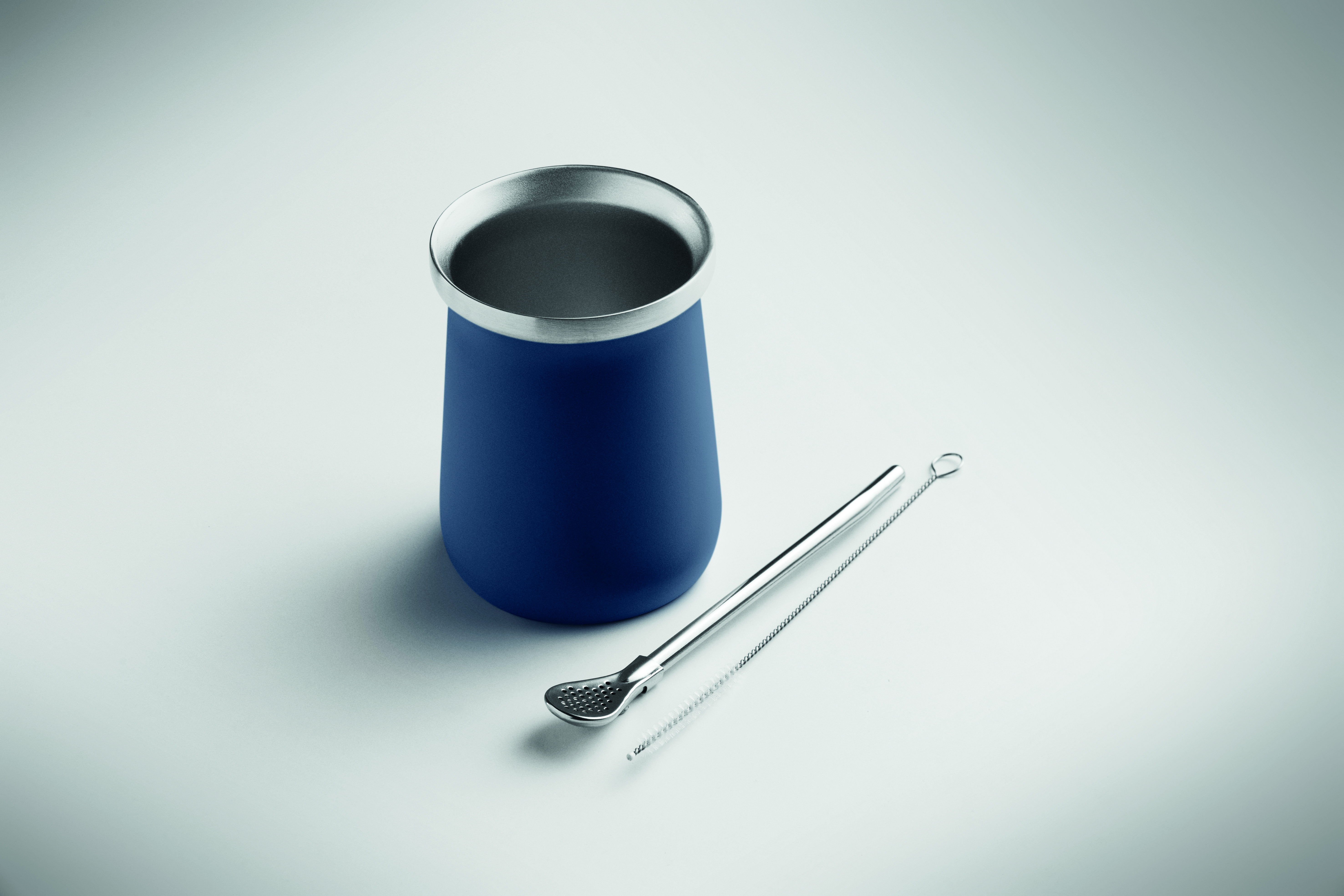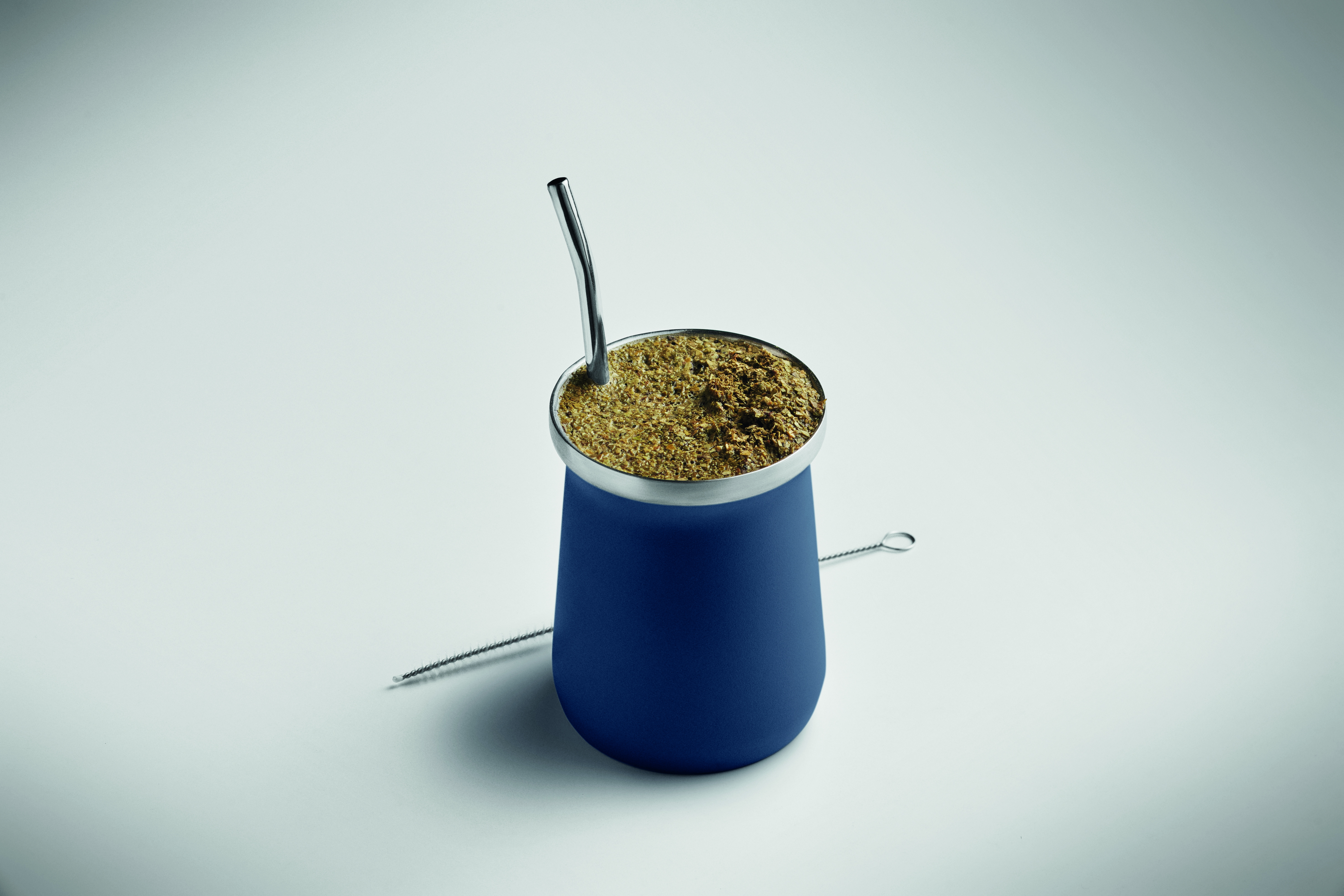 Kubek do yerby 2 ścianki stal nierdzewna z recyklingu (90% stal nierdzewna z recyklingu i 10% stal nierdzewne). Ma słomkę bombilla ze stali nierdzewnej i szczoteczkę do czyszczenia. Pojemność: 240 ml.