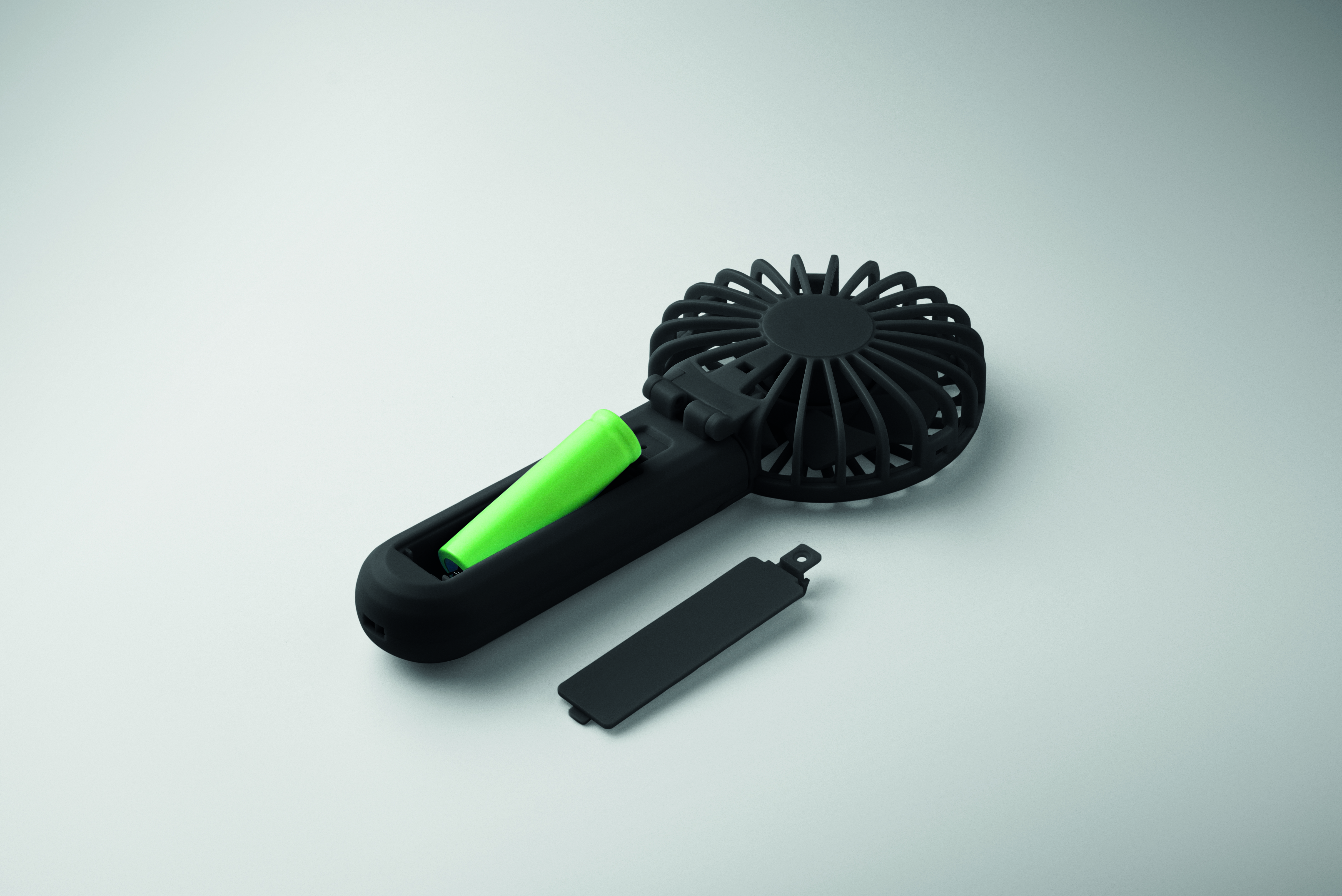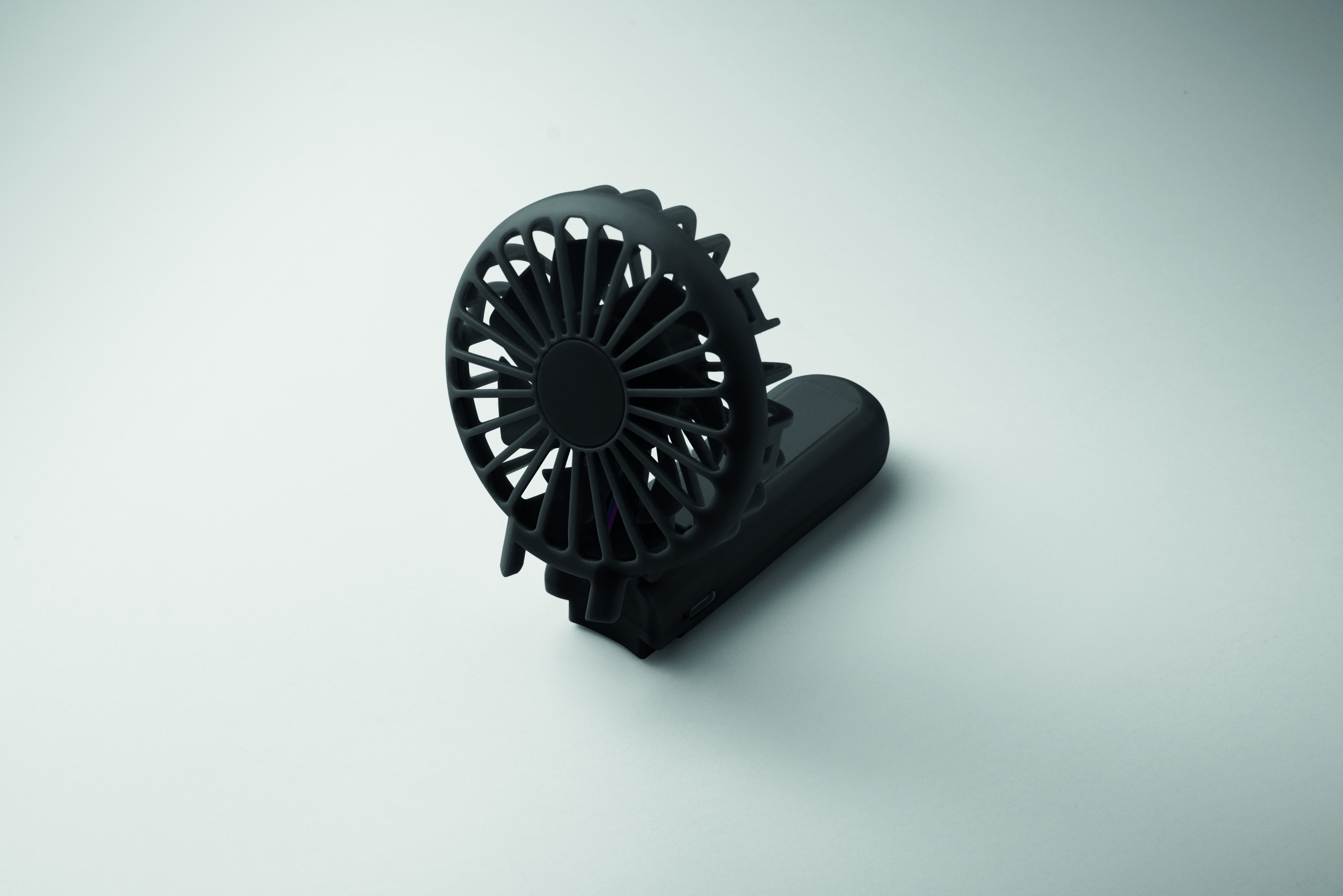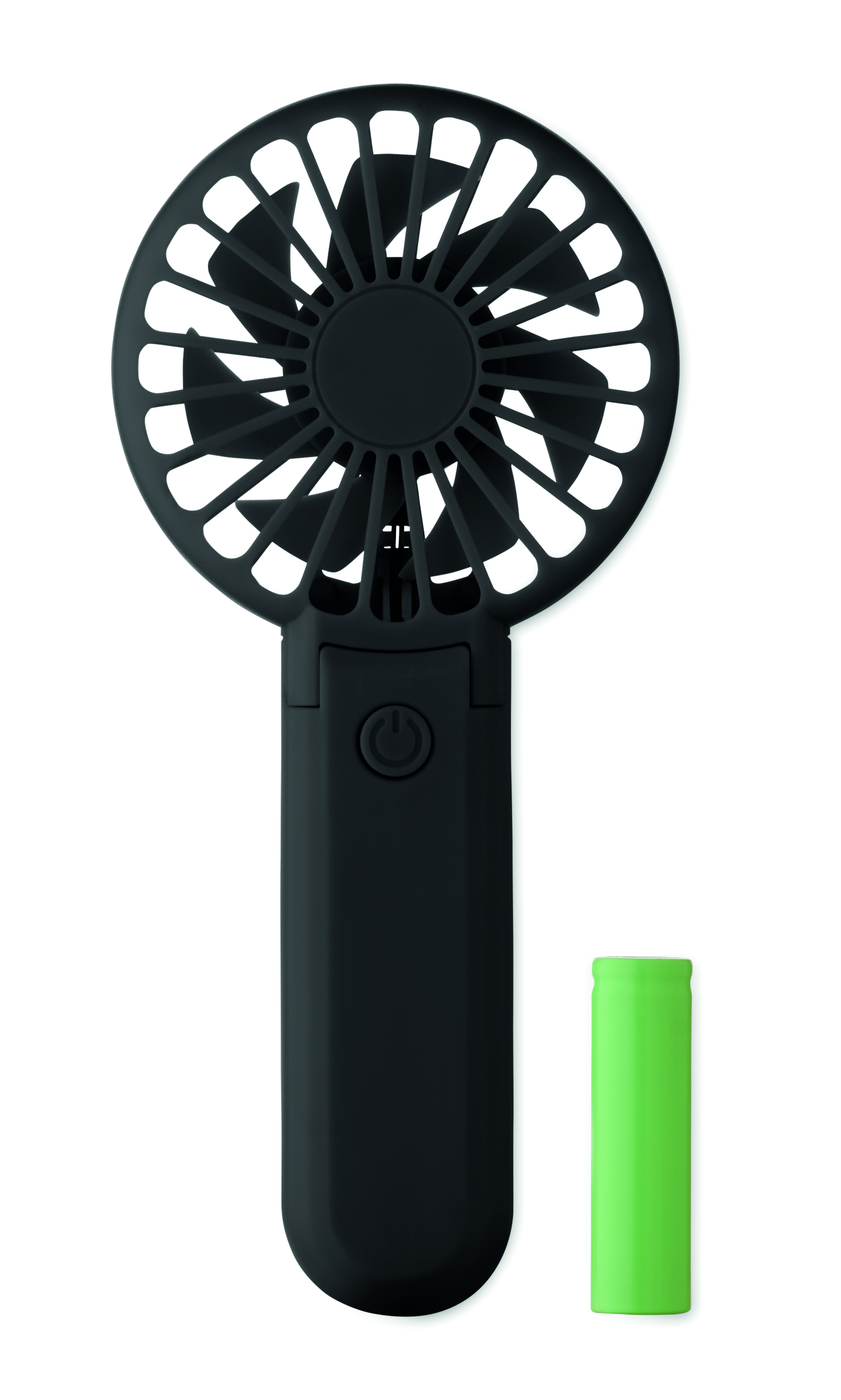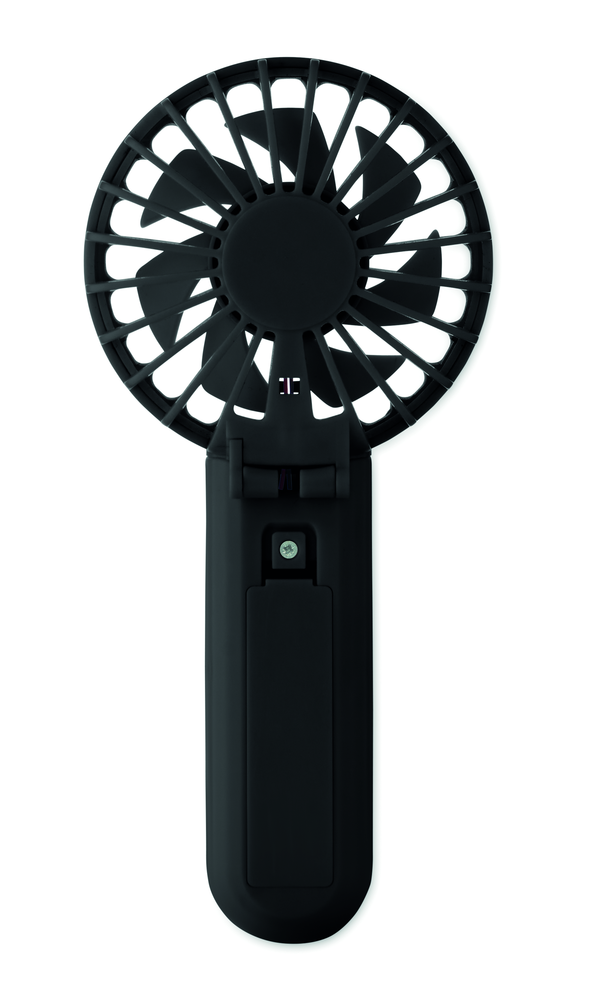 Przenośny, składany wentylator z ABS z 3 ustawieniami prędkości. Może być używany jako wentylator ręczny lub biurkowy. Zawiera 1 wymienną baterię litową 14500 o pojemności 500 mAh.