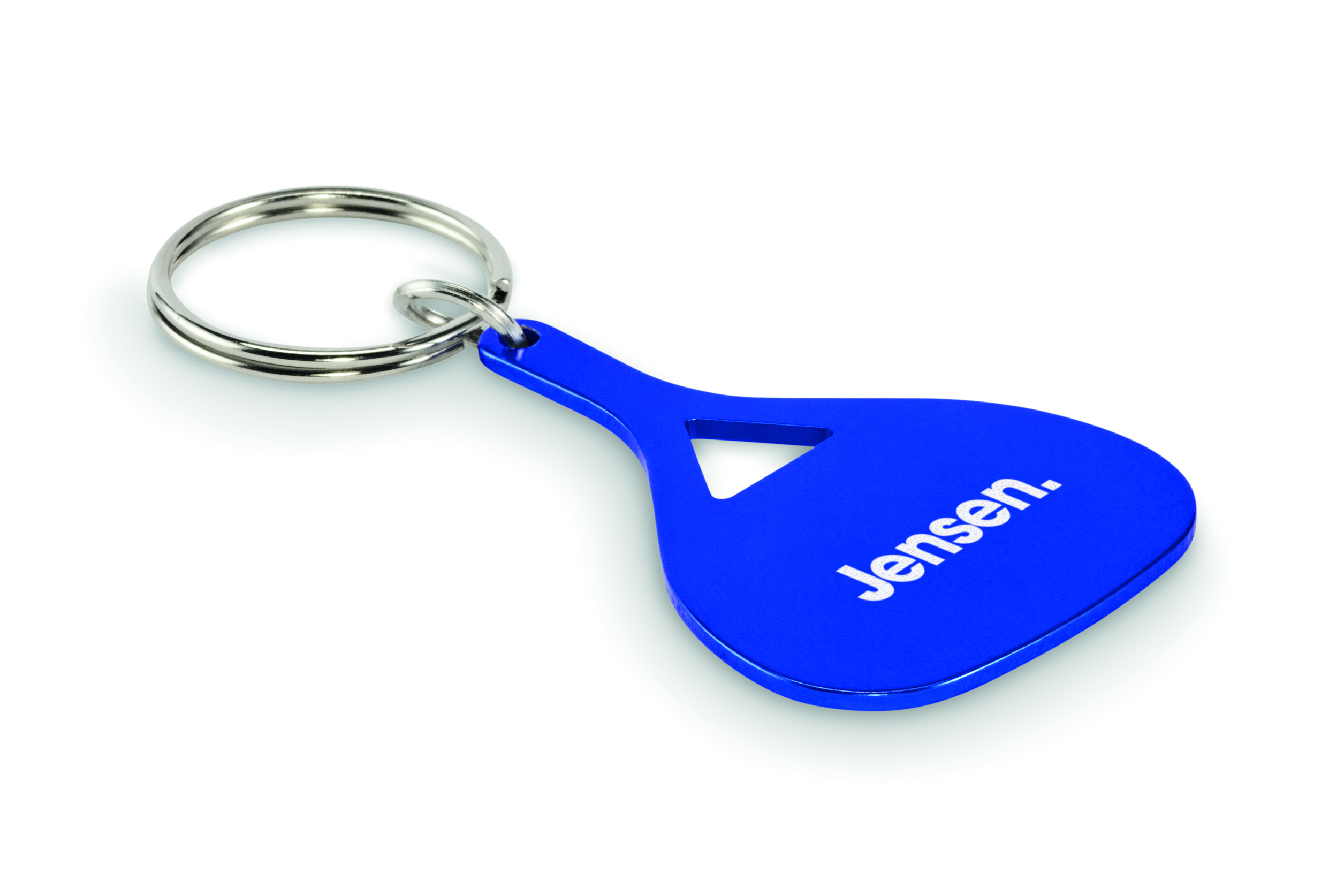 Aluminiowy brelok w kształcie łopatki z recyklingu.