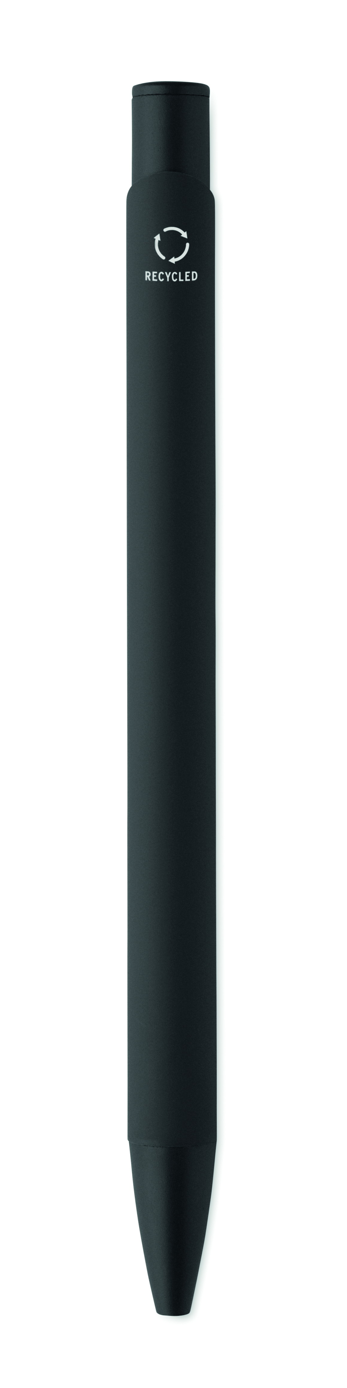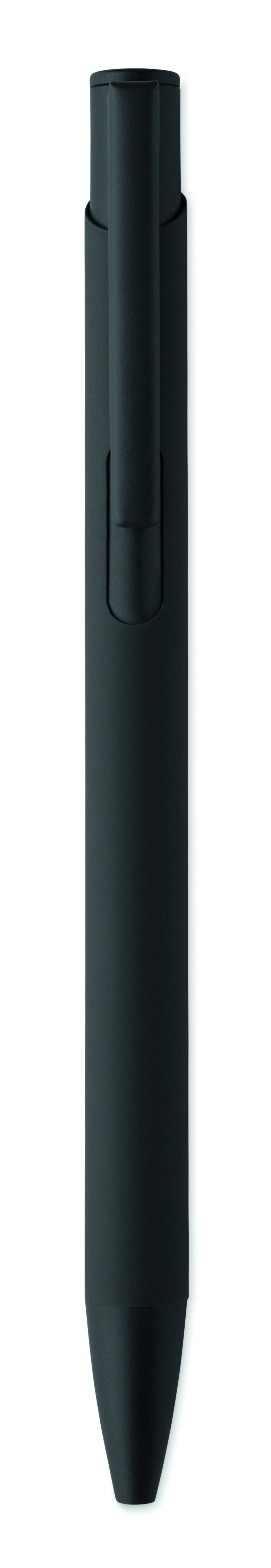 Długopis wciskany wykonany z aluminium pochodzącego z recyklingu, z żelaznym klipsem i kolorowym gumowanym korpusem. Niebieski tusz.