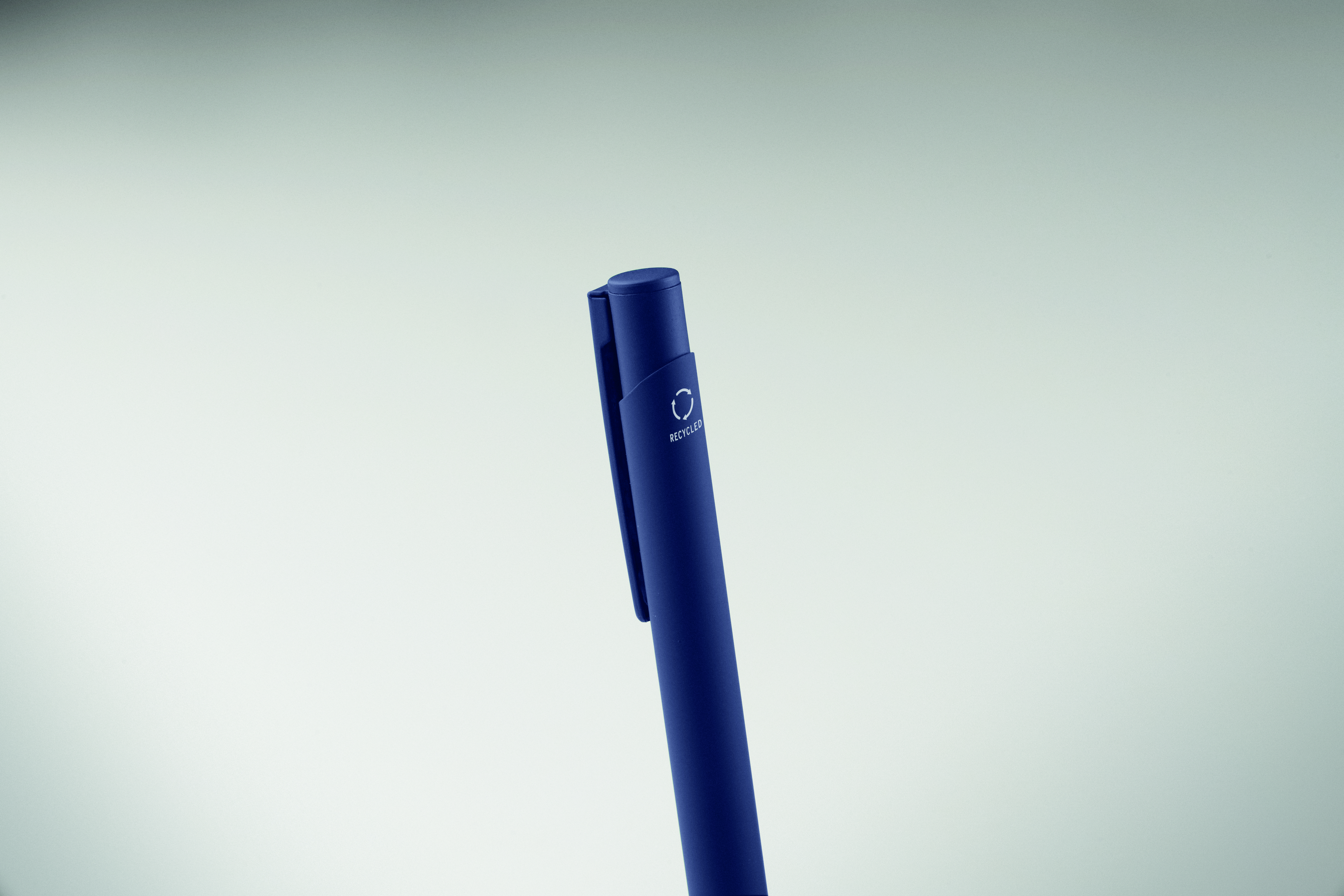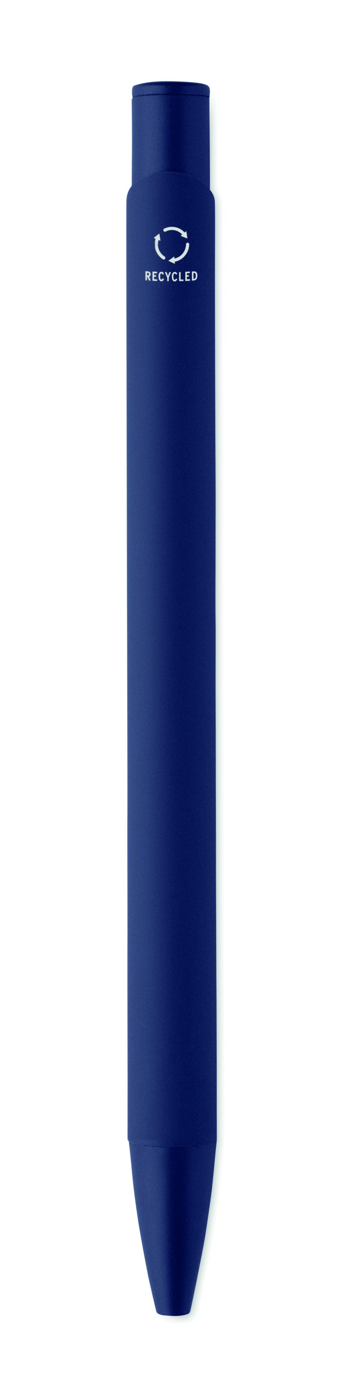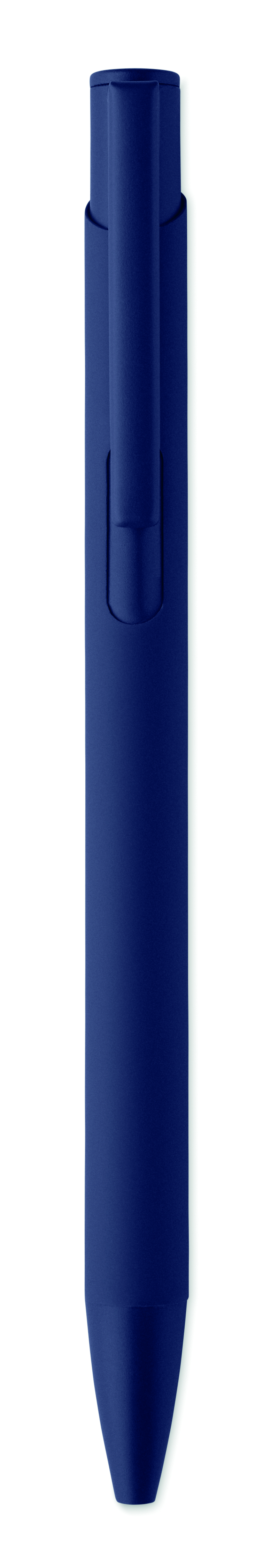 Długopis wciskany wykonany z aluminium pochodzącego z recyklingu, z żelaznym klipsem i kolorowym gumowanym korpusem. Niebieski tusz.