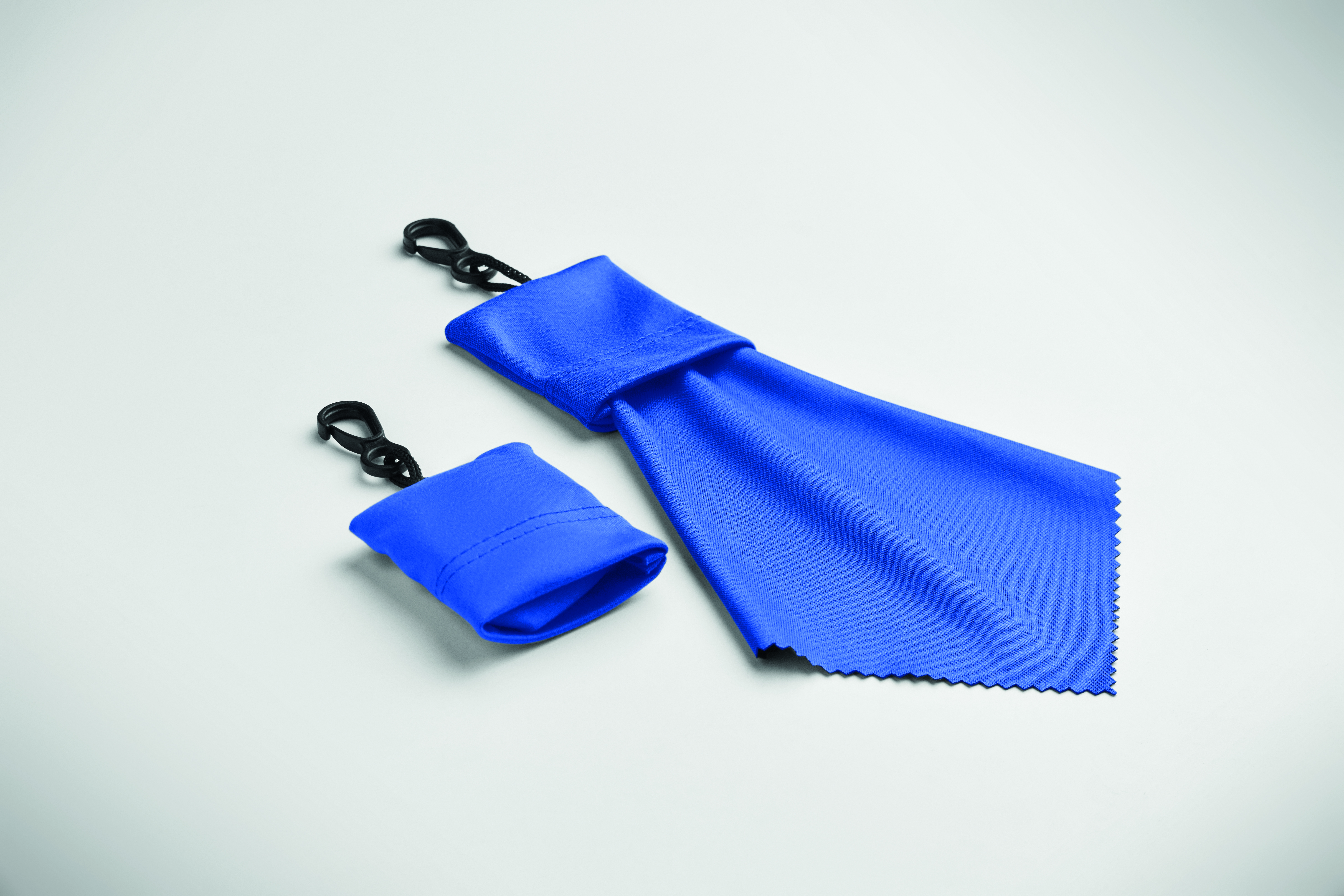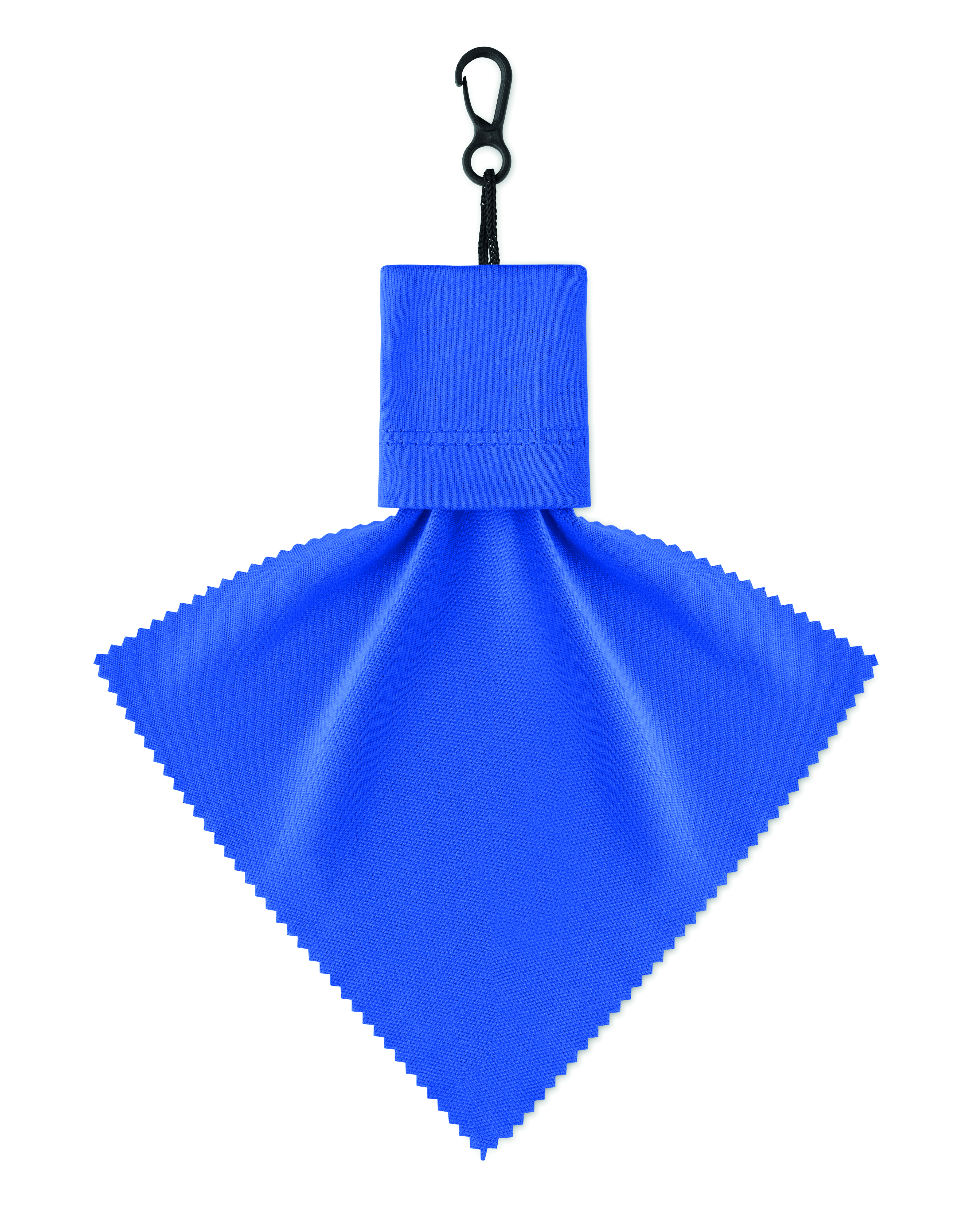 Ściereczka czyszcząca RPET z materiałowym woreczkiem z plastikowym haczykiem do zawieszania PP.