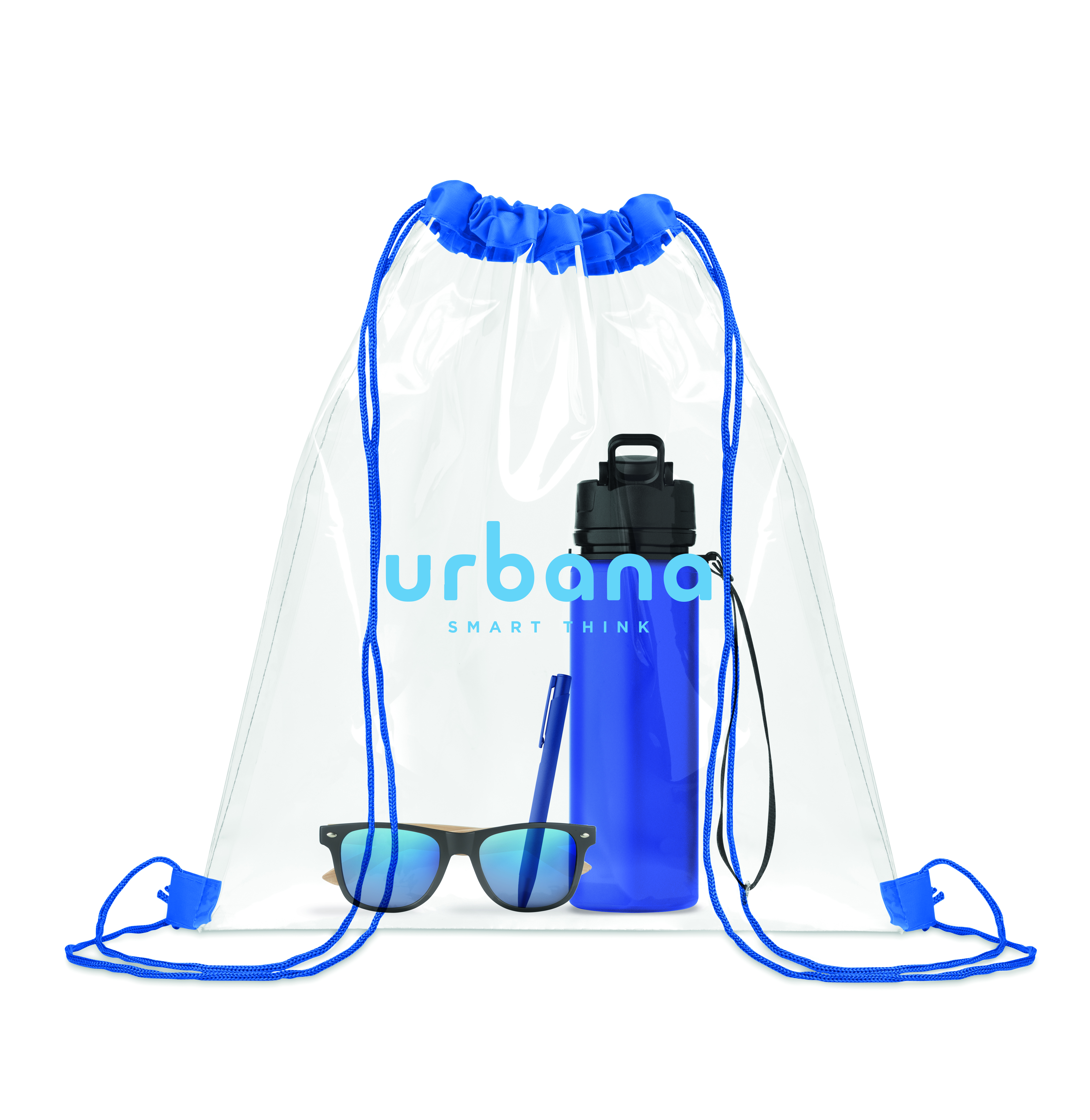 Przezroczysty worek ze sznurkiem z EVA i PVC. Sznurki poliestrowe.