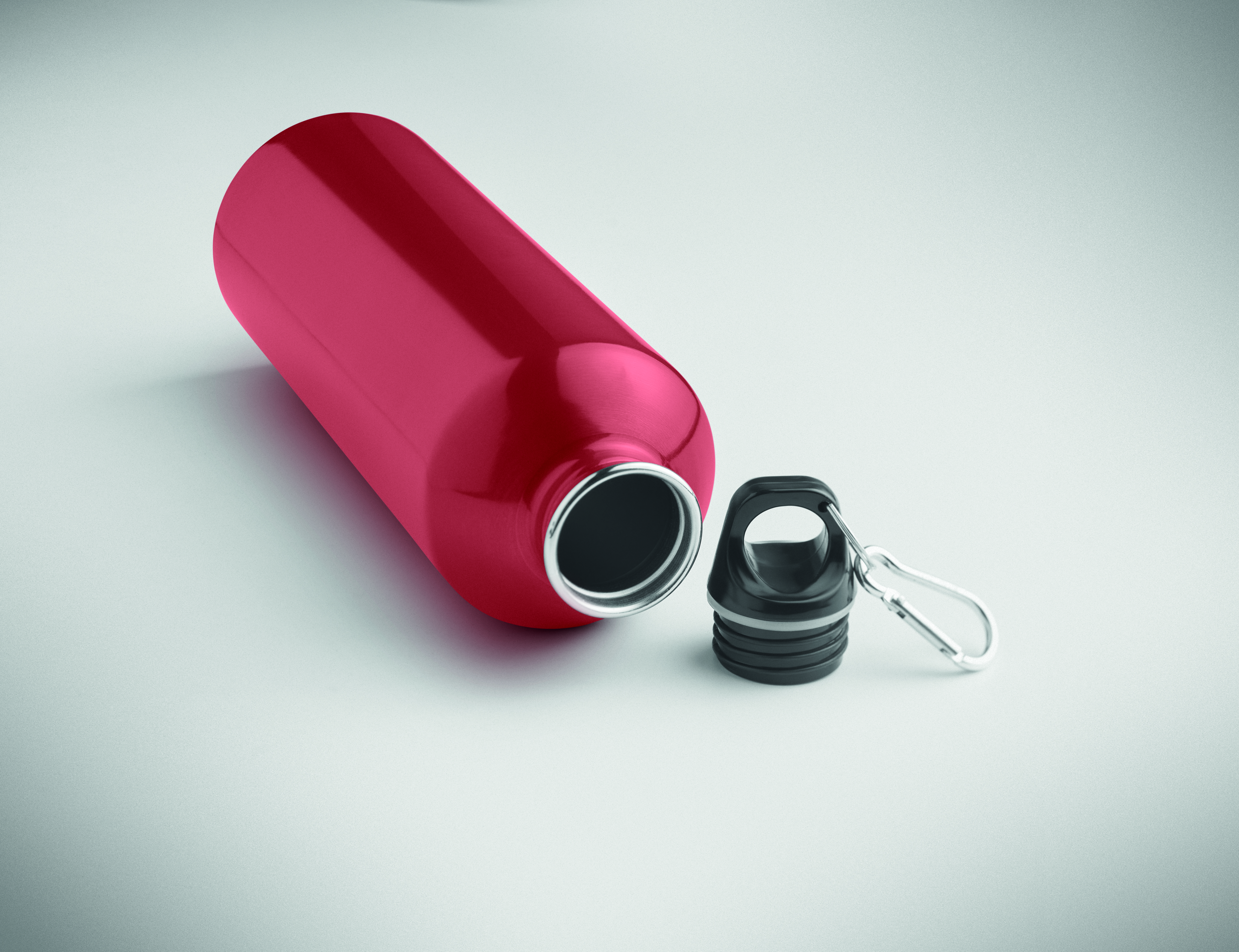 Butelka z pojedynczą ścianką (90% stal nierdzewna z recyklingu i 10% stal nierdzewna) z pokrywką z PP i karabińczykiem. Pojemność 1000 ml. Butelka jednościenna, może występować przenoszenie ciepła.