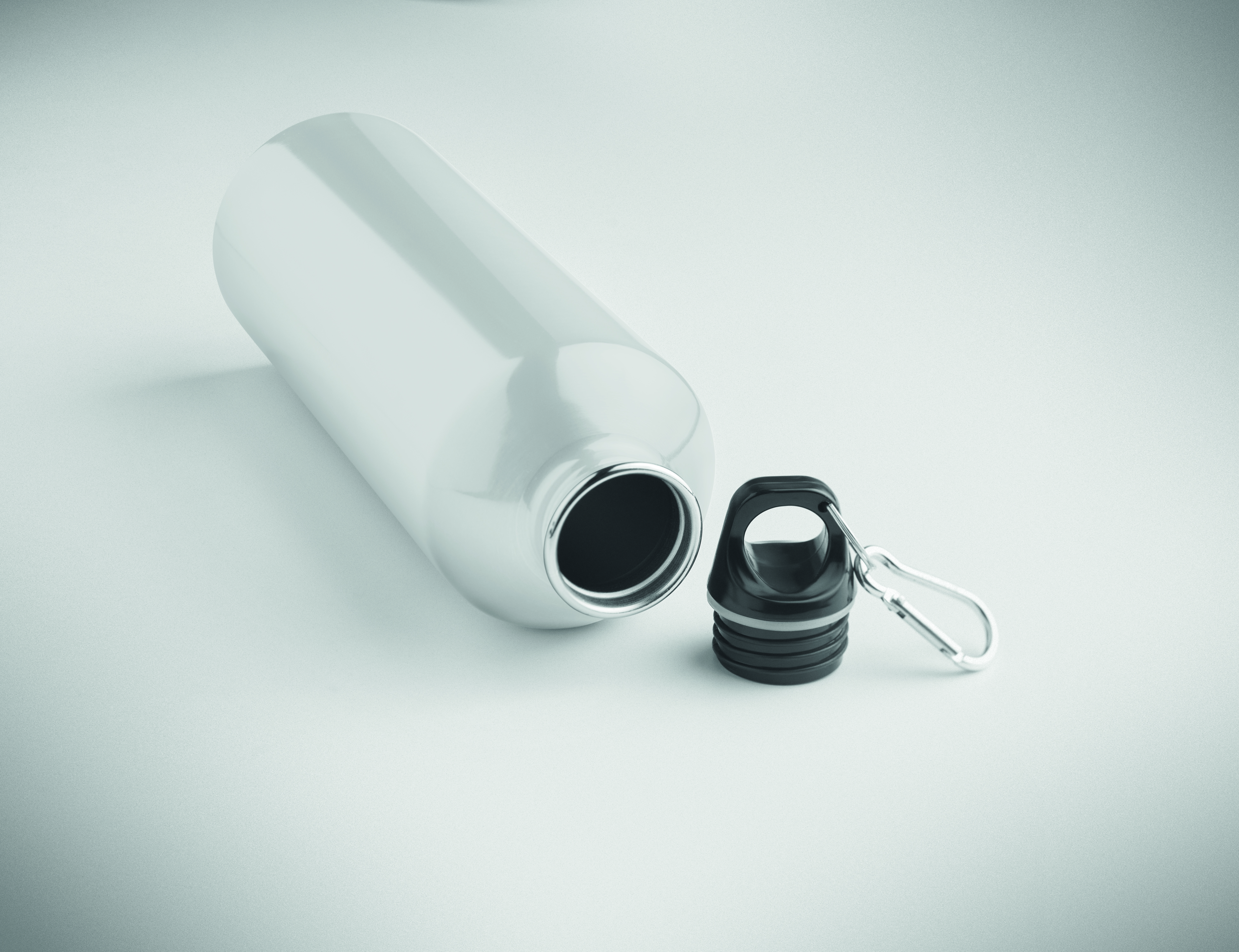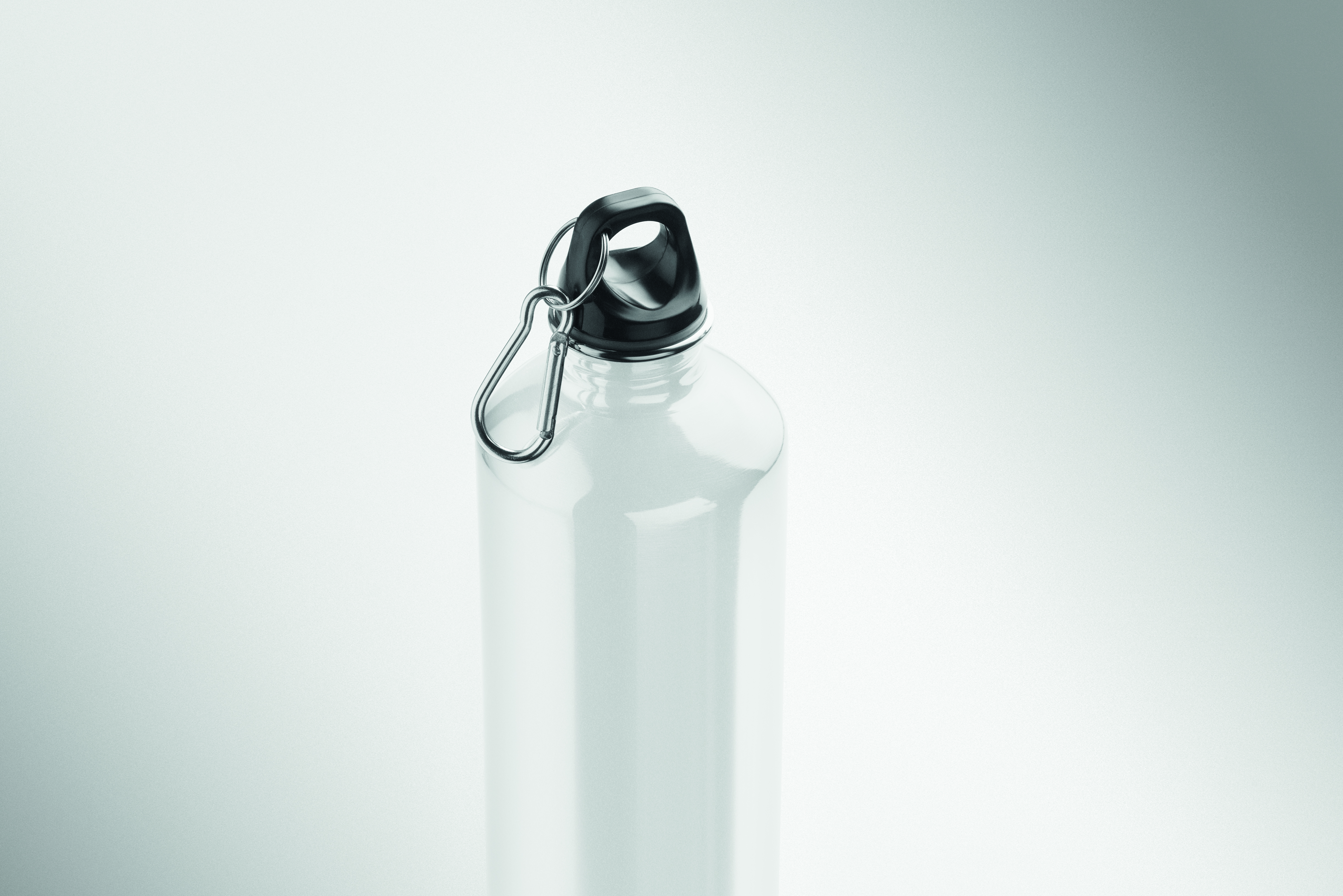 Butelka z pojedynczą ścianką (90% stal nierdzewna z recyklingu i 10% stal nierdzewna) z pokrywką z PP i karabińczykiem. Pojemność 1000 ml. Butelka jednościenna, może występować przenoszenie ciepła.