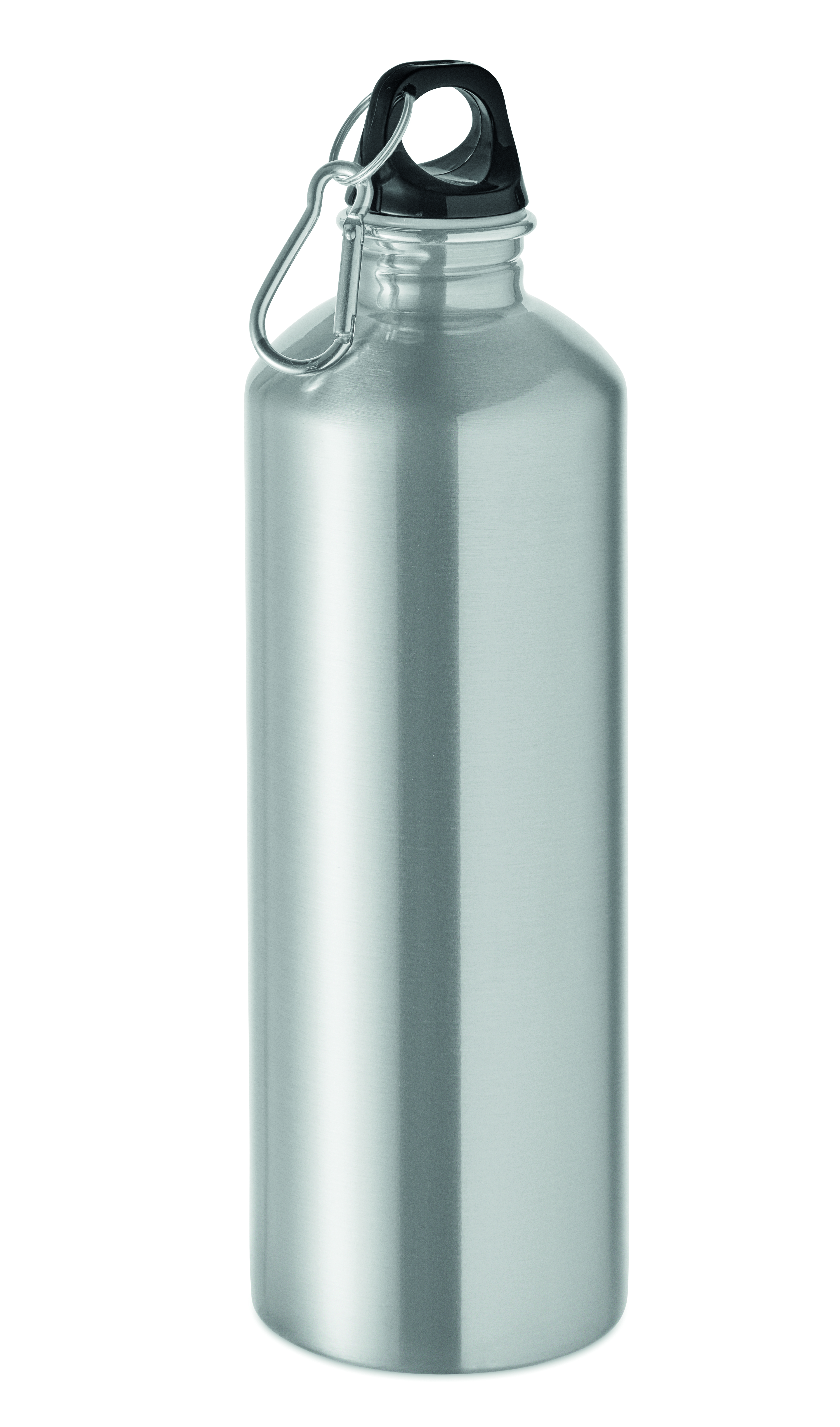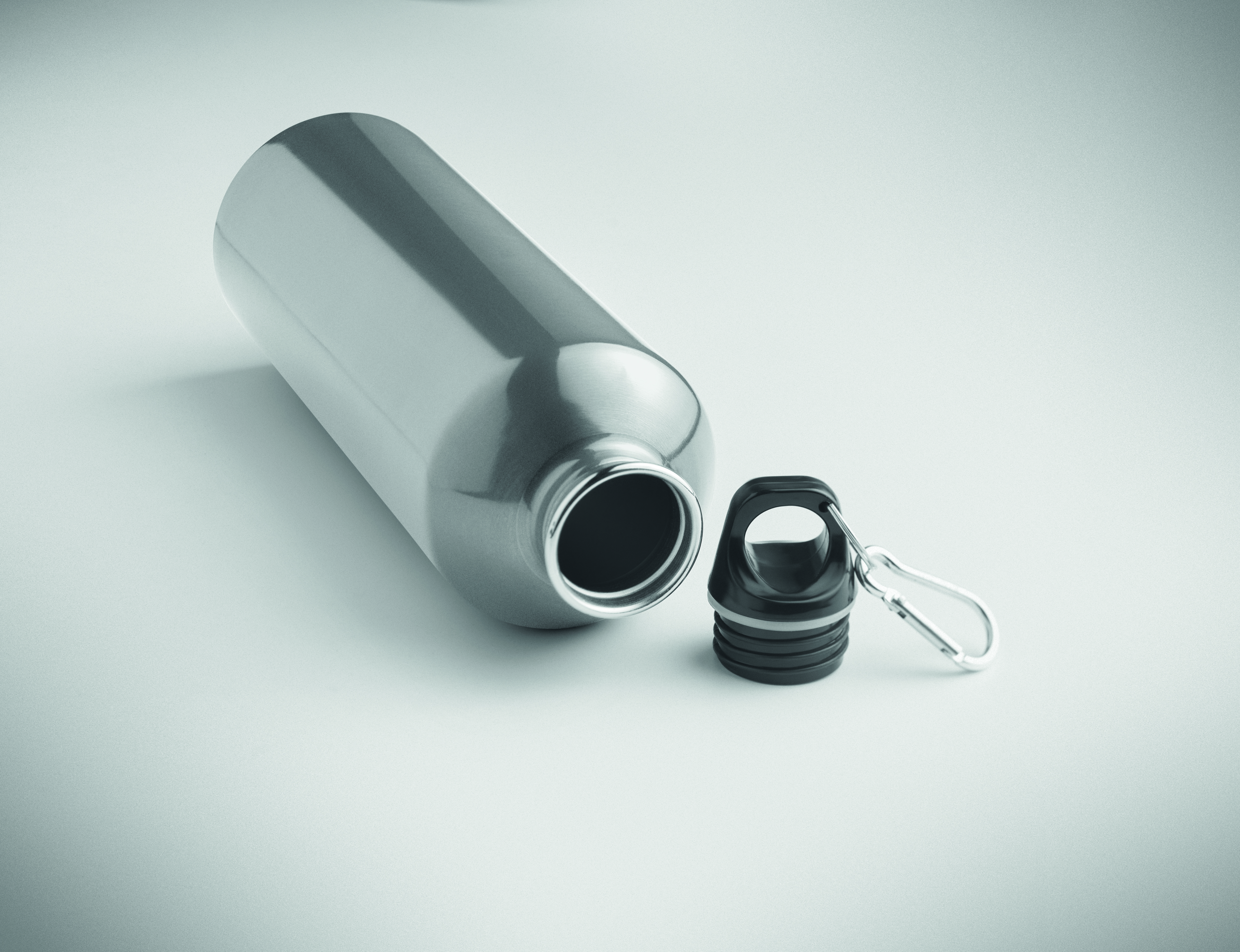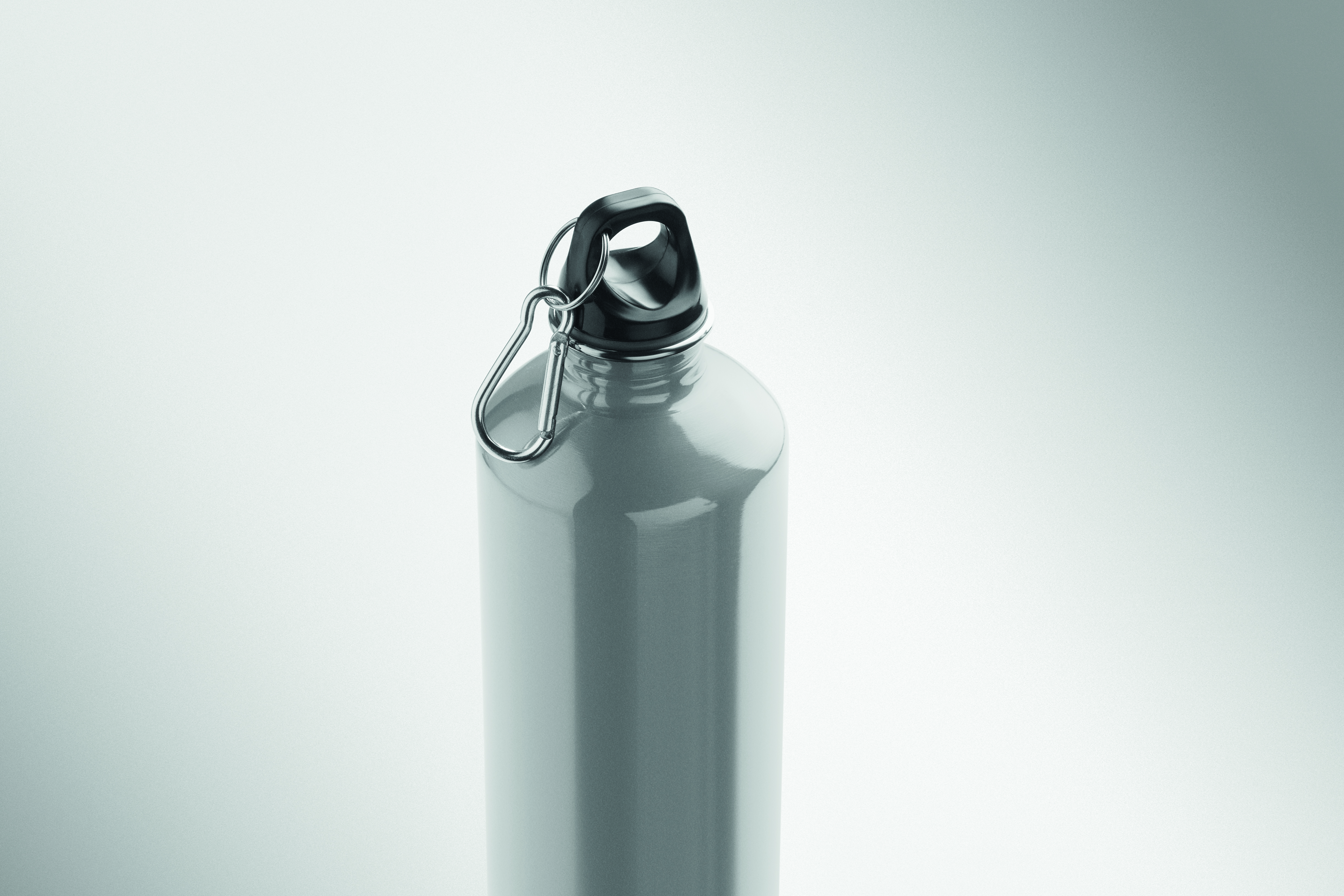 Butelka z pojedynczą ścianką (90% stal nierdzewna z recyklingu i 10% stal nierdzewna) z pokrywką z PP i karabińczykiem. Pojemność 1000 ml. Butelka jednościenna, może występować przenoszenie ciepła.