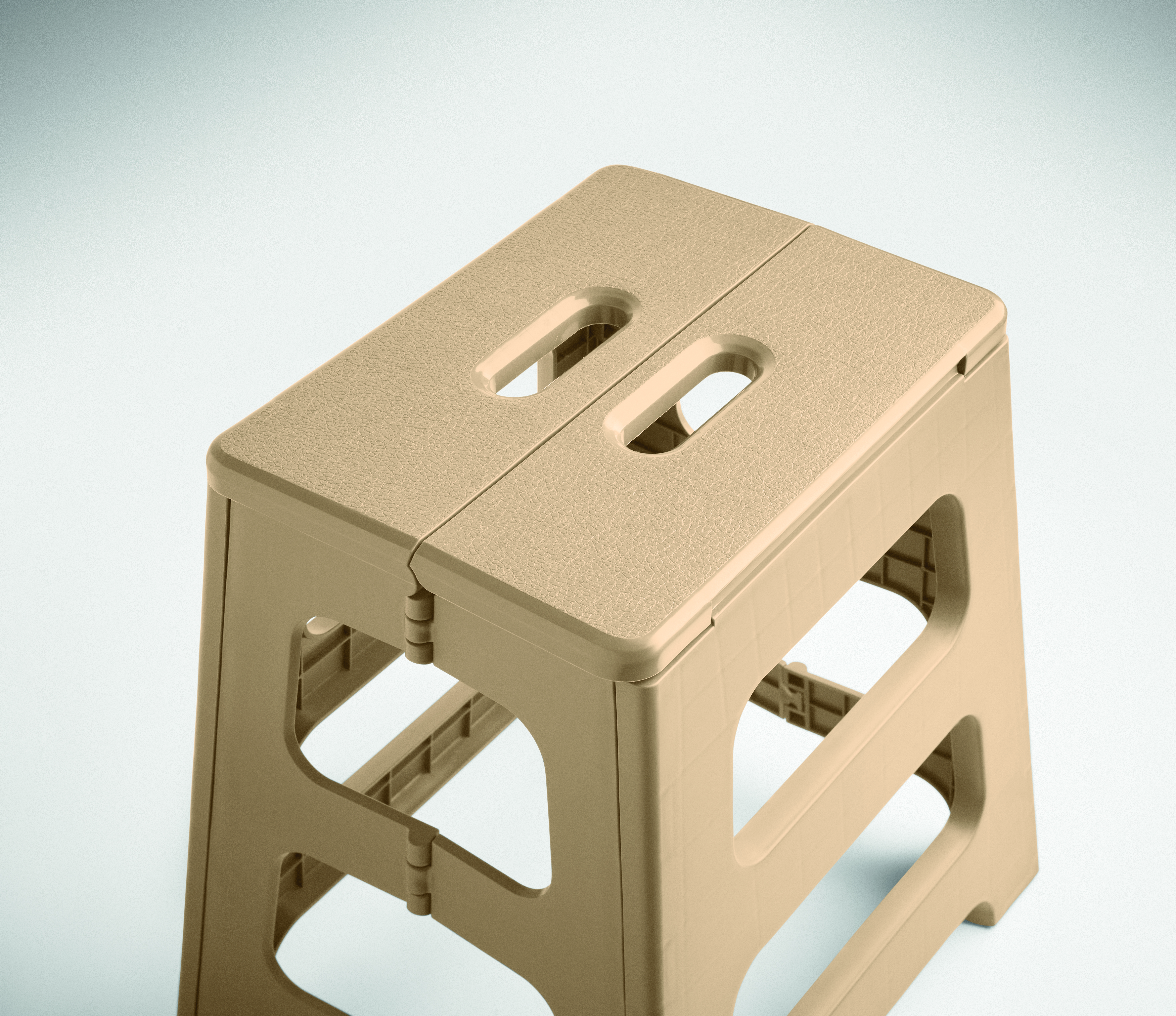 Przenośny, składany stołek wykonany z tworzywa PP z antypoślizgową powierzchnią. Wytrzymuje obciążenie do 120 kg.