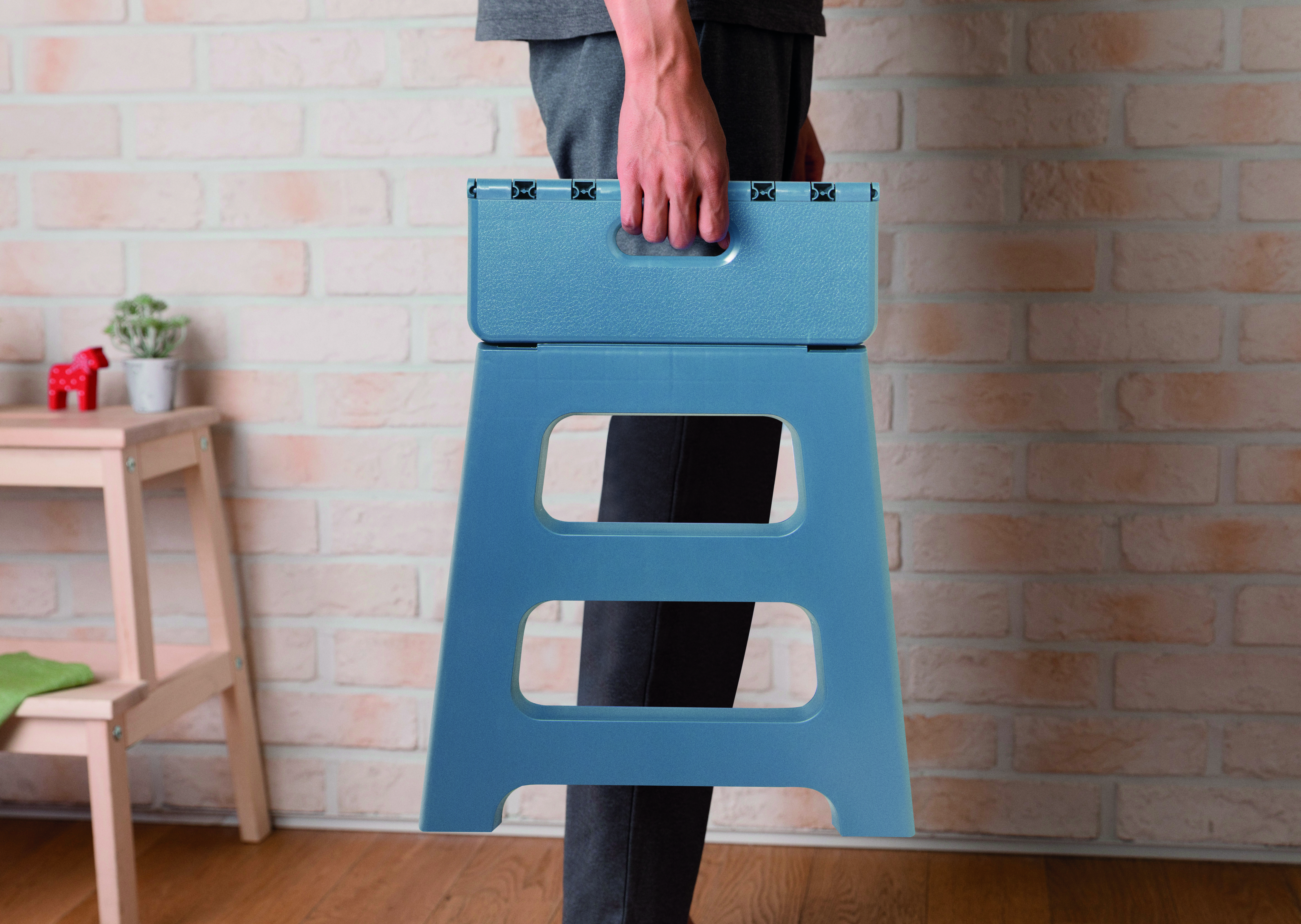 Przenośny, składany stołek wykonany z tworzywa PP z antypoślizgową powierzchnią. Wytrzymuje obciążenie do 120 kg.