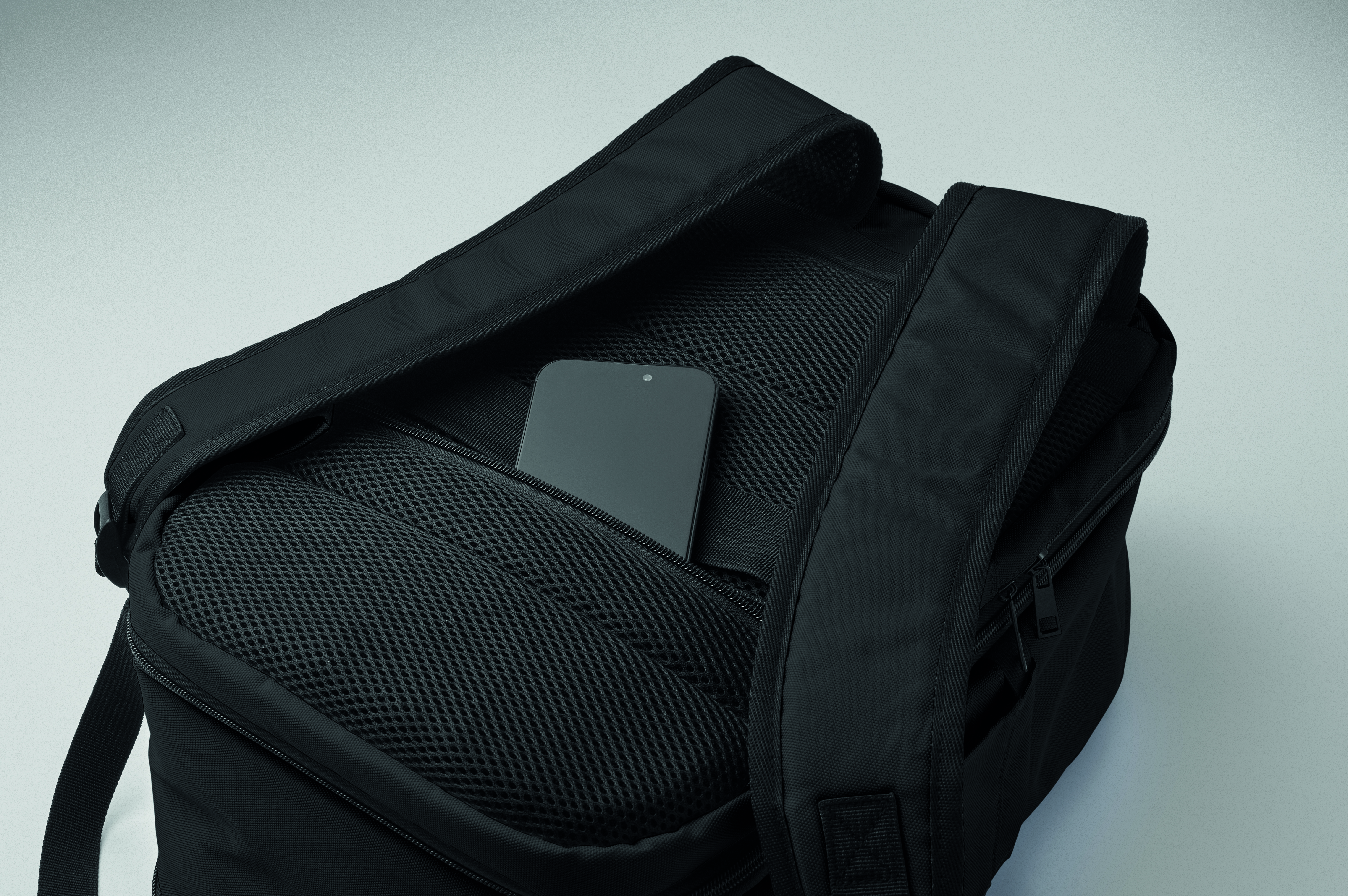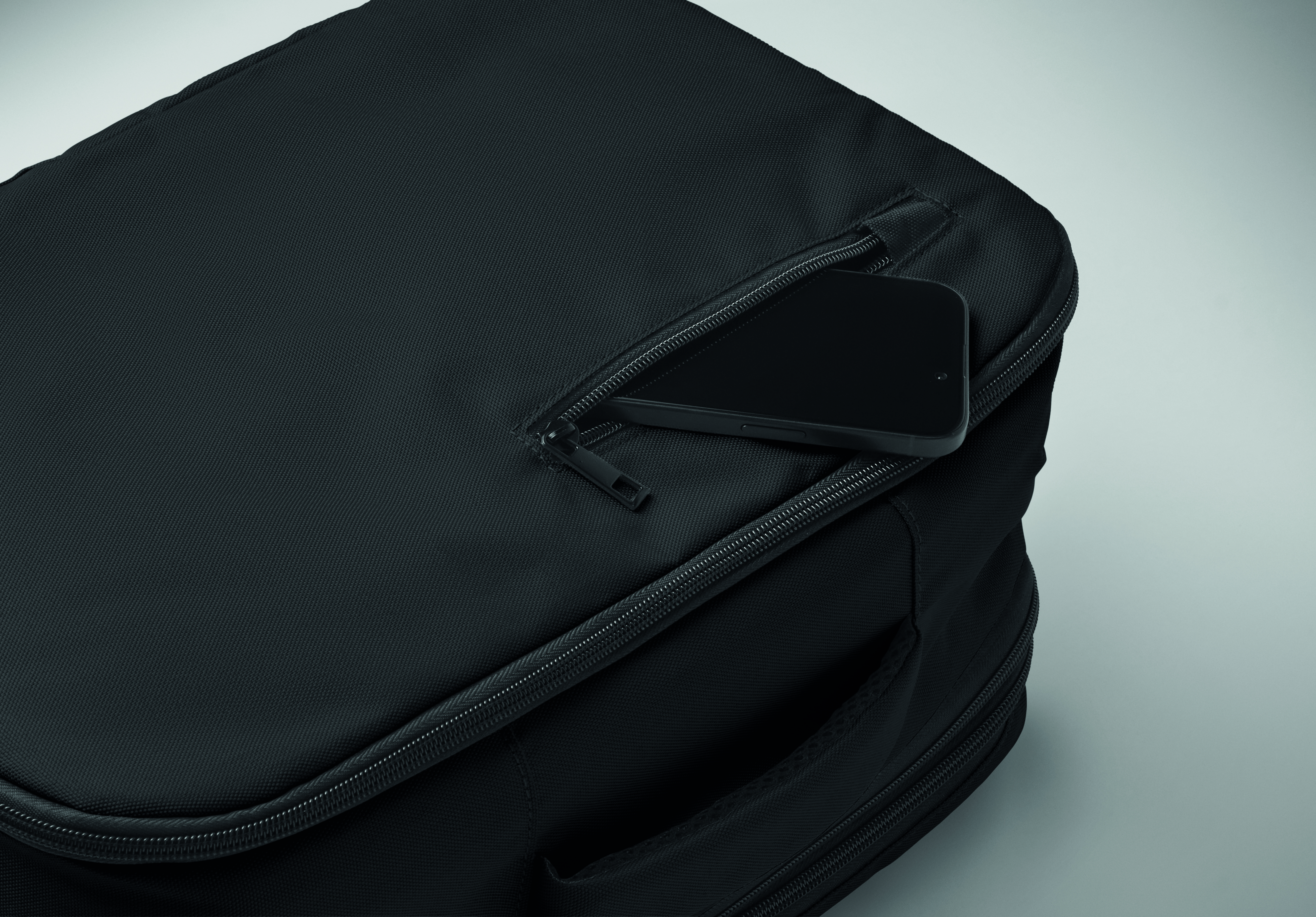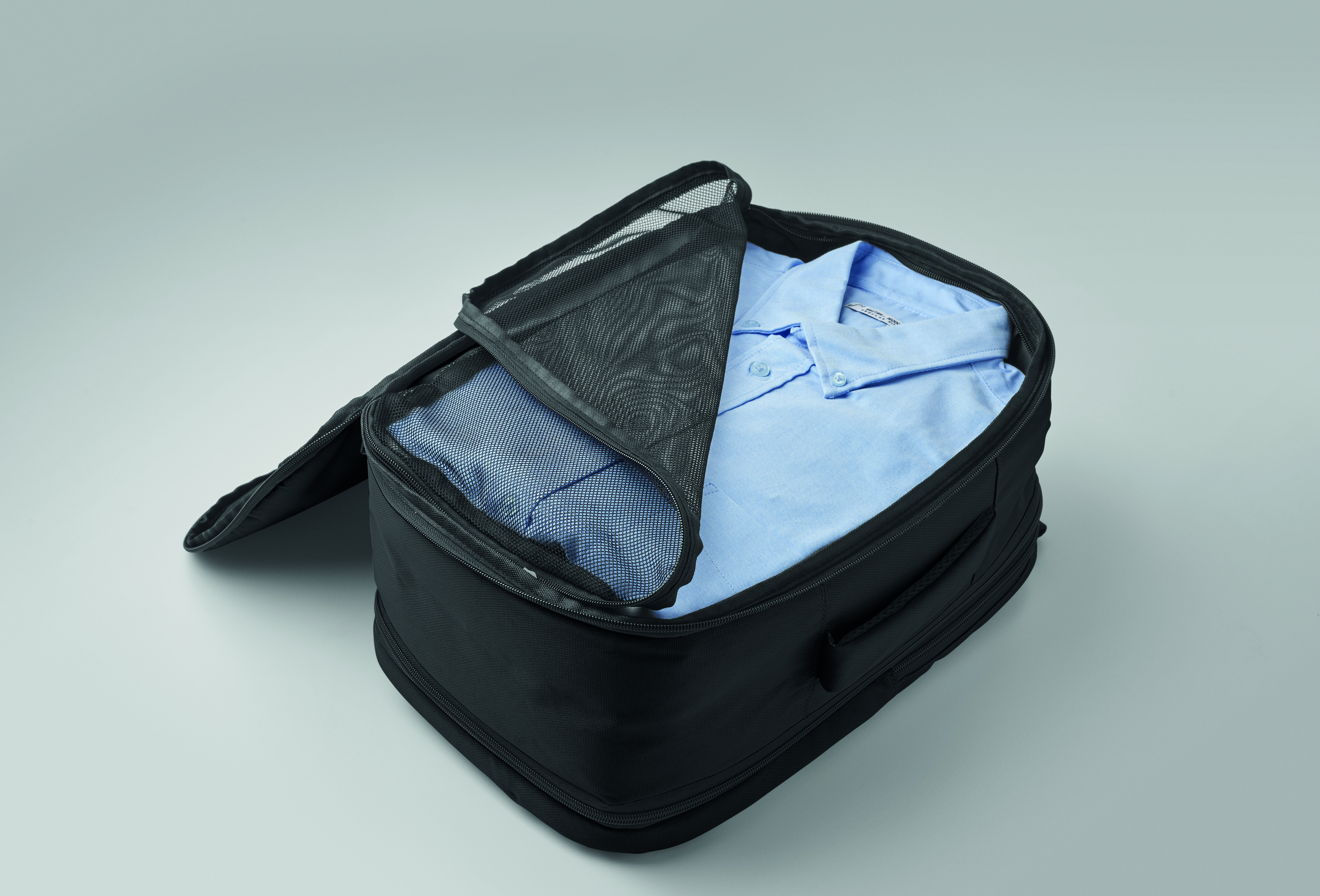 Rozkładany plecak kabinowy wykonany z poliestru 600D RPET z otwarciem 180°. Posiada główną komorę z dwiema otwartymi sekcjami, podział z siatki, wyściełaną kieszeń na laptopa 15'' i pasek na bagaż.