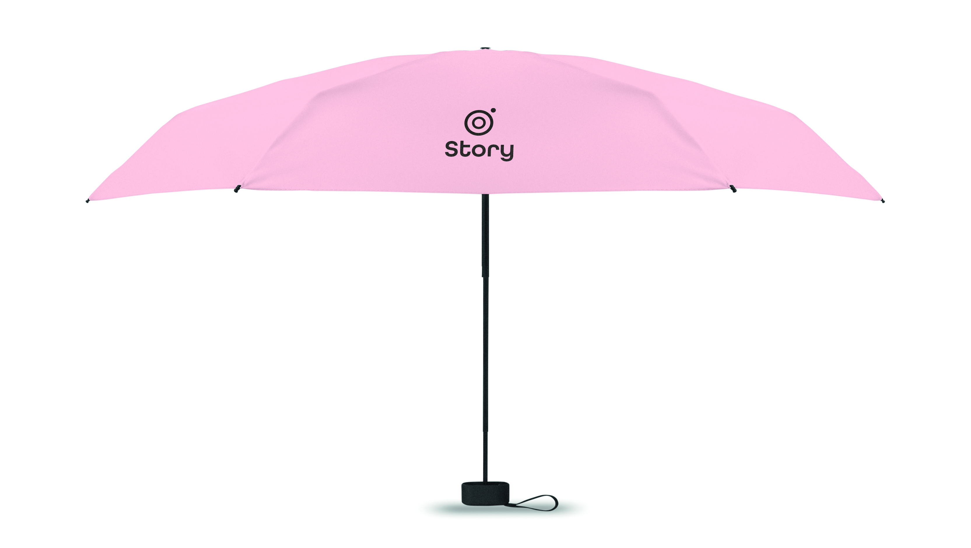 19-calowy, 5-częściowy parasol ręczny wykonany z tkaniny pongee 190T z dopasowanym etui. Posiada metalową i szklaną ramę odporną na wiatr, czarną gumowaną rączkę z paskiem na nadgarstek oraz kompaktow