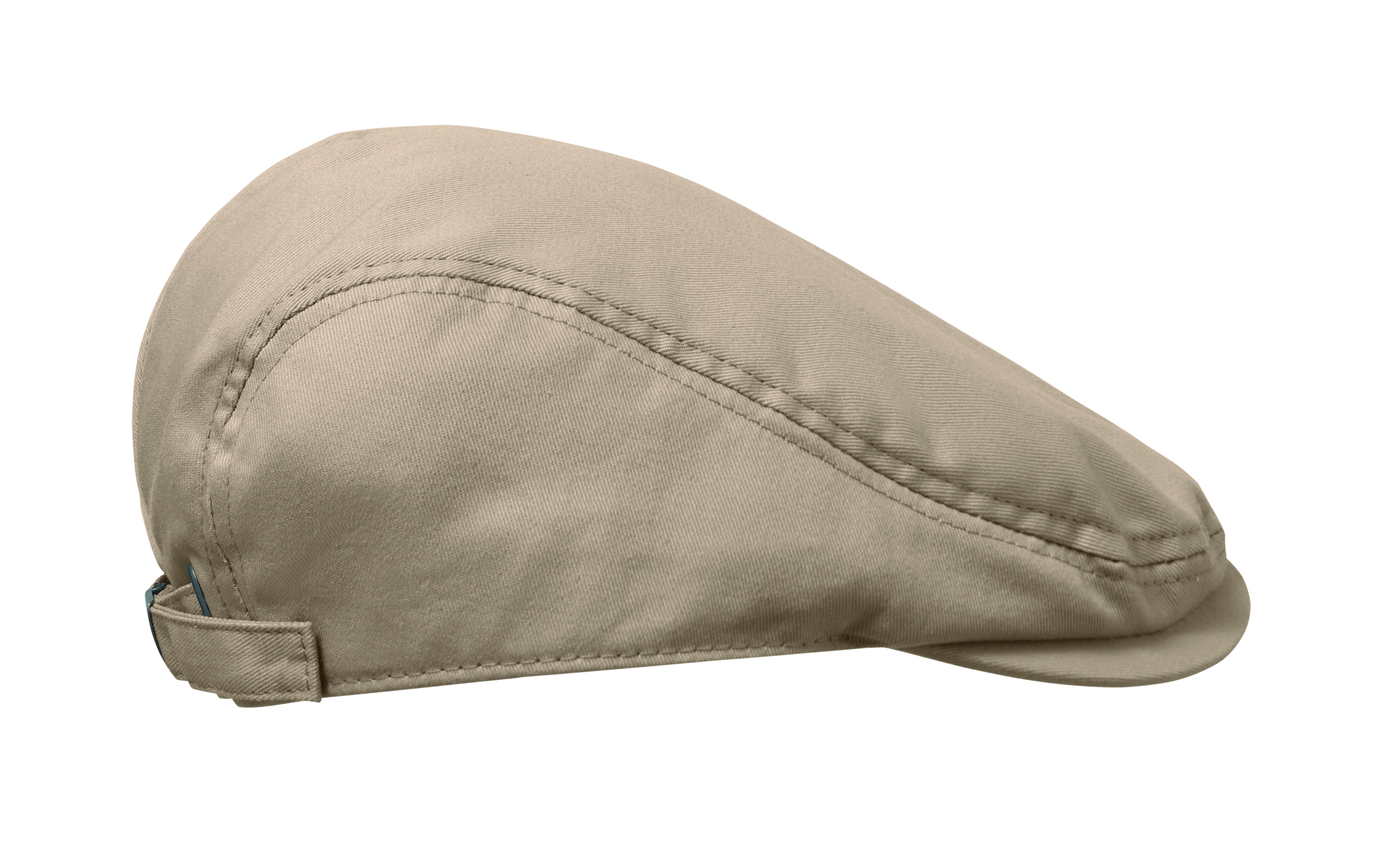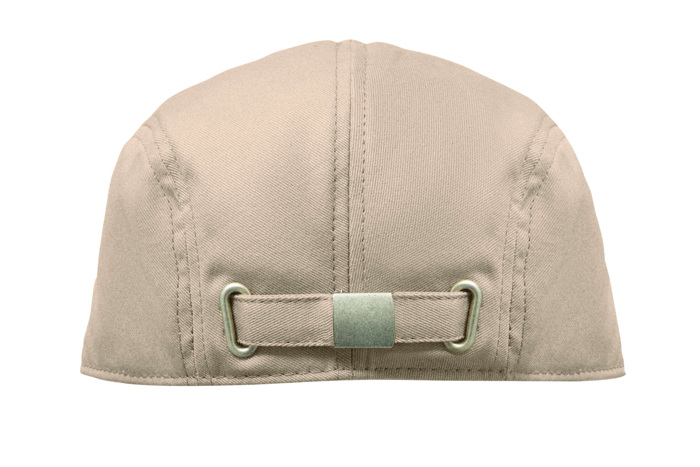 Płaska czapka typu newsboy z bawełny twill o gramaturze 235 gr/m² z zapięciem na metalową sprzączkę.