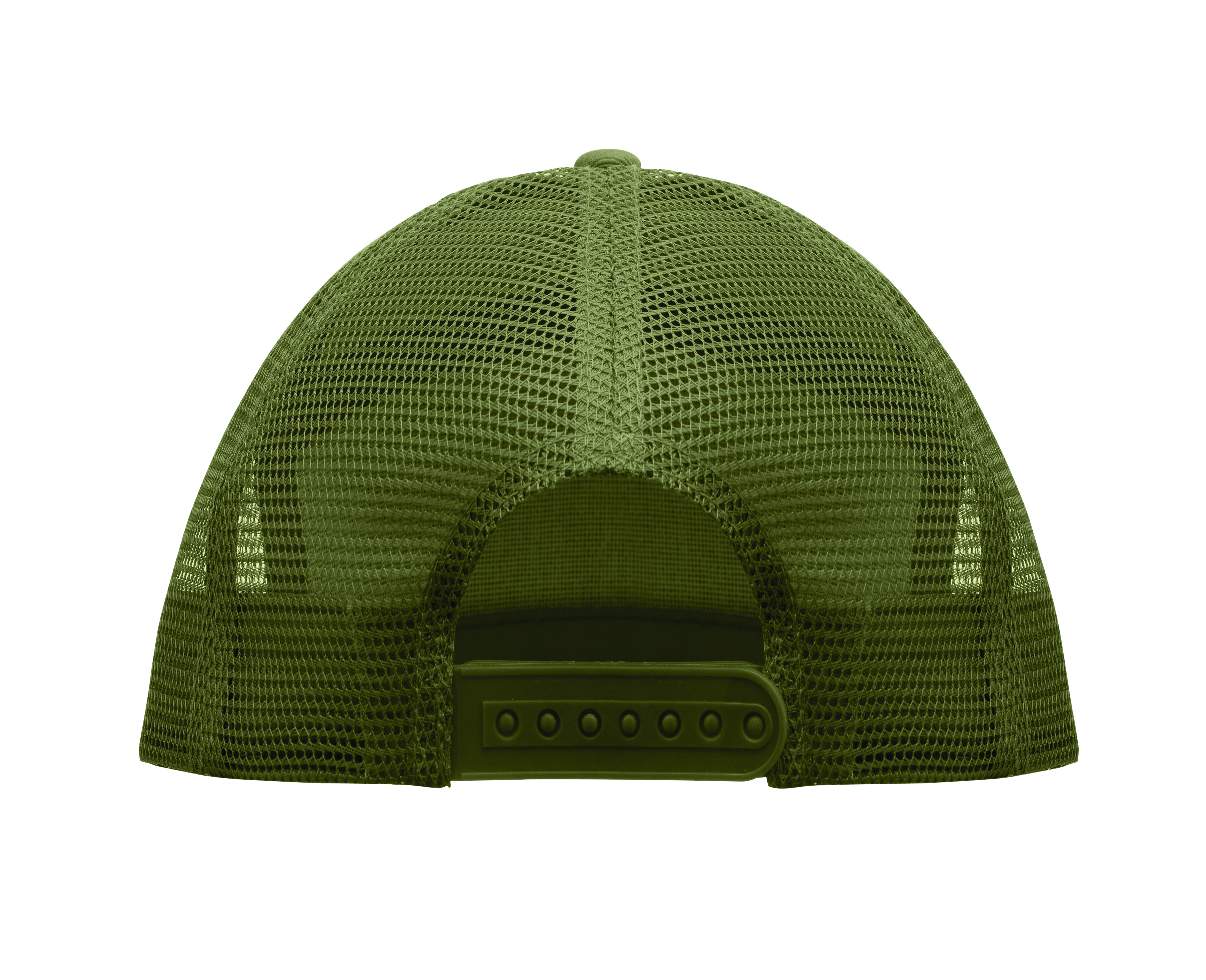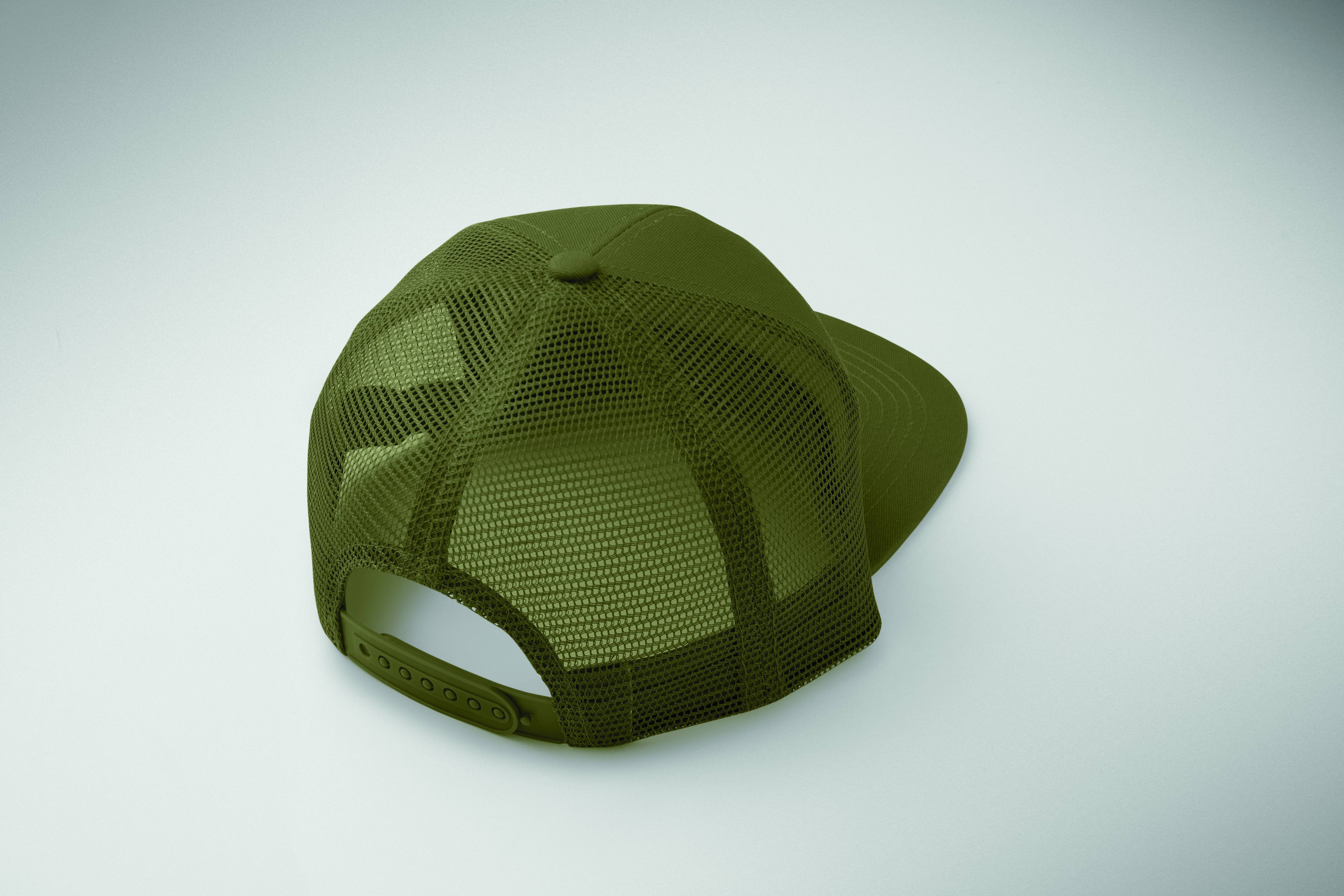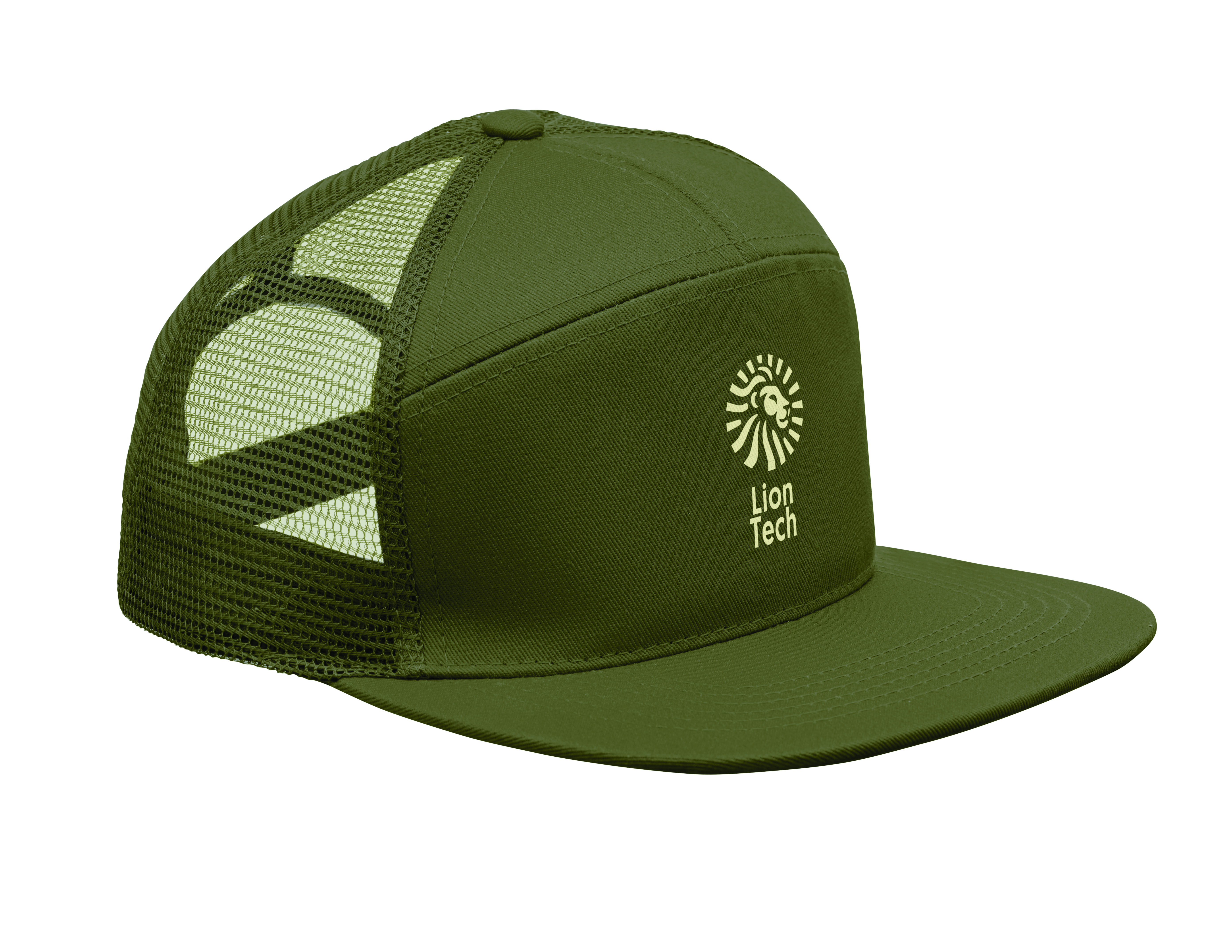 7-panelowa czapka z płaskim daszkiem z bawełnianego twillu z poliestrową siateczką z tyłu i plastikowym zapięciem.