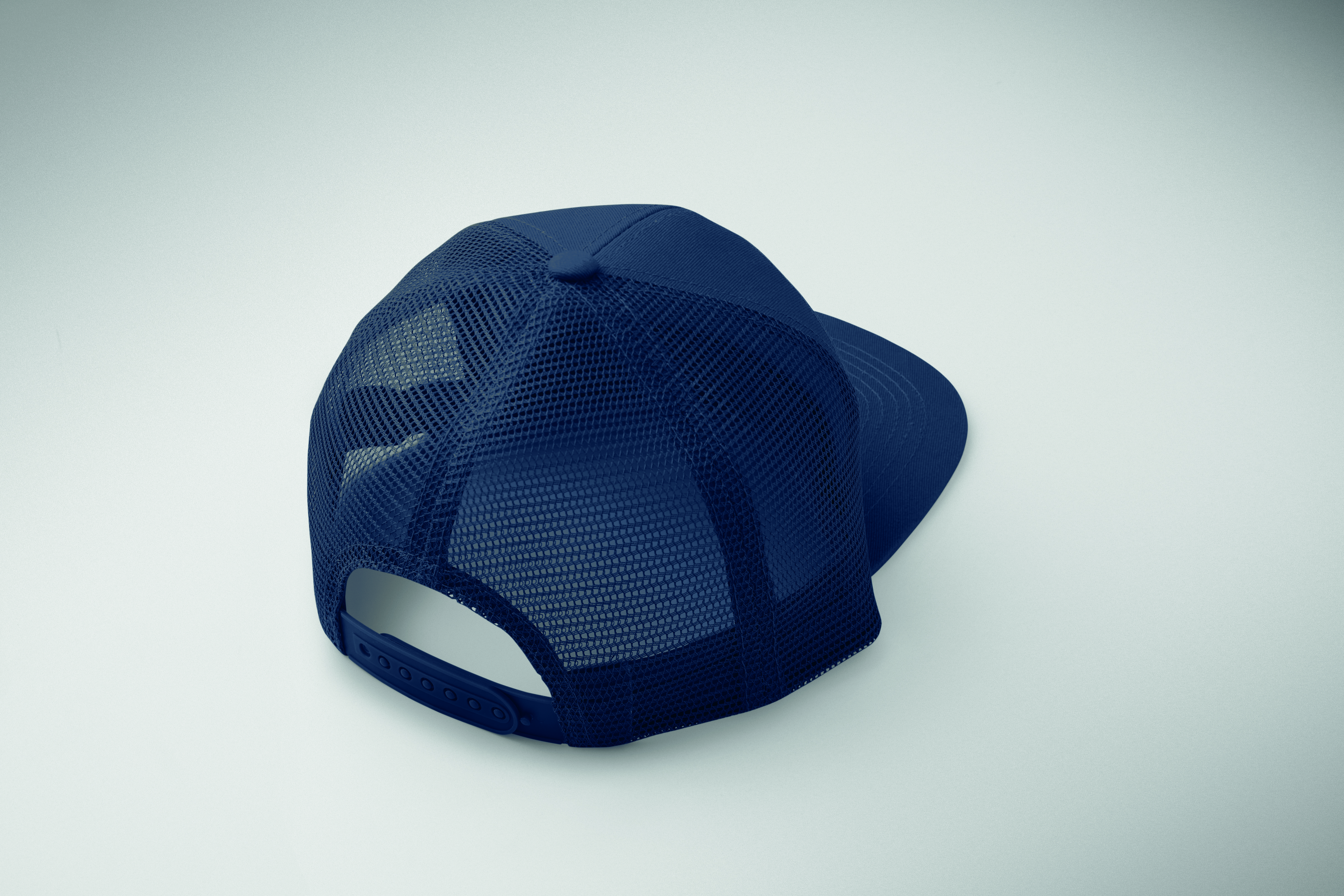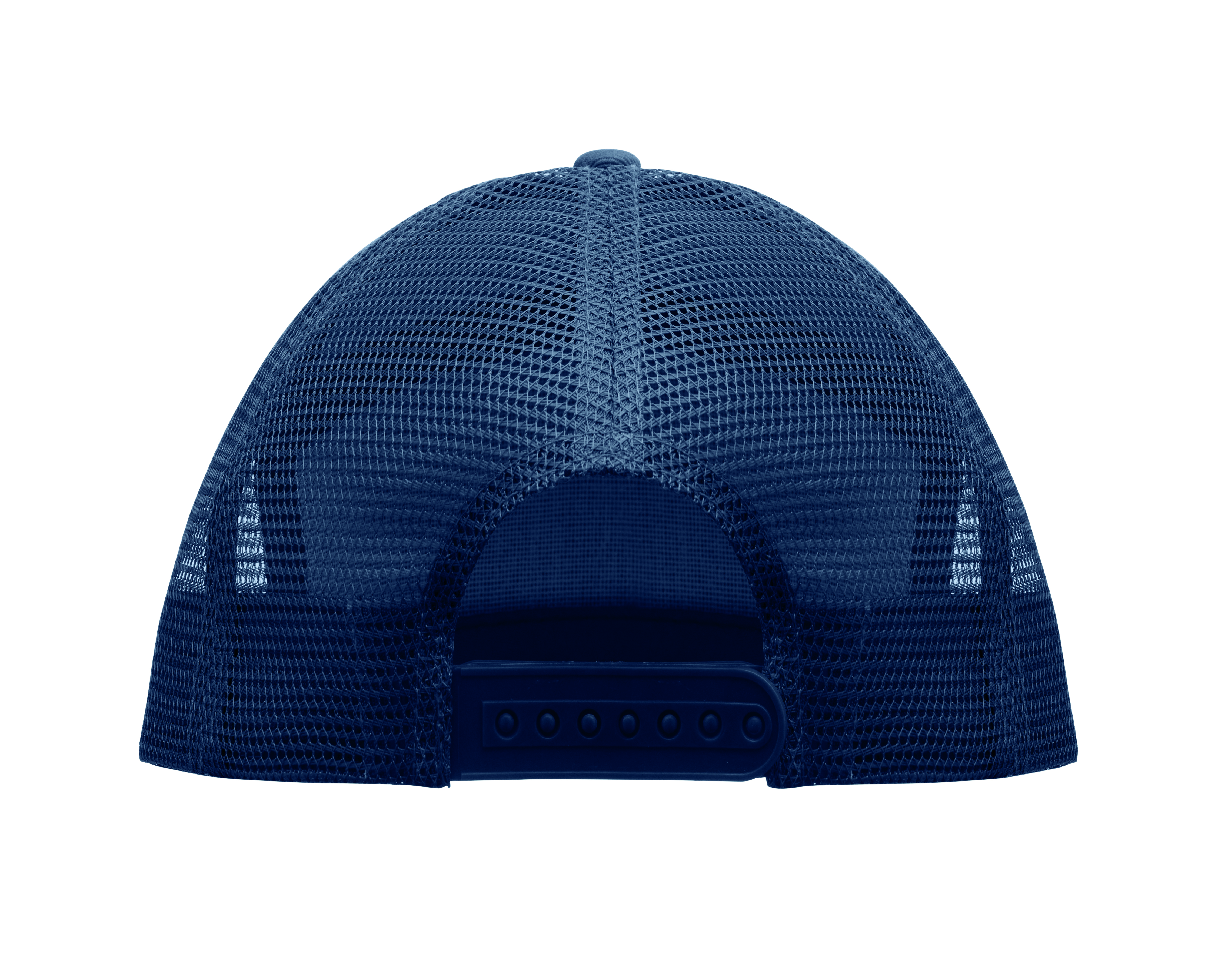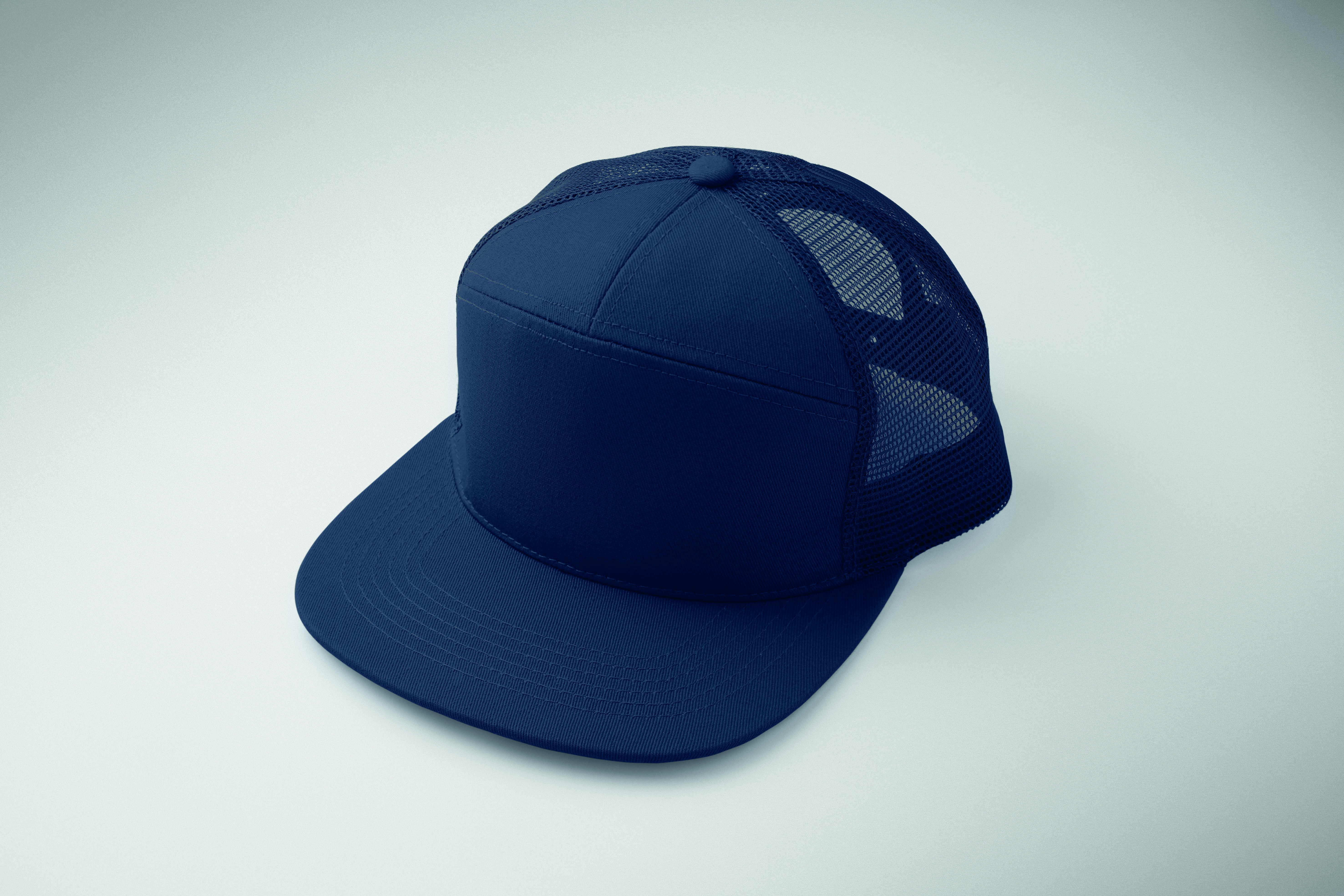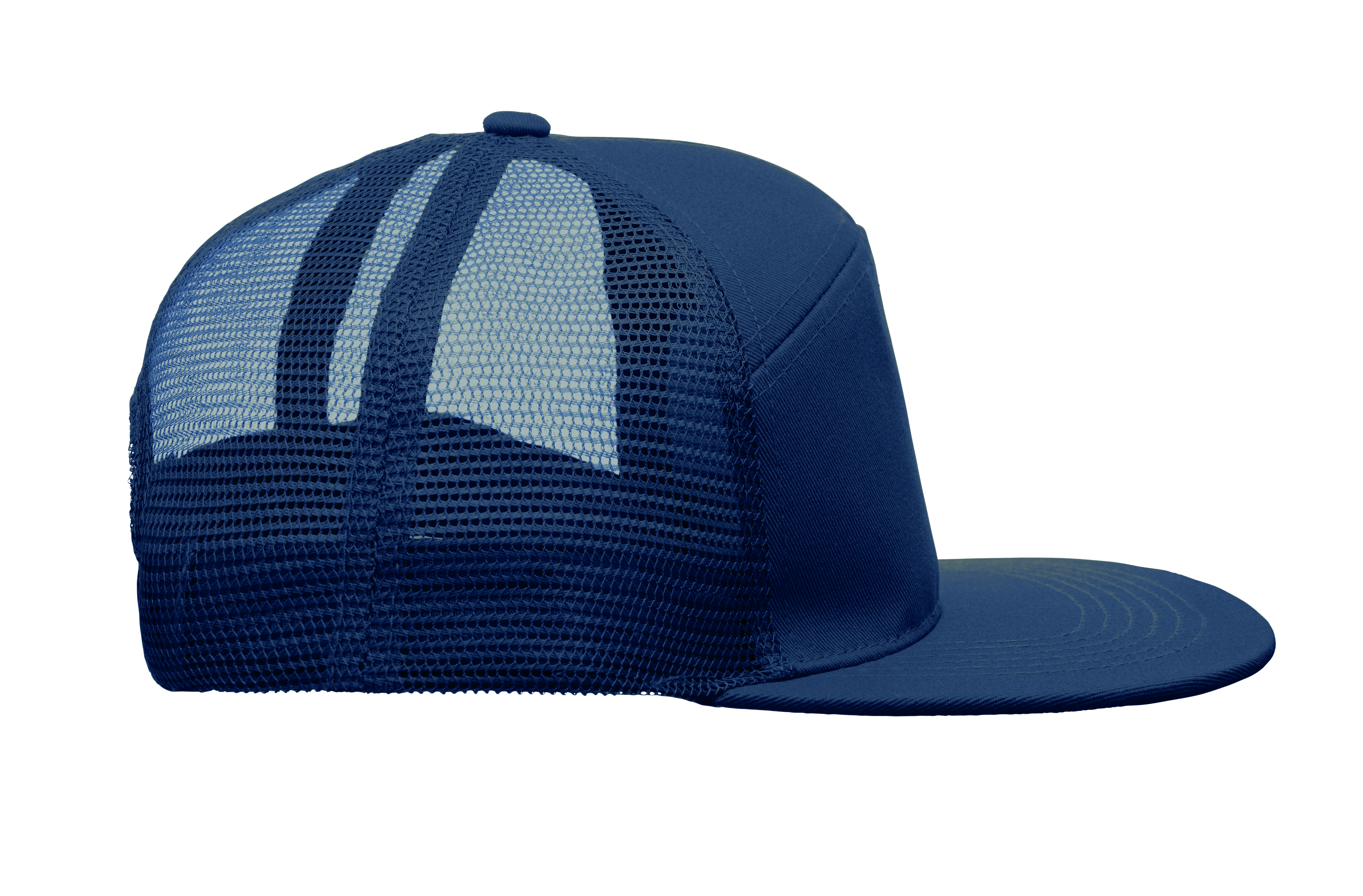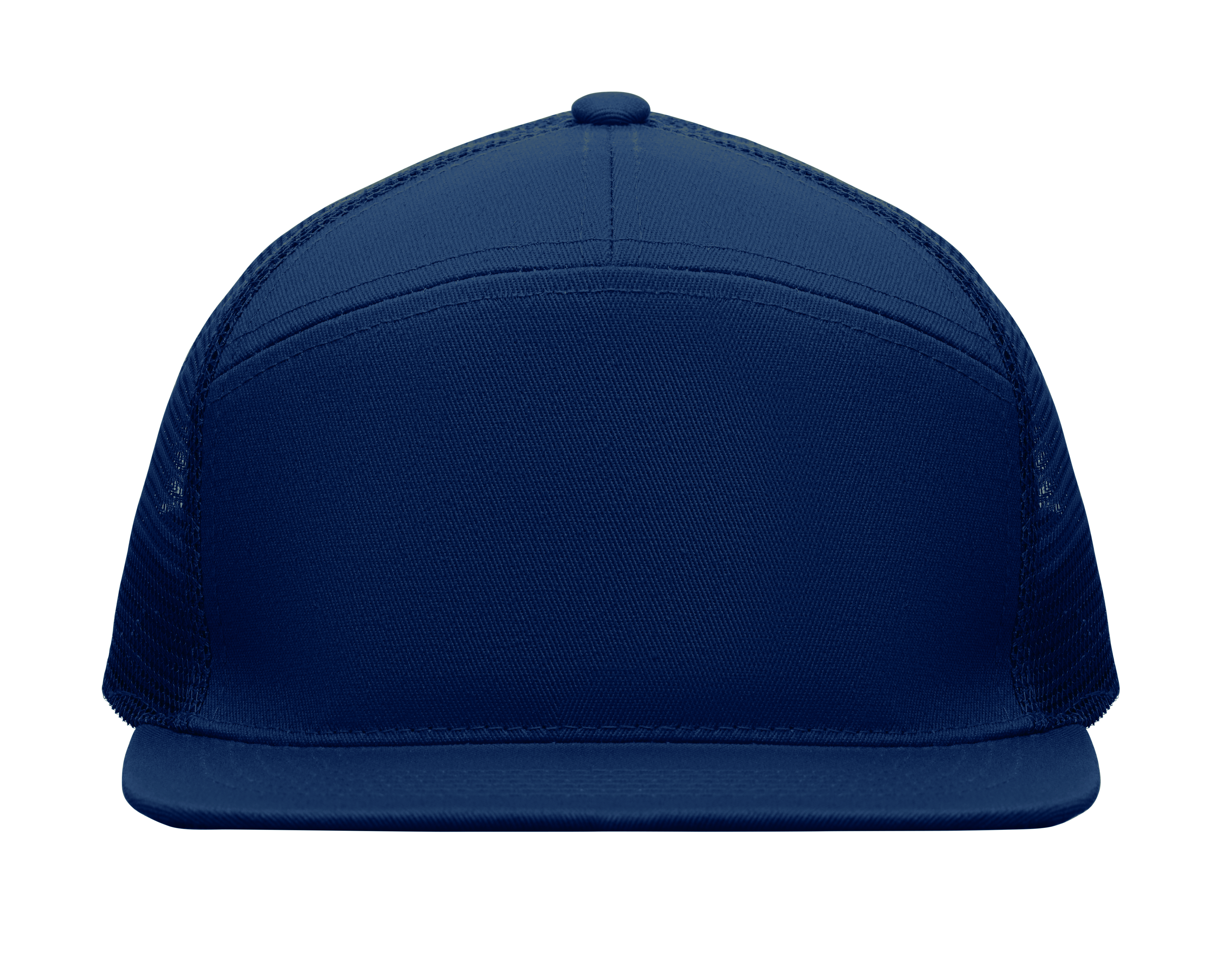 7-panelowa czapka z płaskim daszkiem z bawełnianego twillu z poliestrową siateczką z tyłu i plastikowym zapięciem.