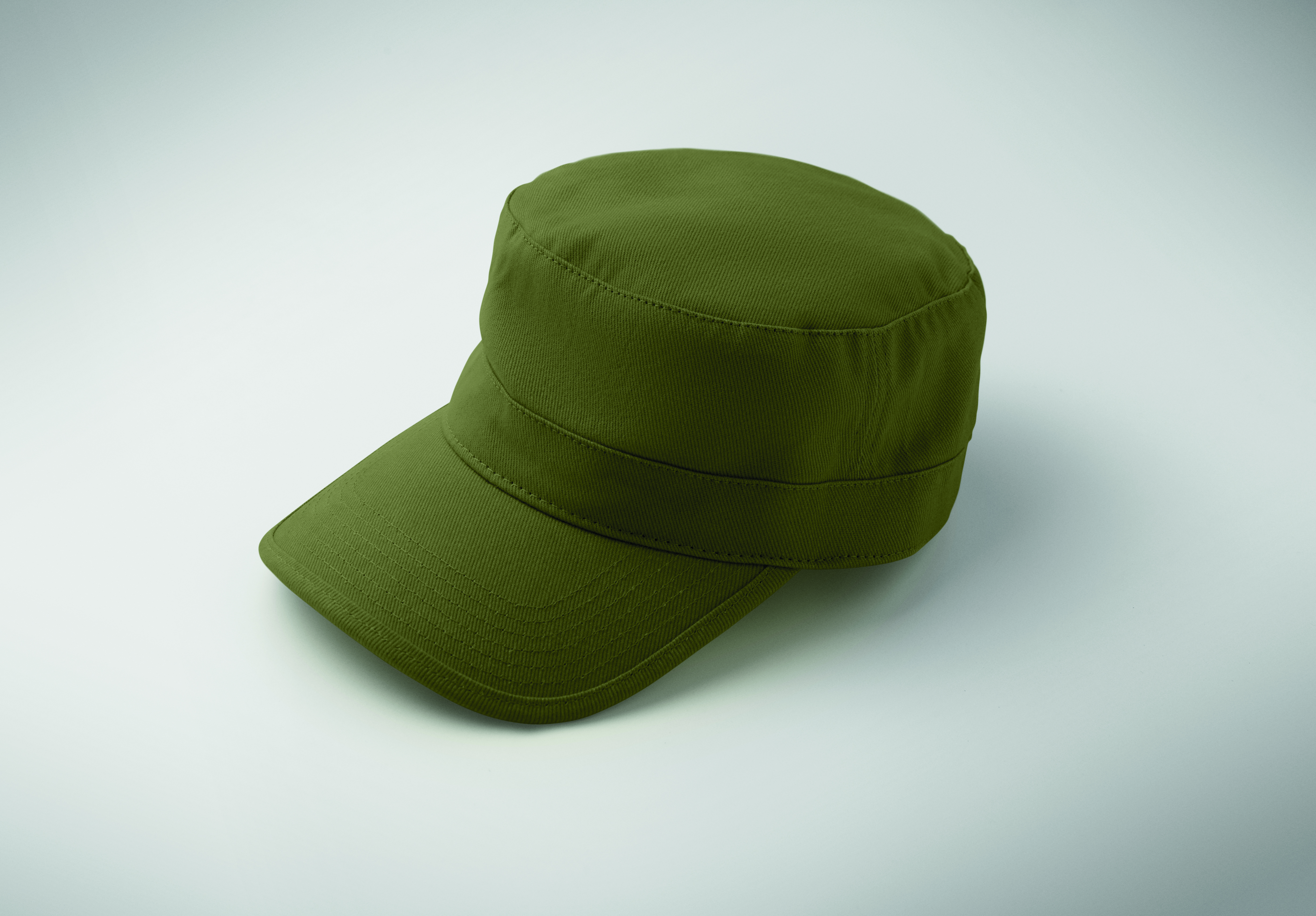 Wojskowa czapka ze szczotkowanej bawełny o gramaturze 260 g/m² z poliestrową opaską przeciwpotną i regulowanym zapięciem na rzep.
