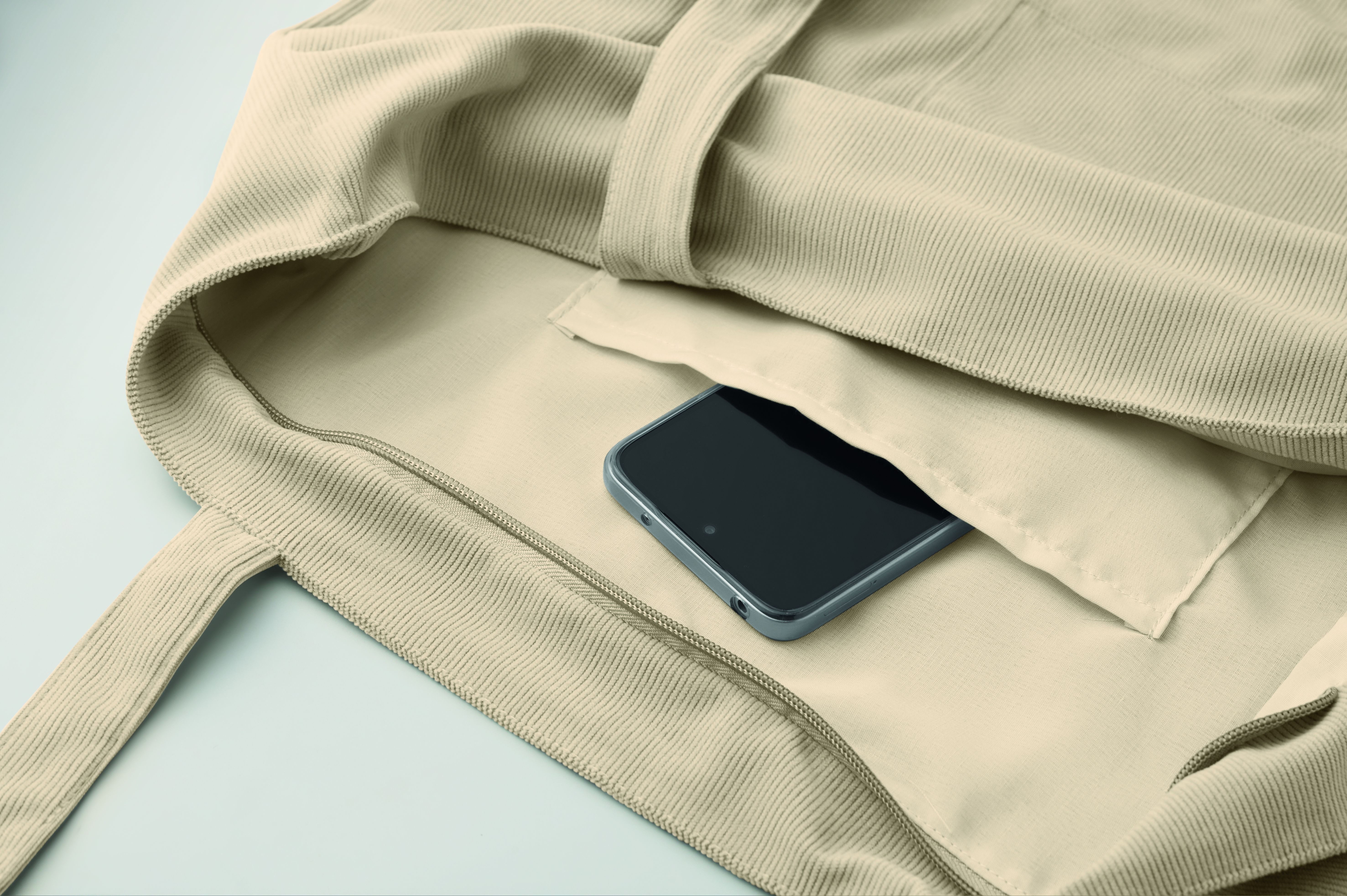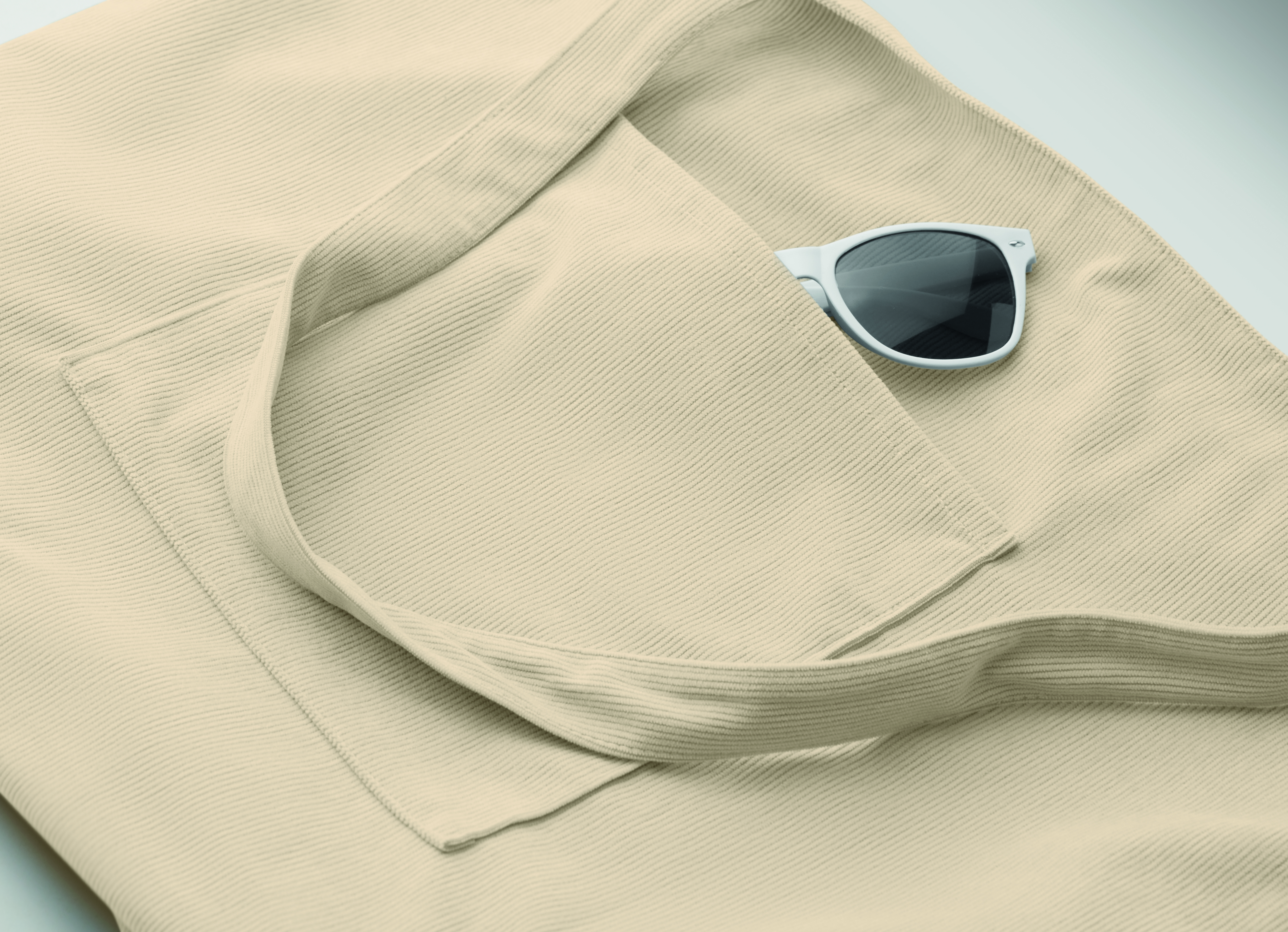 Duża torba na zakupy/plażę z poliestrowego sztruksu z górnym zamkiem błyskawicznym, otwieraną kieszenią z przodu i kieszenią wewnętrzną. 220 gr/m².