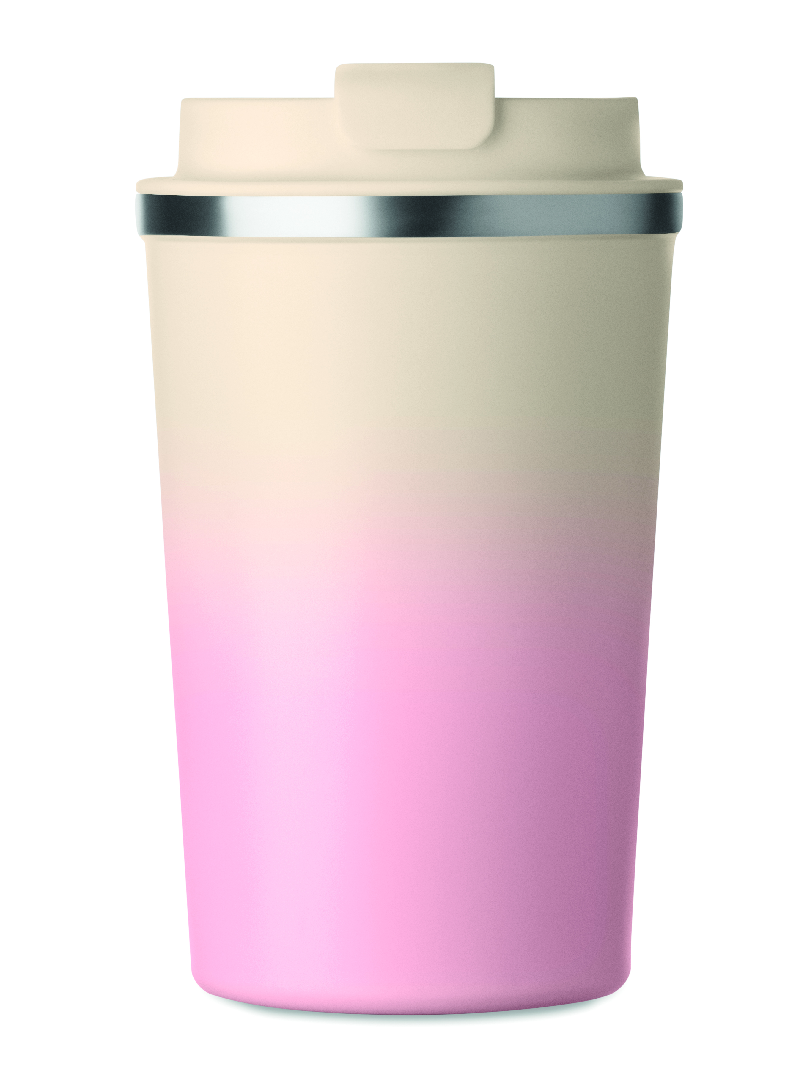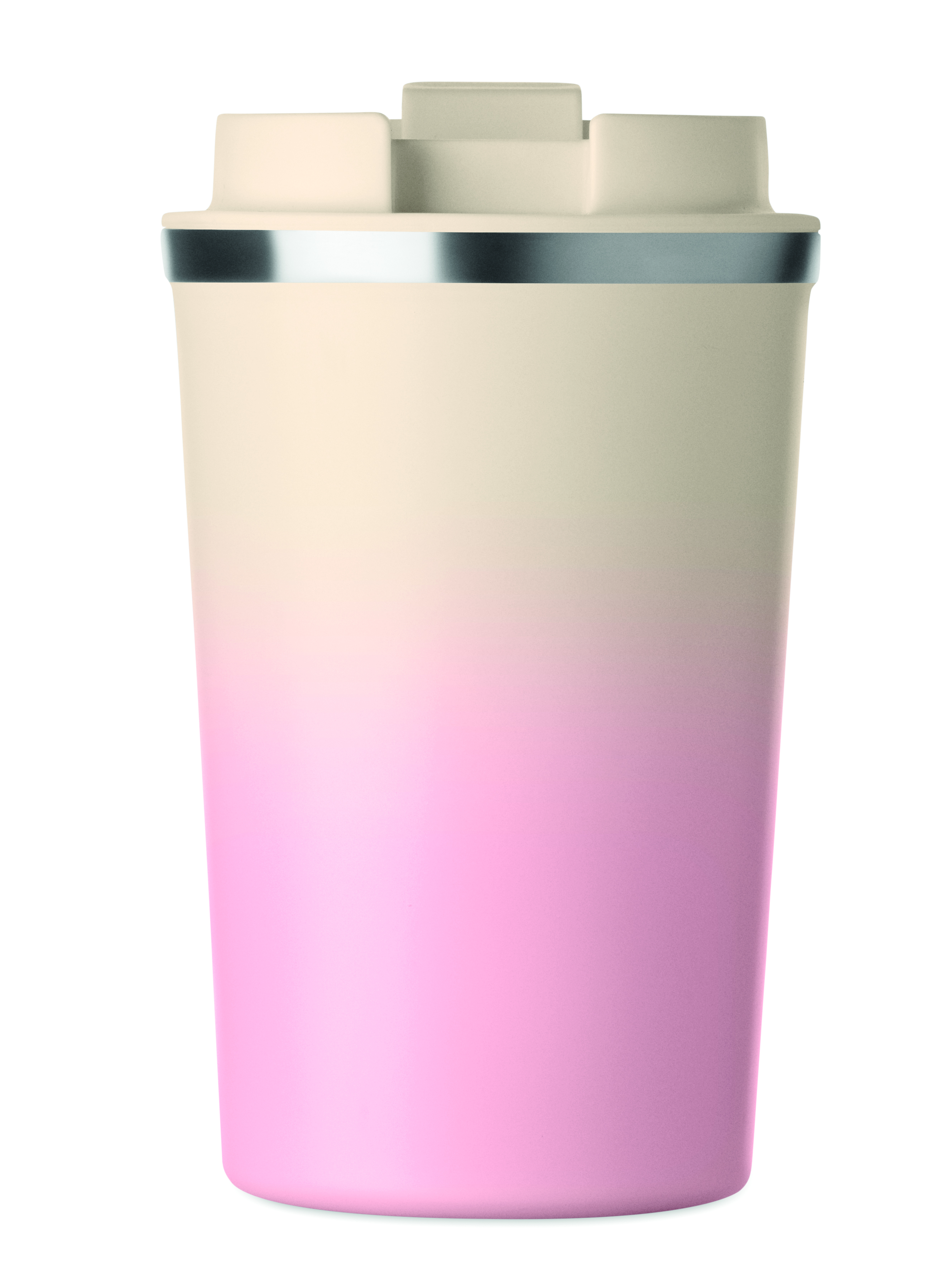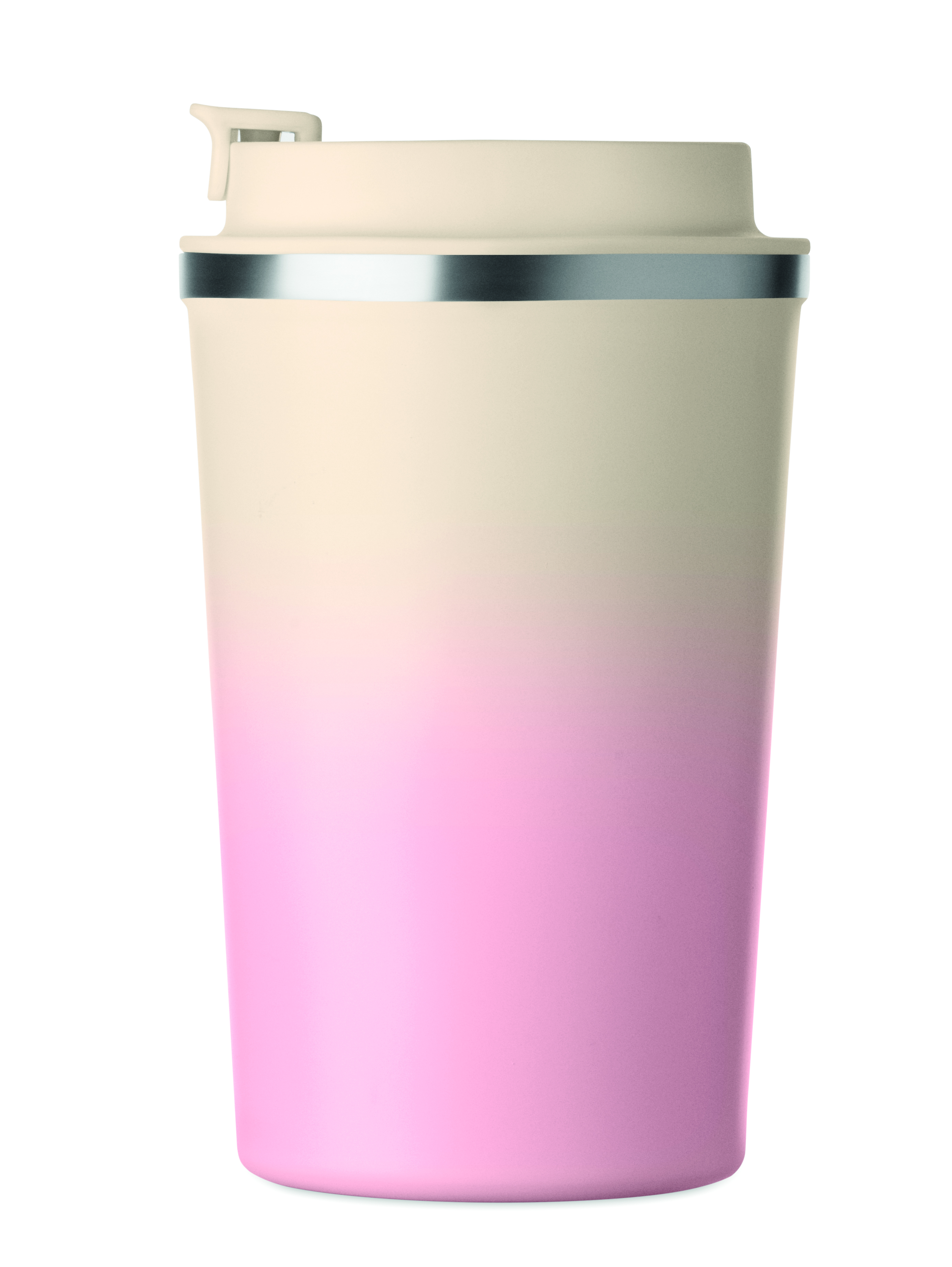 Kubek o podwójnych ściankach z recyklingowanej stali nierdzewnej (90% stali nierdzewnej z recyklingu i 10% stali nierdzewnej) z pokrywką z PP. Pojemność: 350 ml. Nie przecieka.