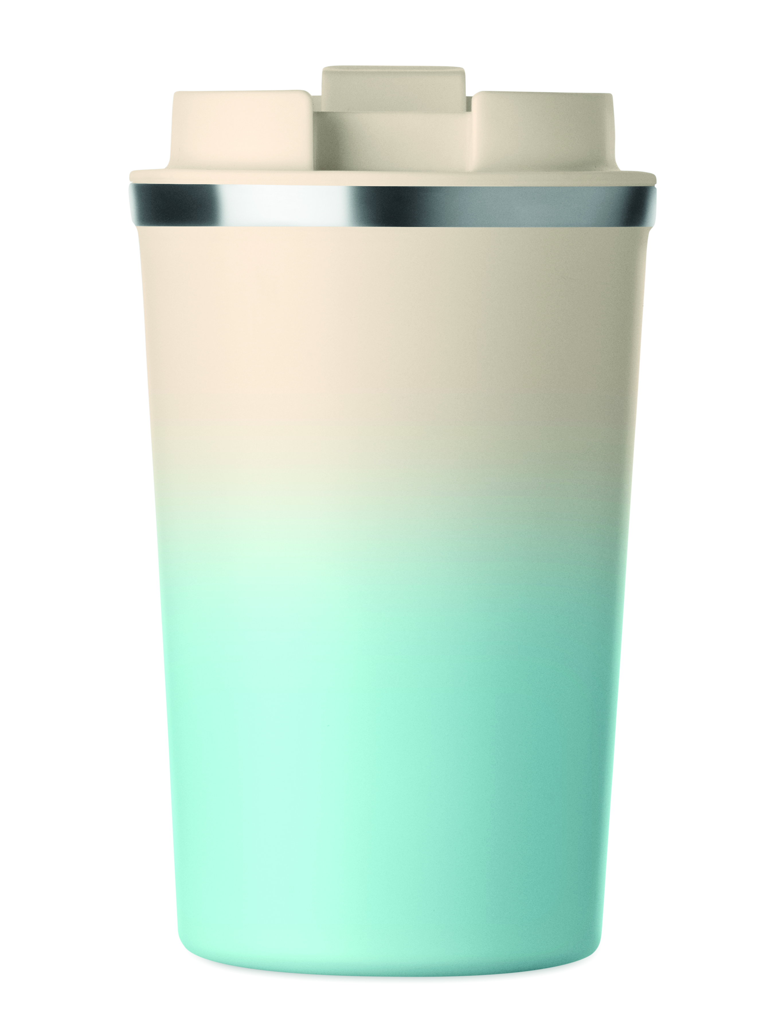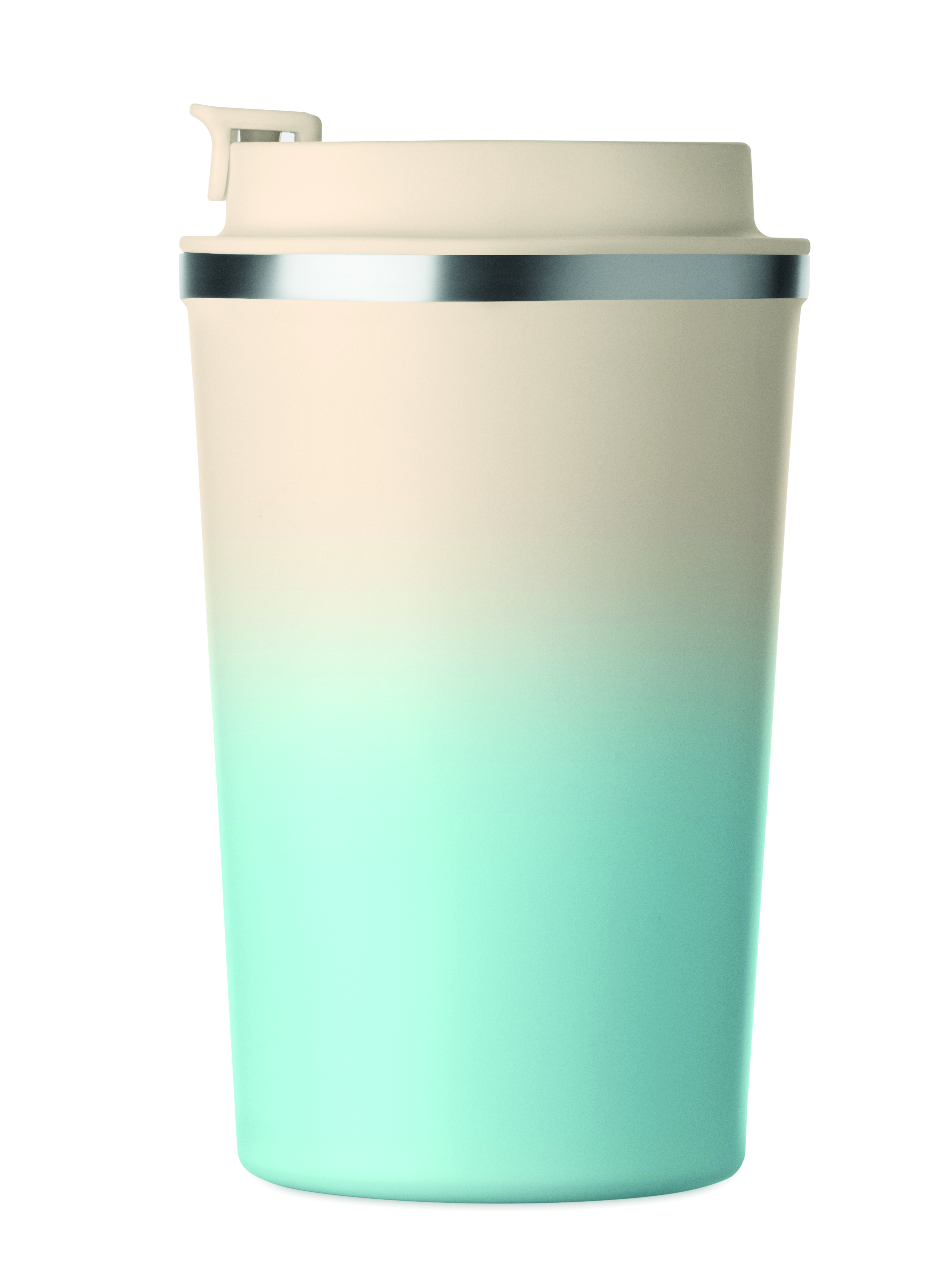 Kubek o podwójnych ściankach z recyklingowanej stali nierdzewnej (90% stali nierdzewnej z recyklingu i 10% stali nierdzewnej) z pokrywką z PP. Pojemność: 350 ml. Nie przecieka.