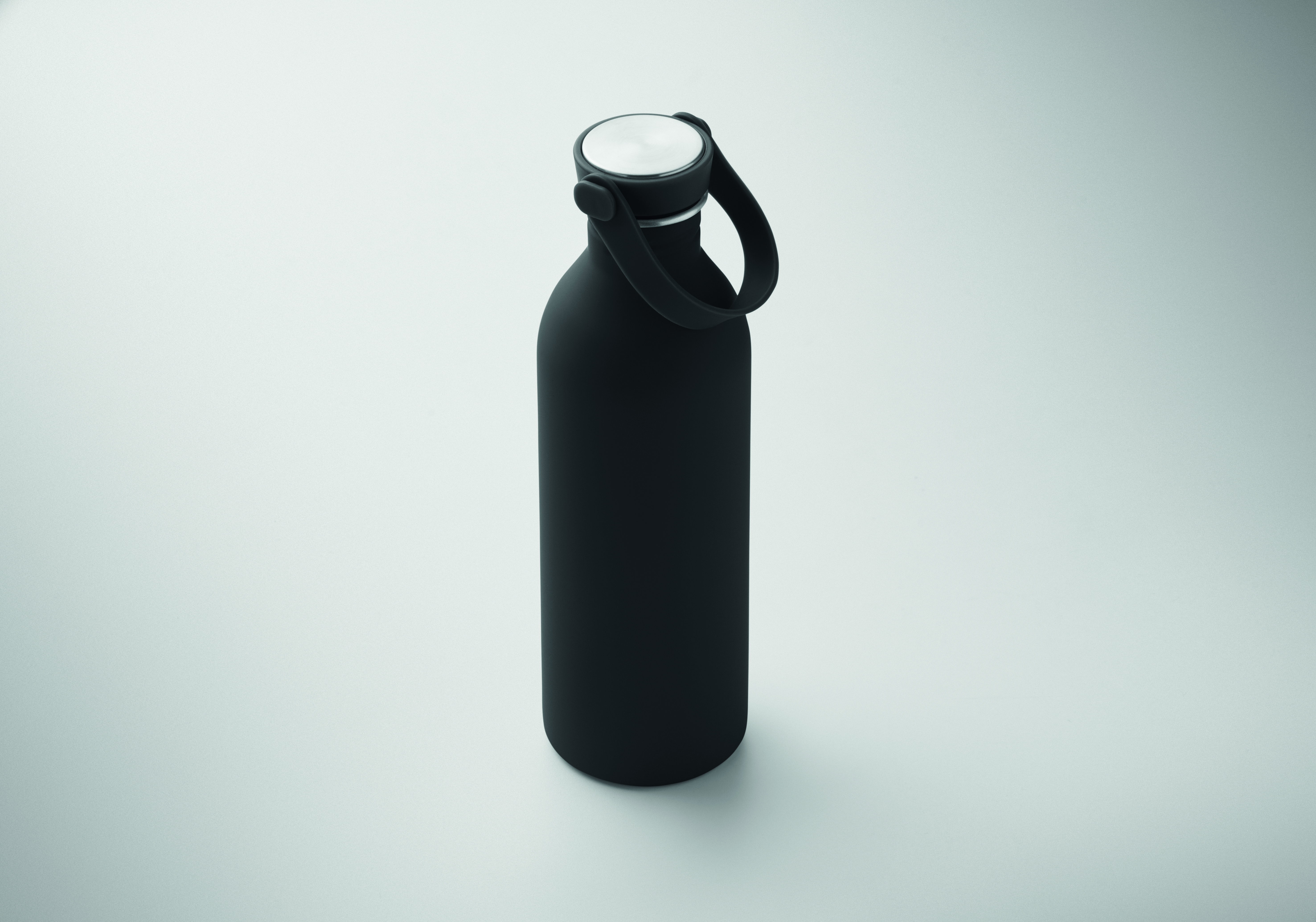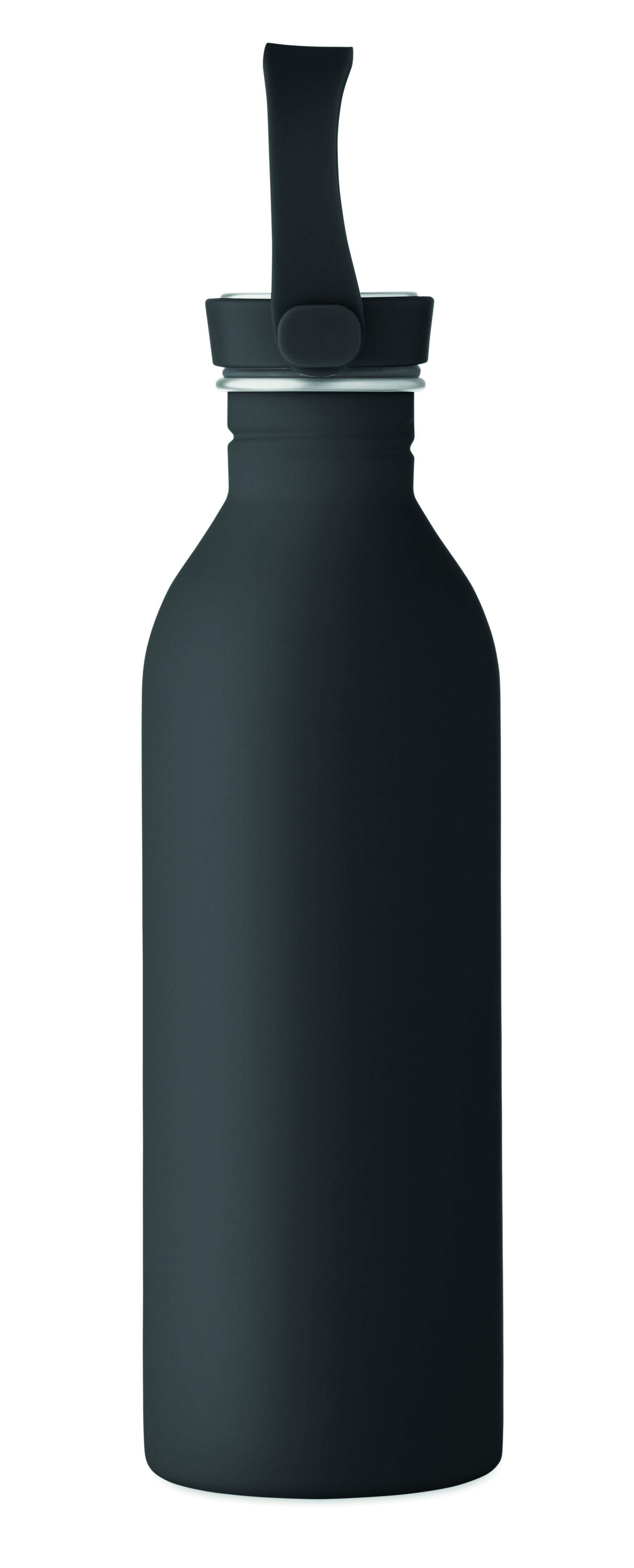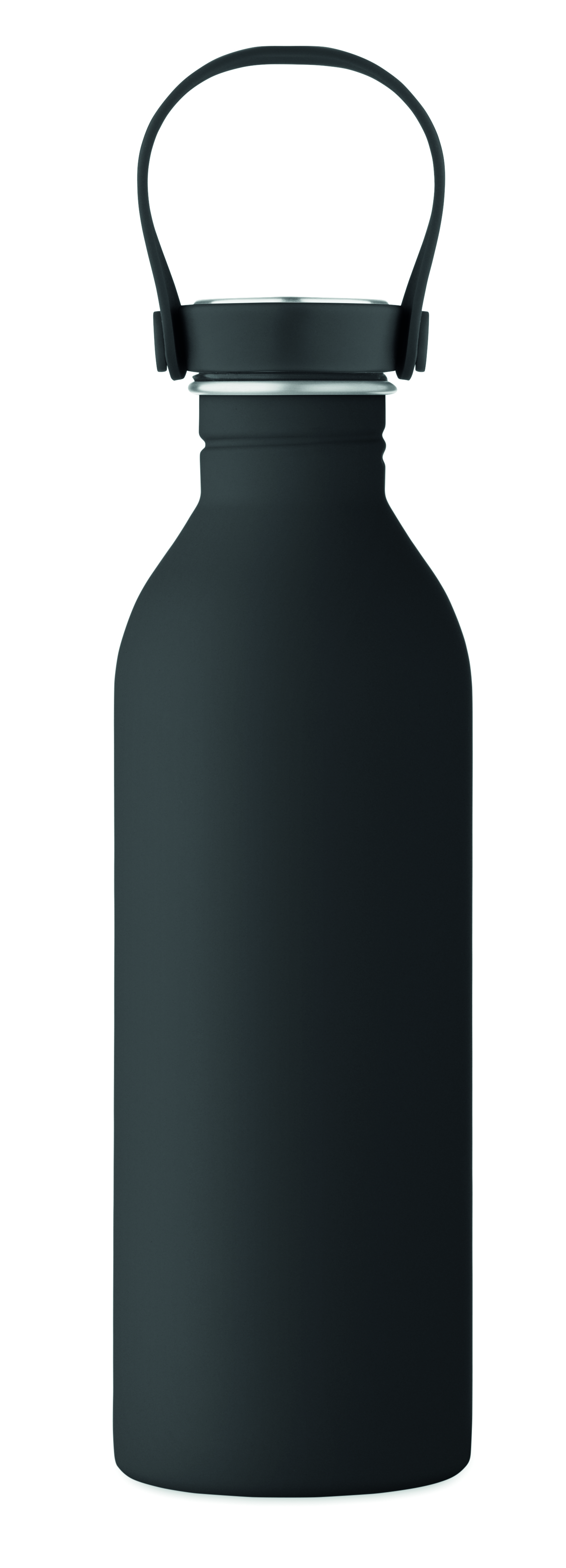 Jednościenna butelka 90% stal nierdzewna z recyklingu 10% stal nierdzewna. Gumowe wykończenie. Pokrywka z PP i SS sylikonowy uchwyt. 500 ml. Butelka jednościenna, może występować przenoszenie ciepła.