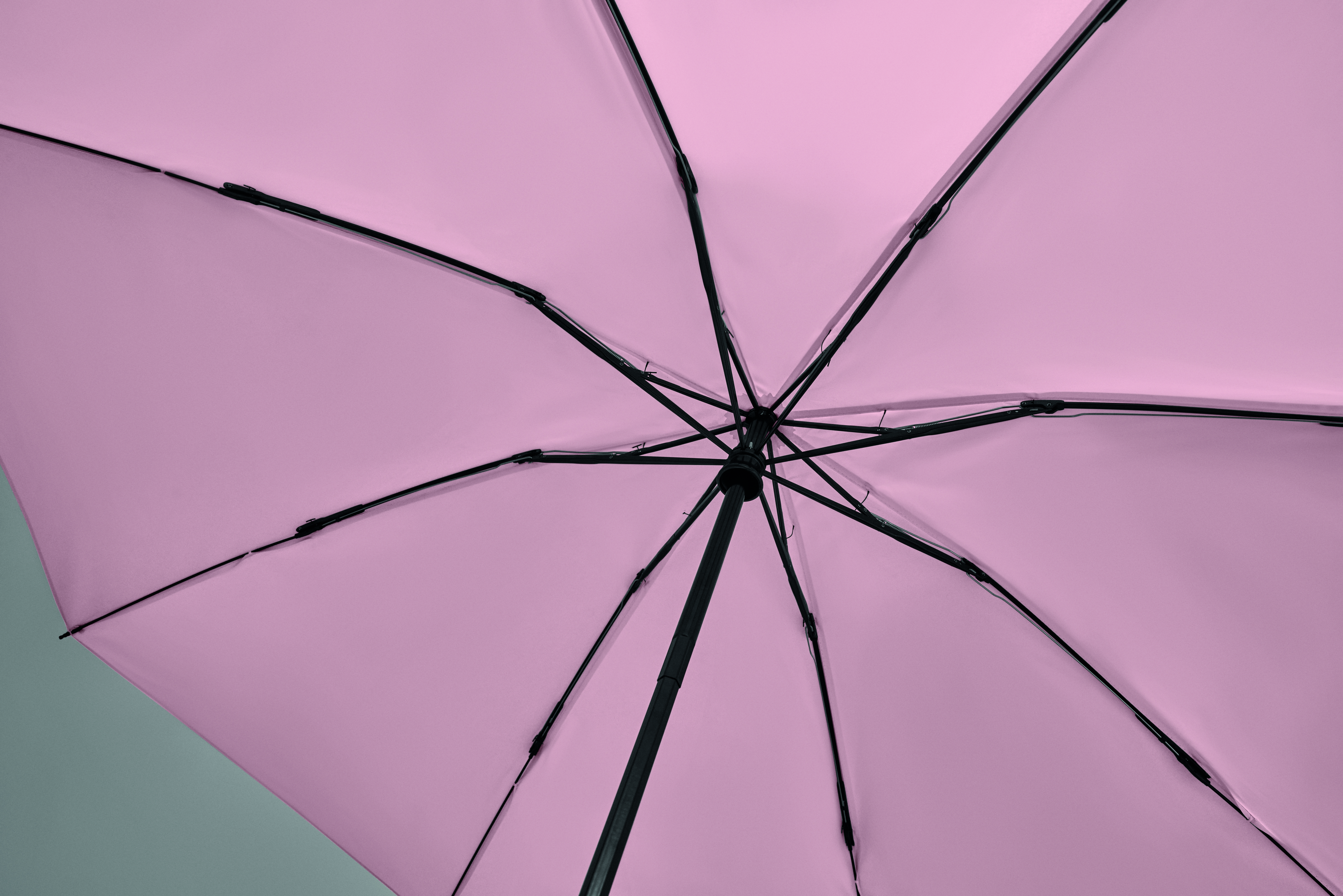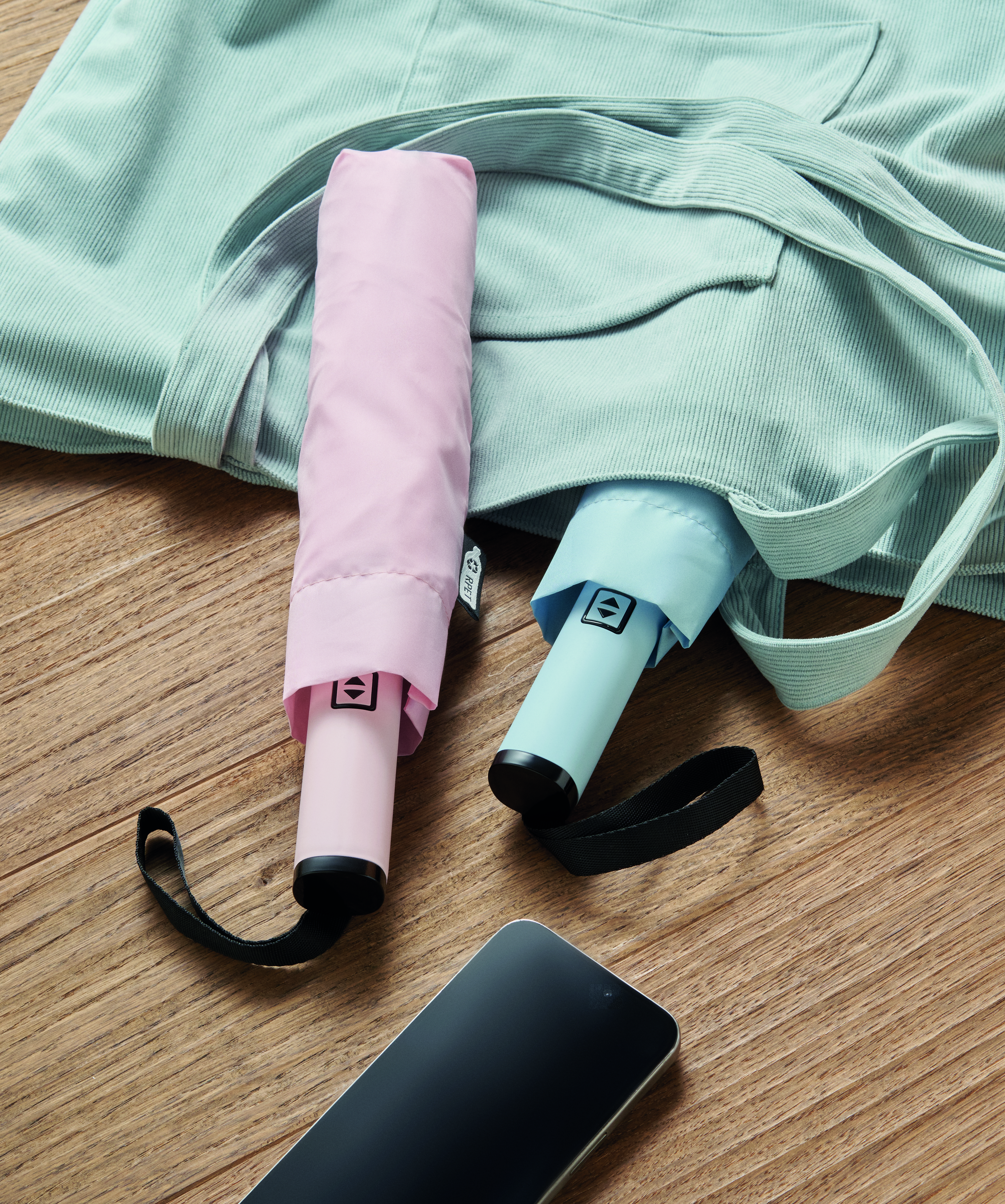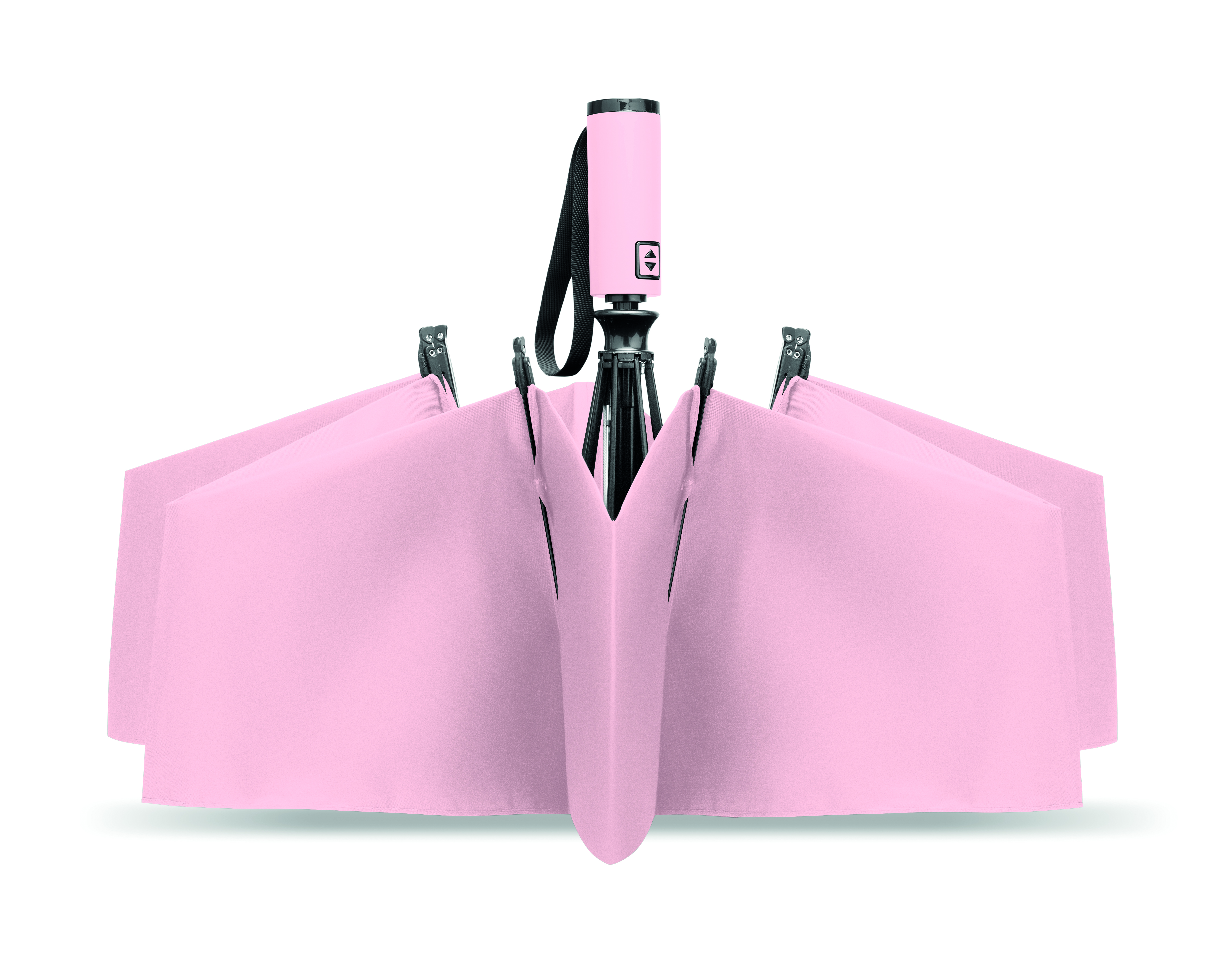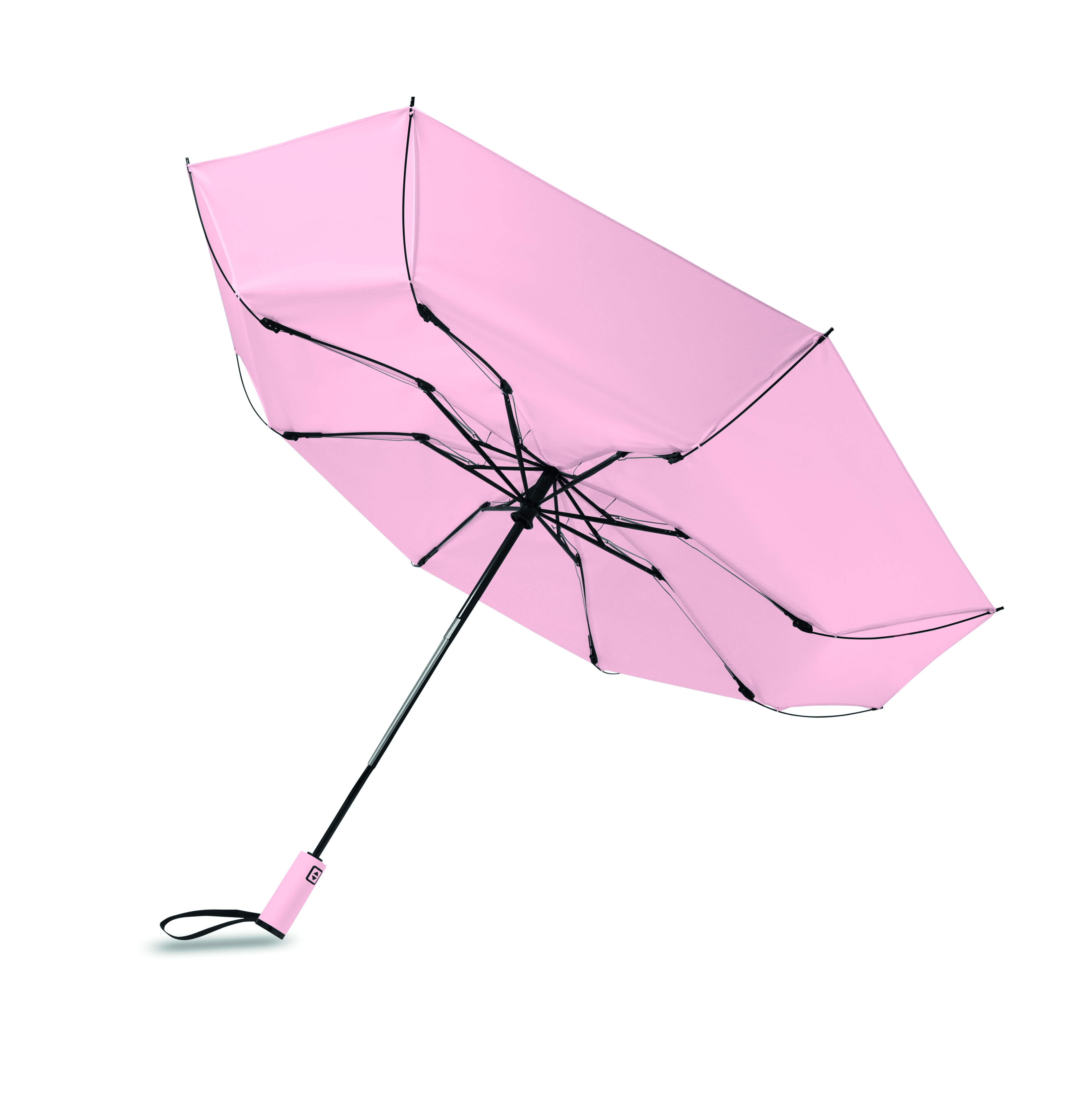 23-calowa, 3-częściowa parasolka z odwróconym mechanizmem, odporna na wiatr, wykonana z tkaniny pongee 190T RPET, z dopasowanym etui. Automatyczne otwieranie i zamykanie, całkowicie czarna rama, żebra