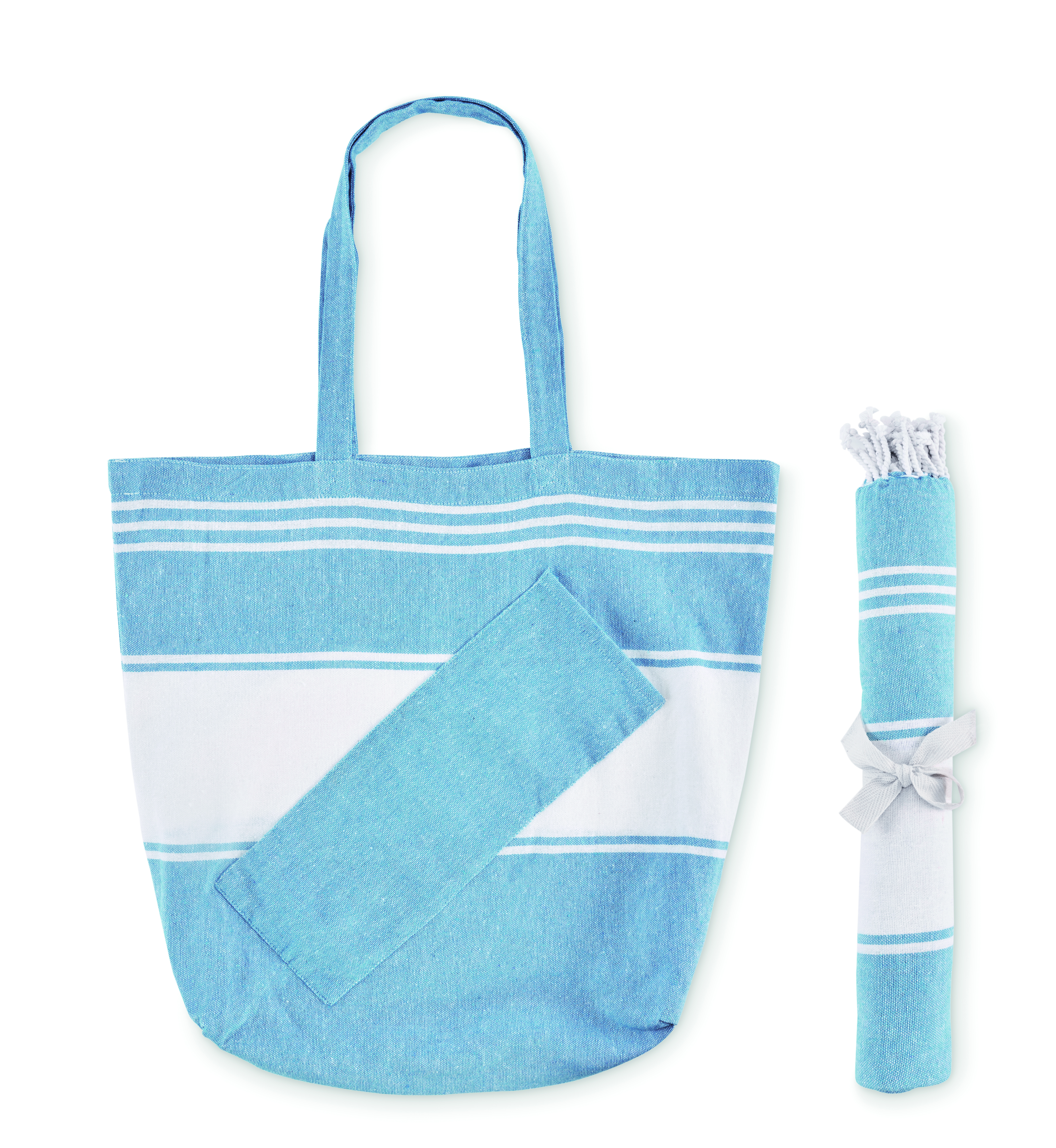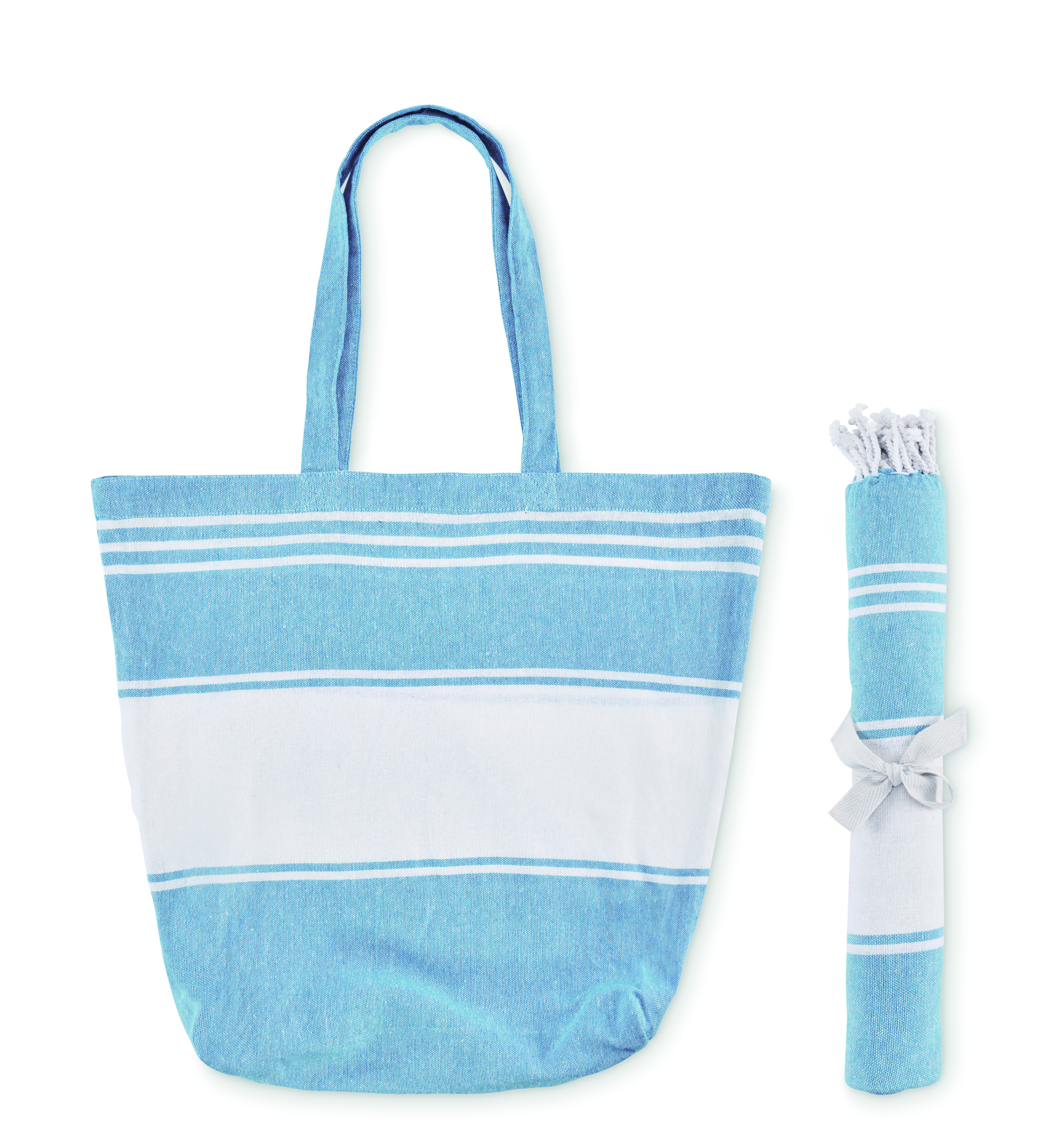 Zestaw ręcznika plażowego hammam z torbą plażową. 70% bawełna i 30% poliester 180 gr/m².