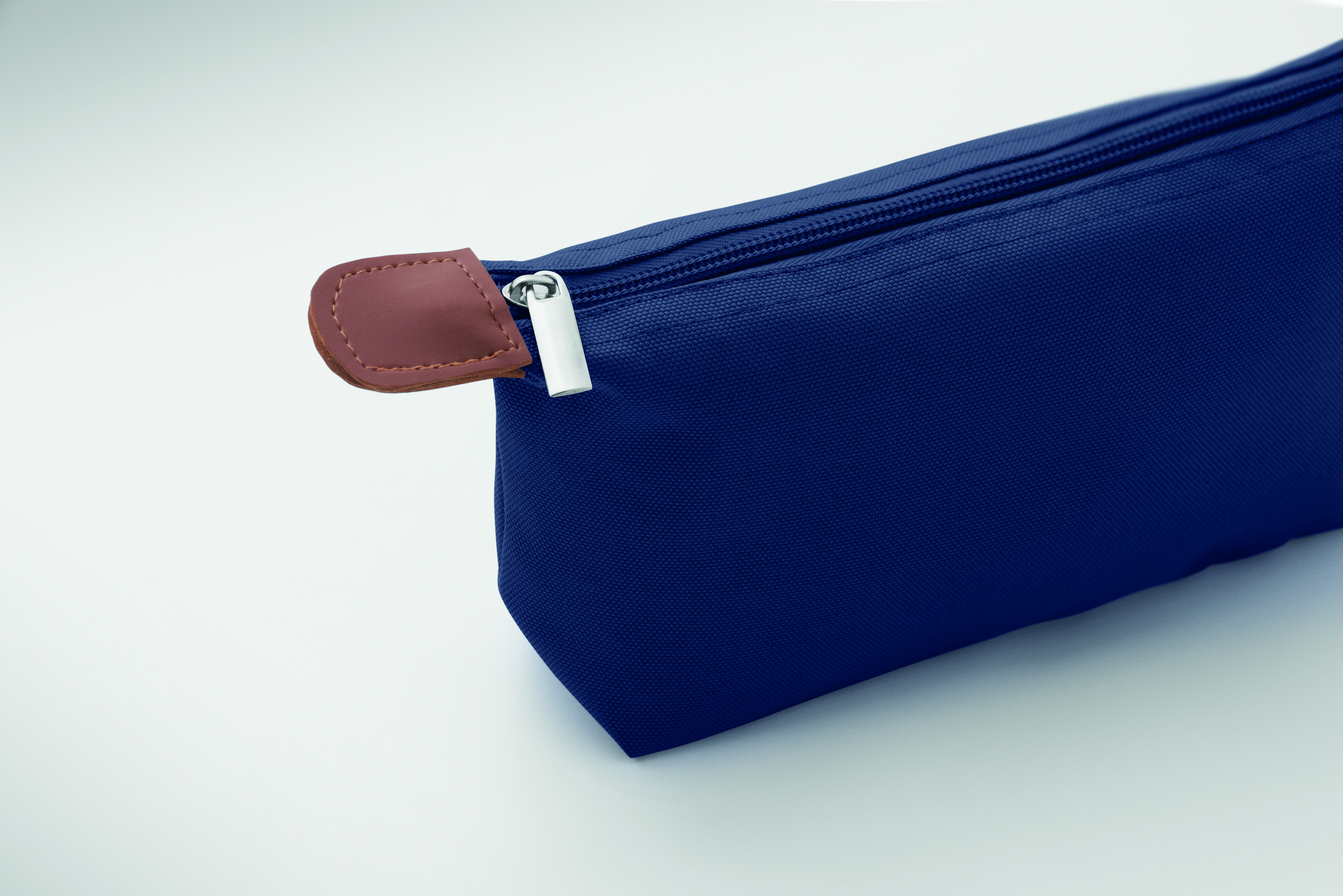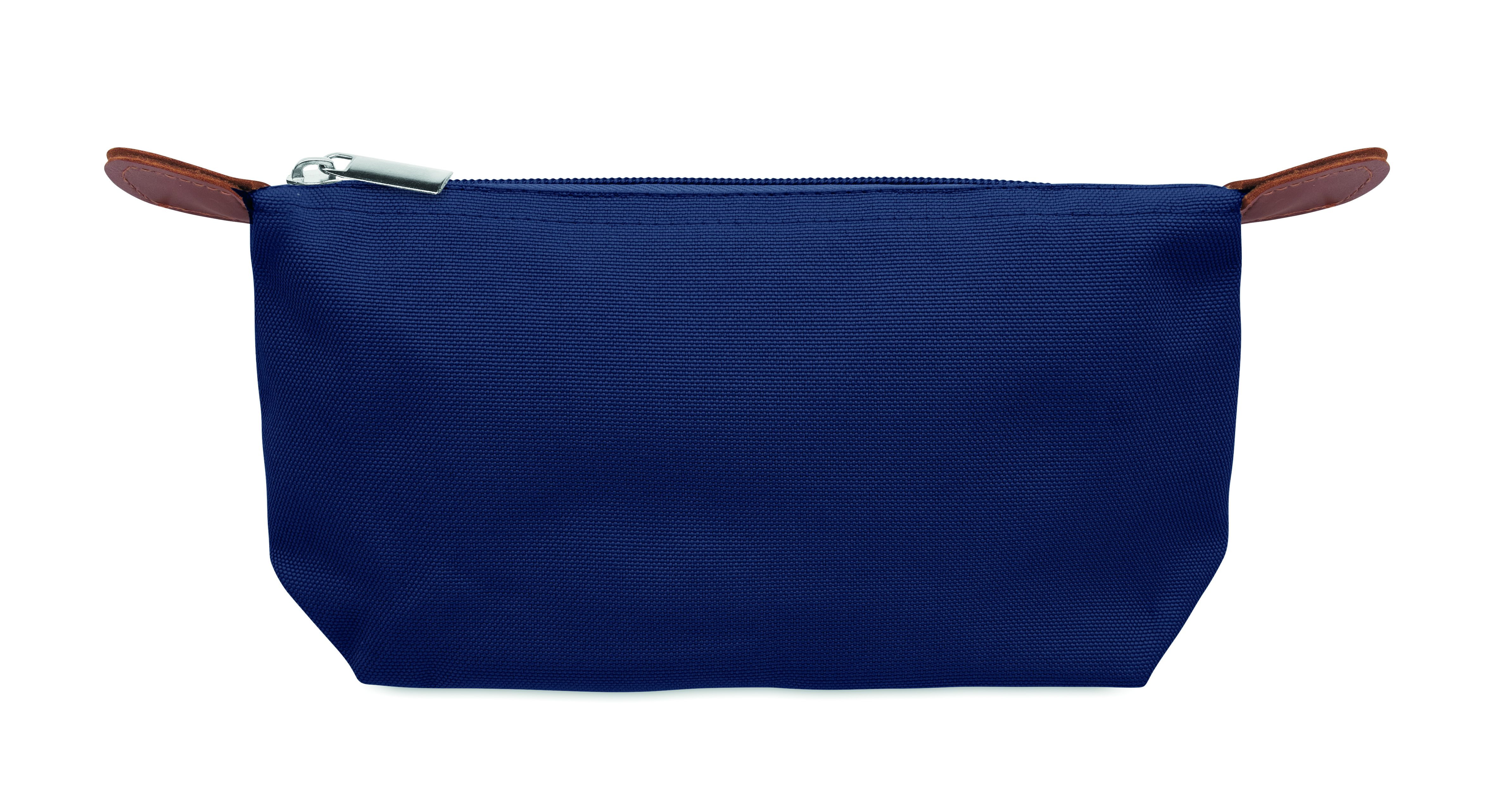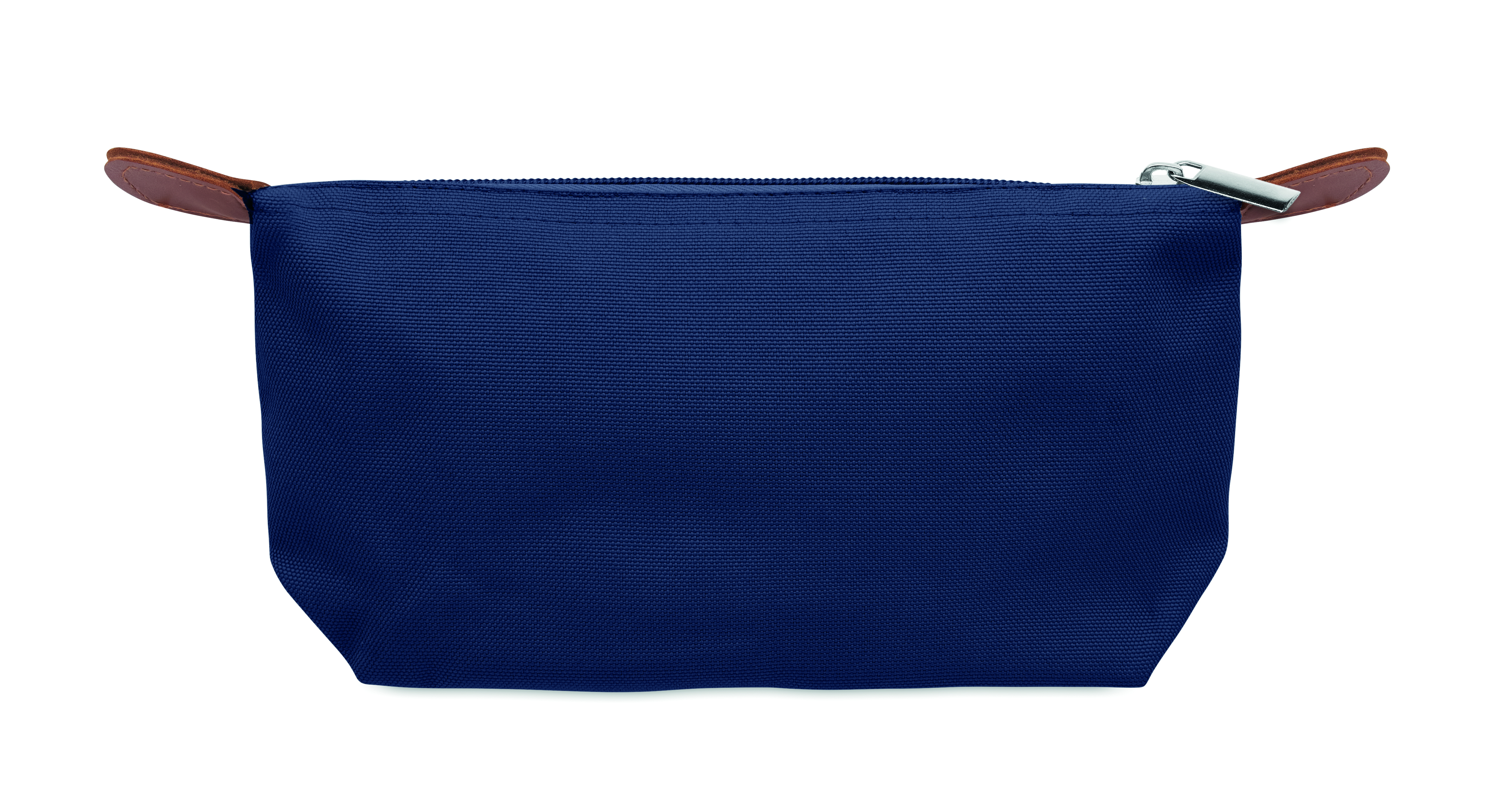 Kosmetyczka wykonana z poliestru 600D RPET z górnym zamkiem błyskawicznym i brązowymi detalami z PU.