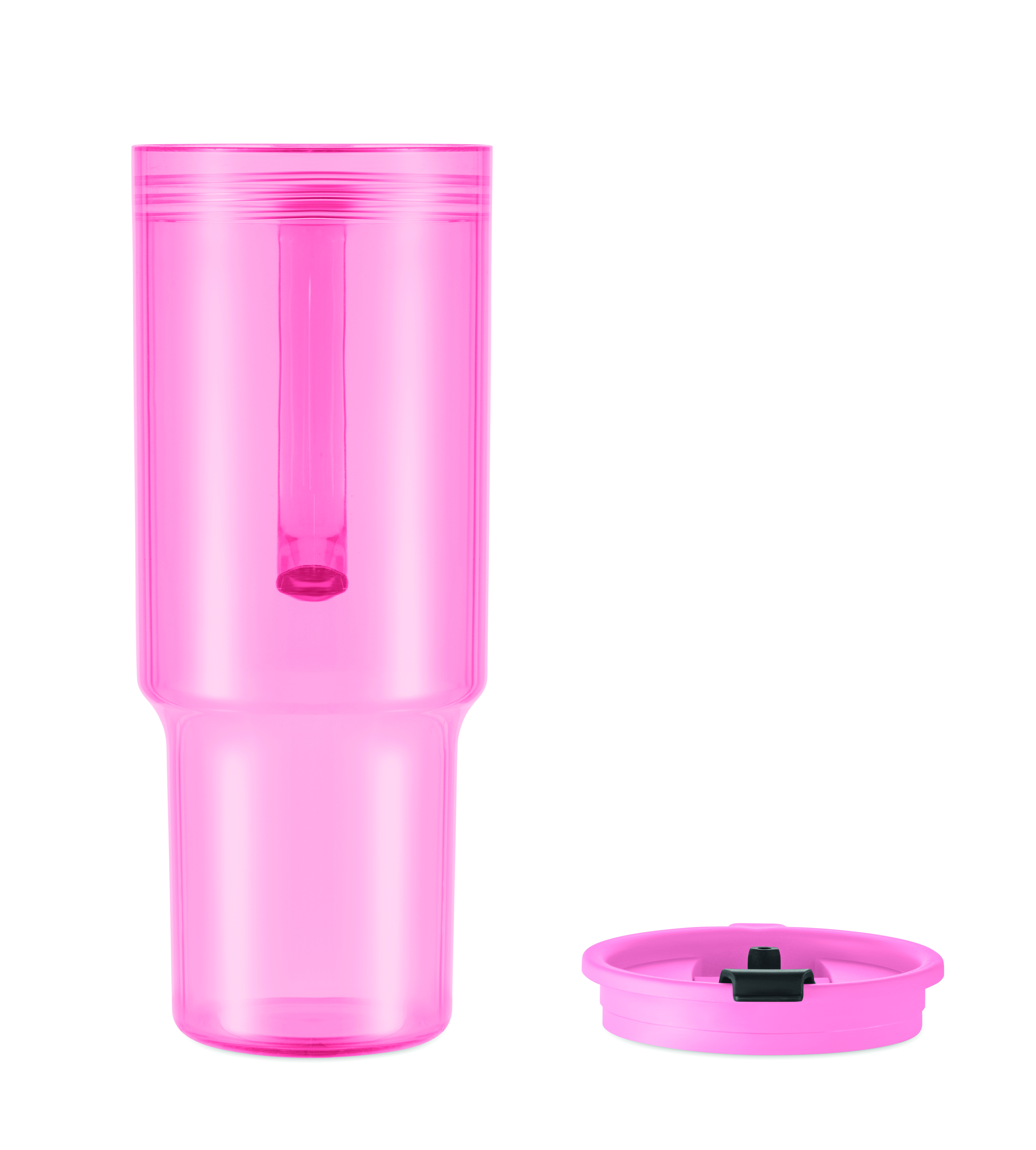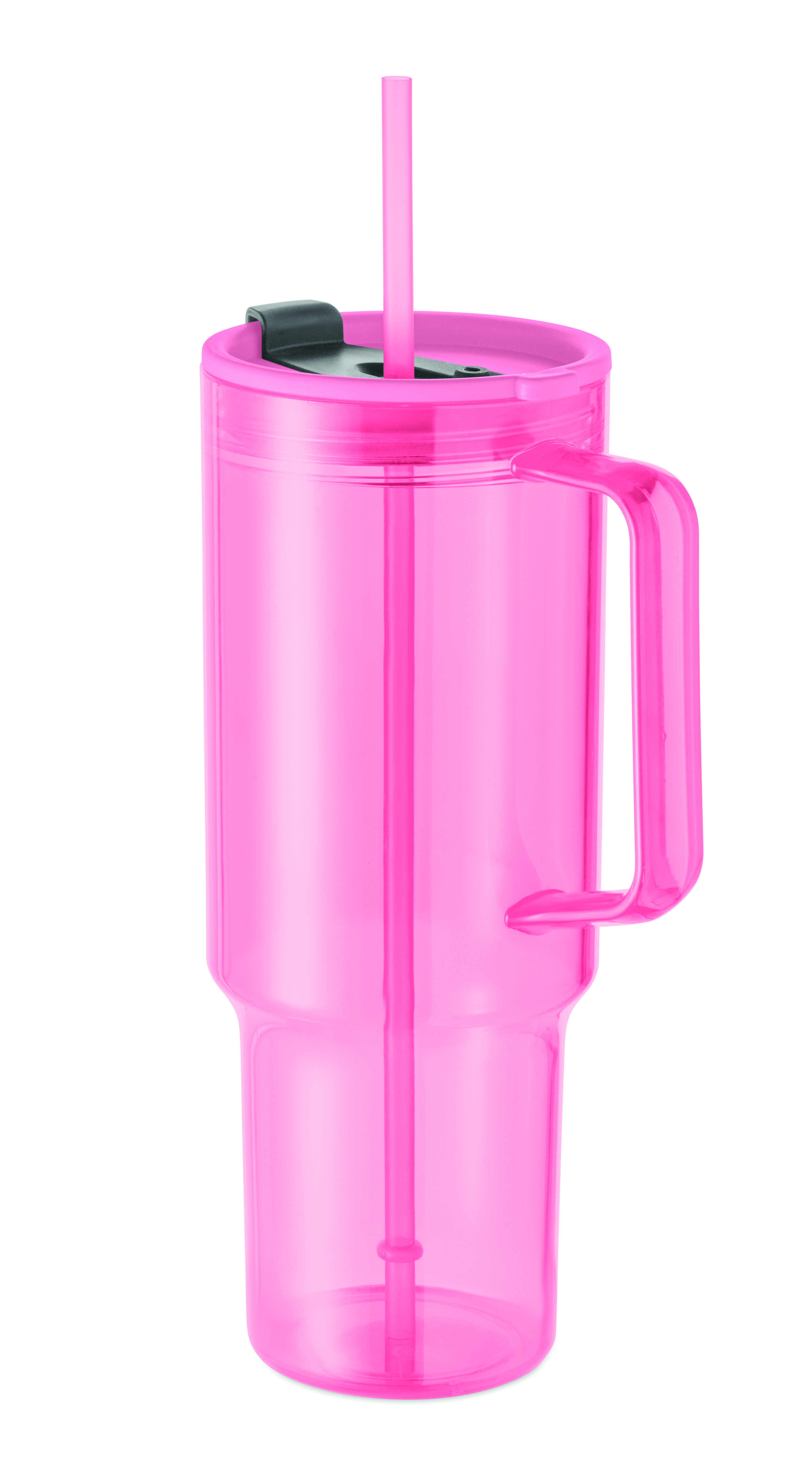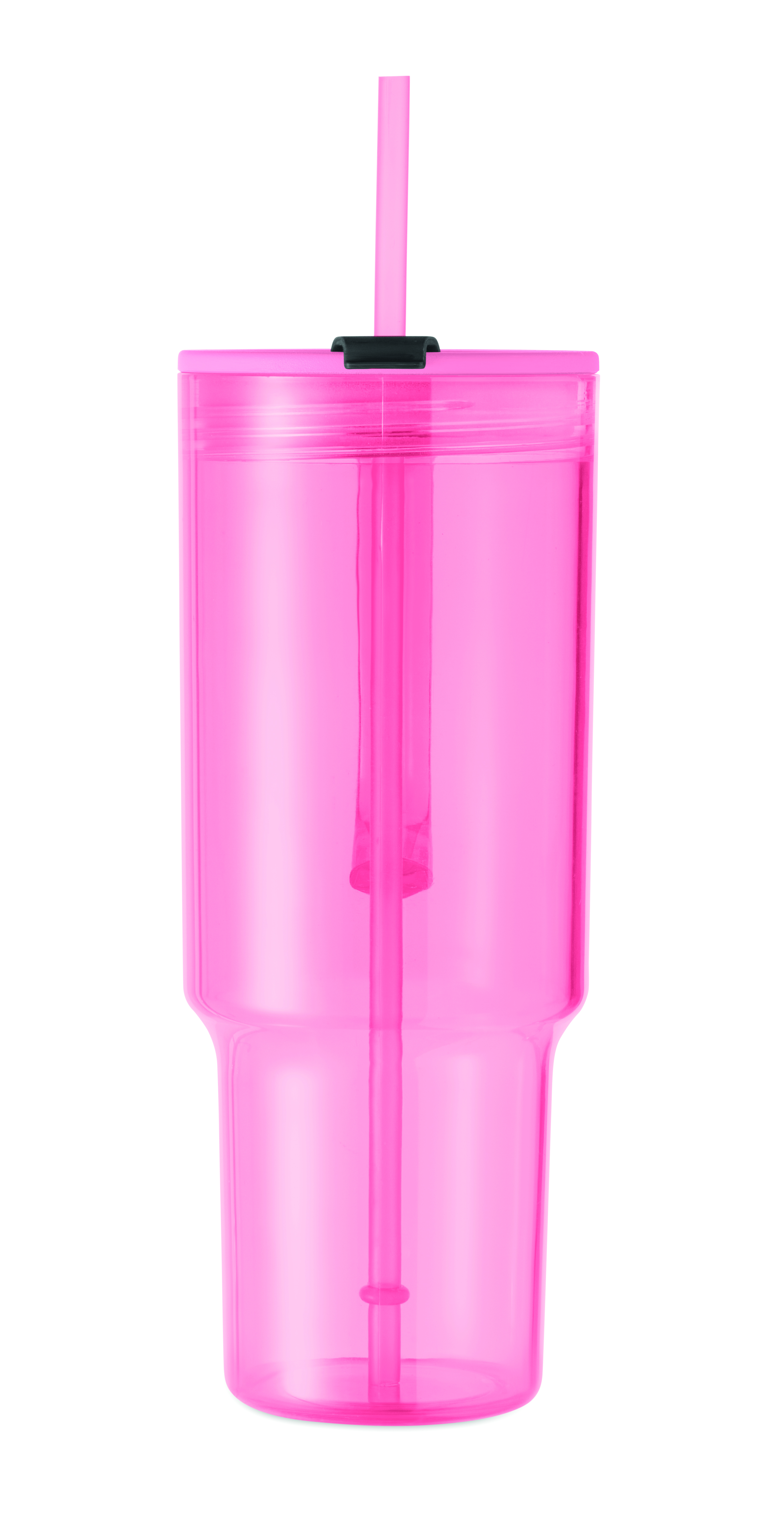 Kubek z RPET z pokrywką ze słomką. Słomka z PP. Pojemność: 1200 ml.