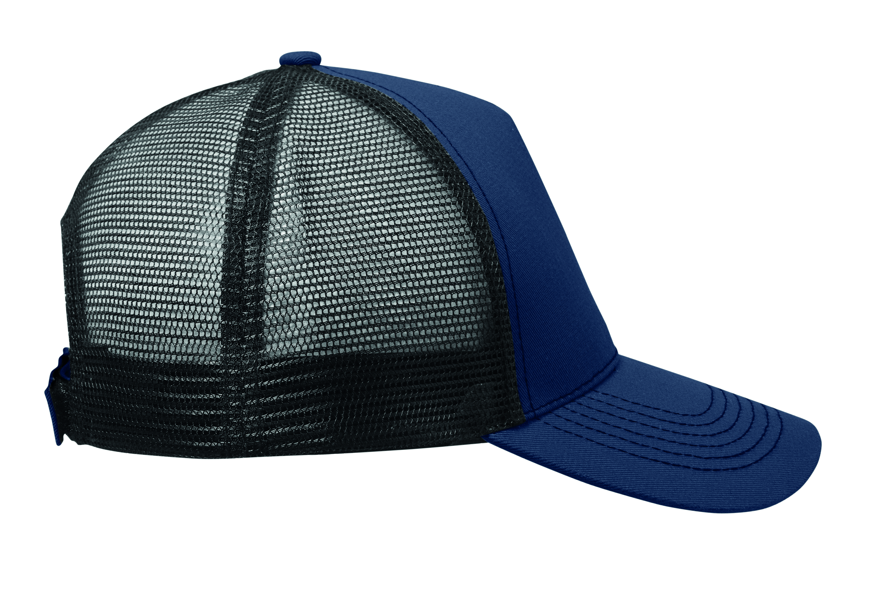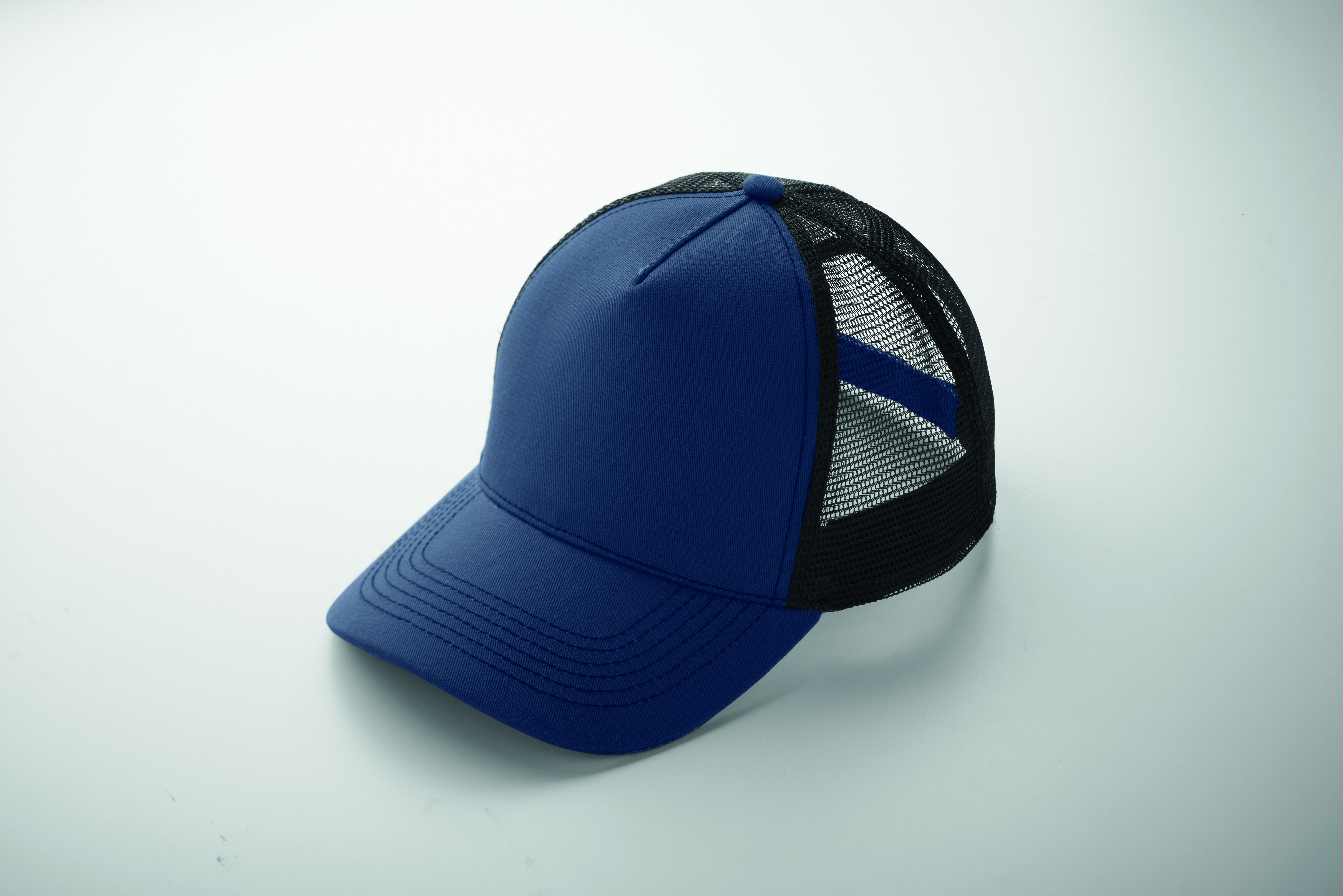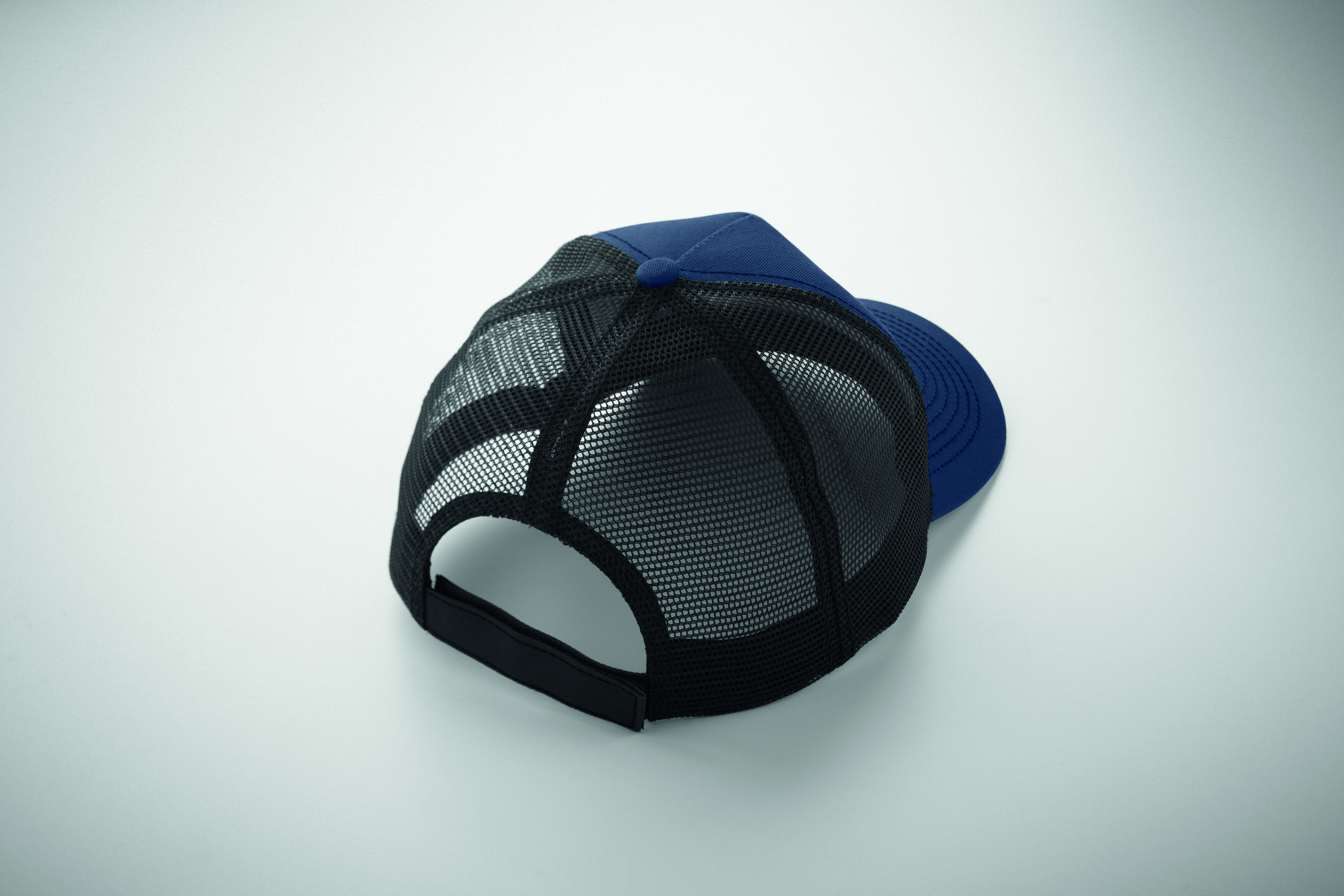 5-panelowa czapka truckerka z przednim panelem i daszkiem z bawełny 250 gr/m², tylną siateczką z poliestru, zapięciem na rzep.