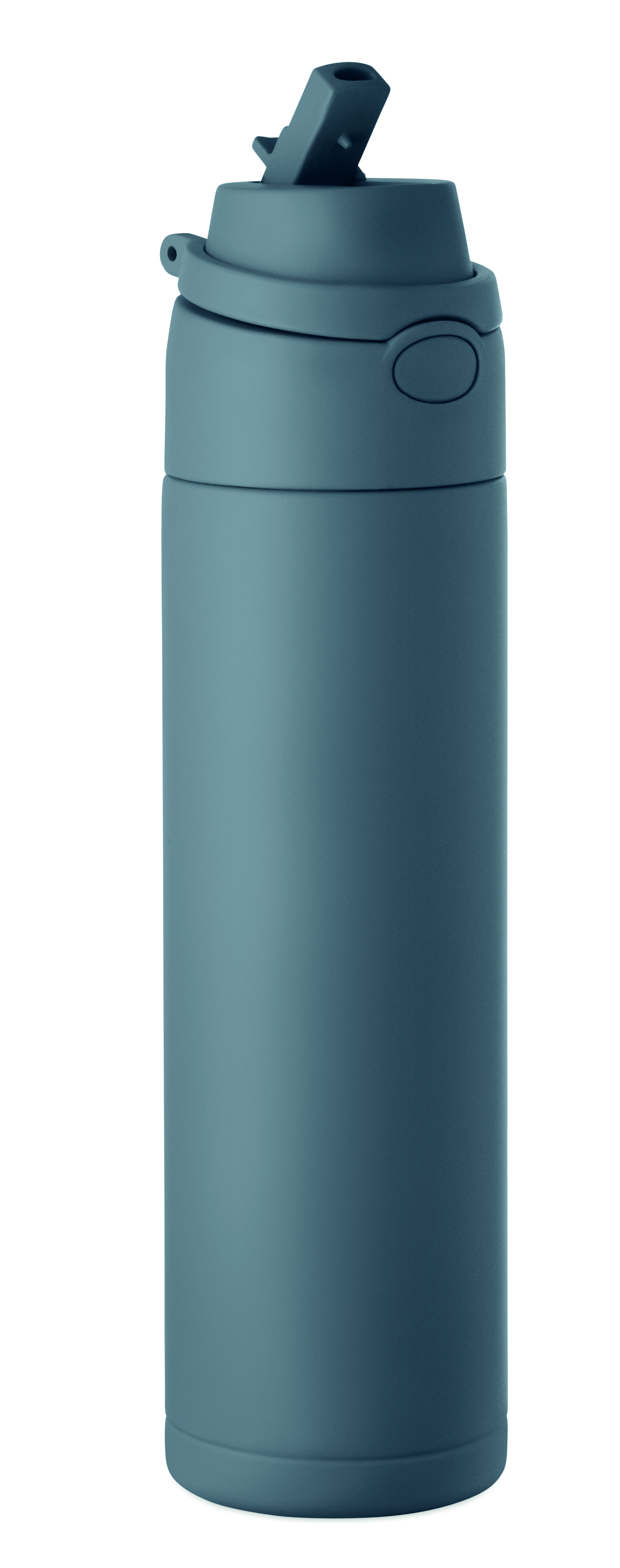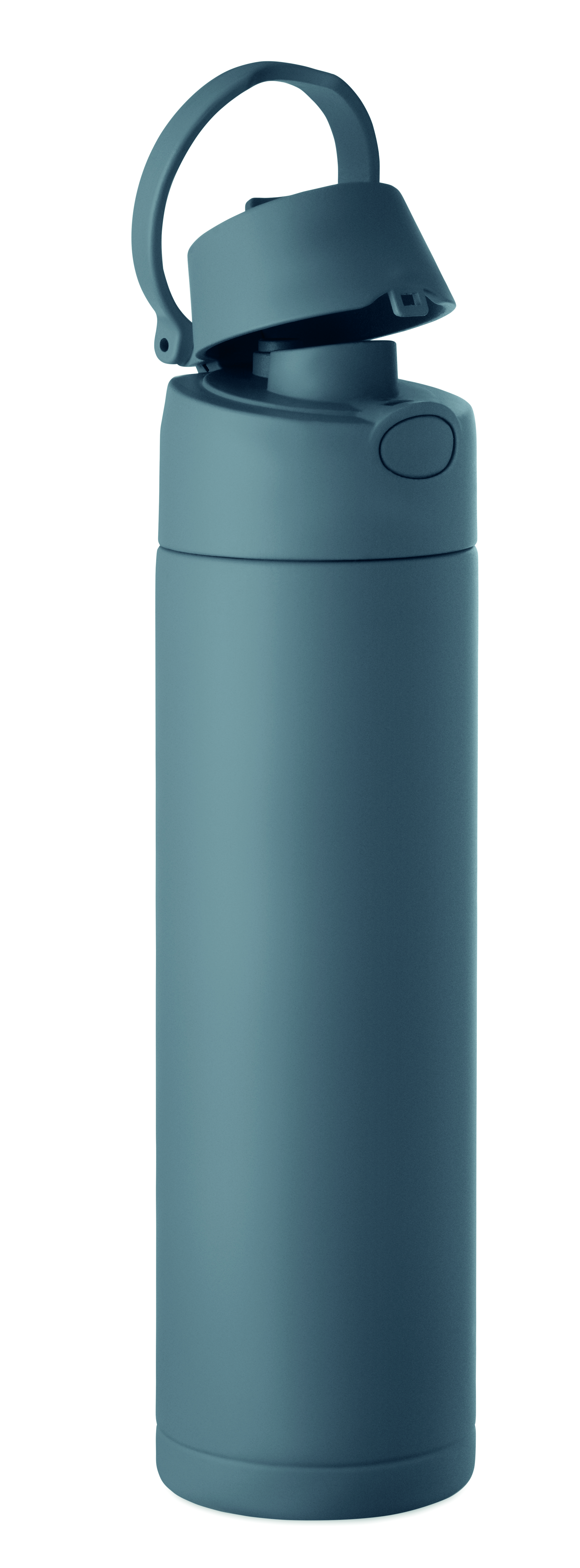 Butelka z podwójnymi ściankami z recyklingowanej stali nierdzewnej (90% z recyklingu i 10% ze stali nierdzewnej). Posiada słomkę 2 w 1 i pokrywkę z PP z uchwytem. Nie przecieka. Pojemność: 500 ml.